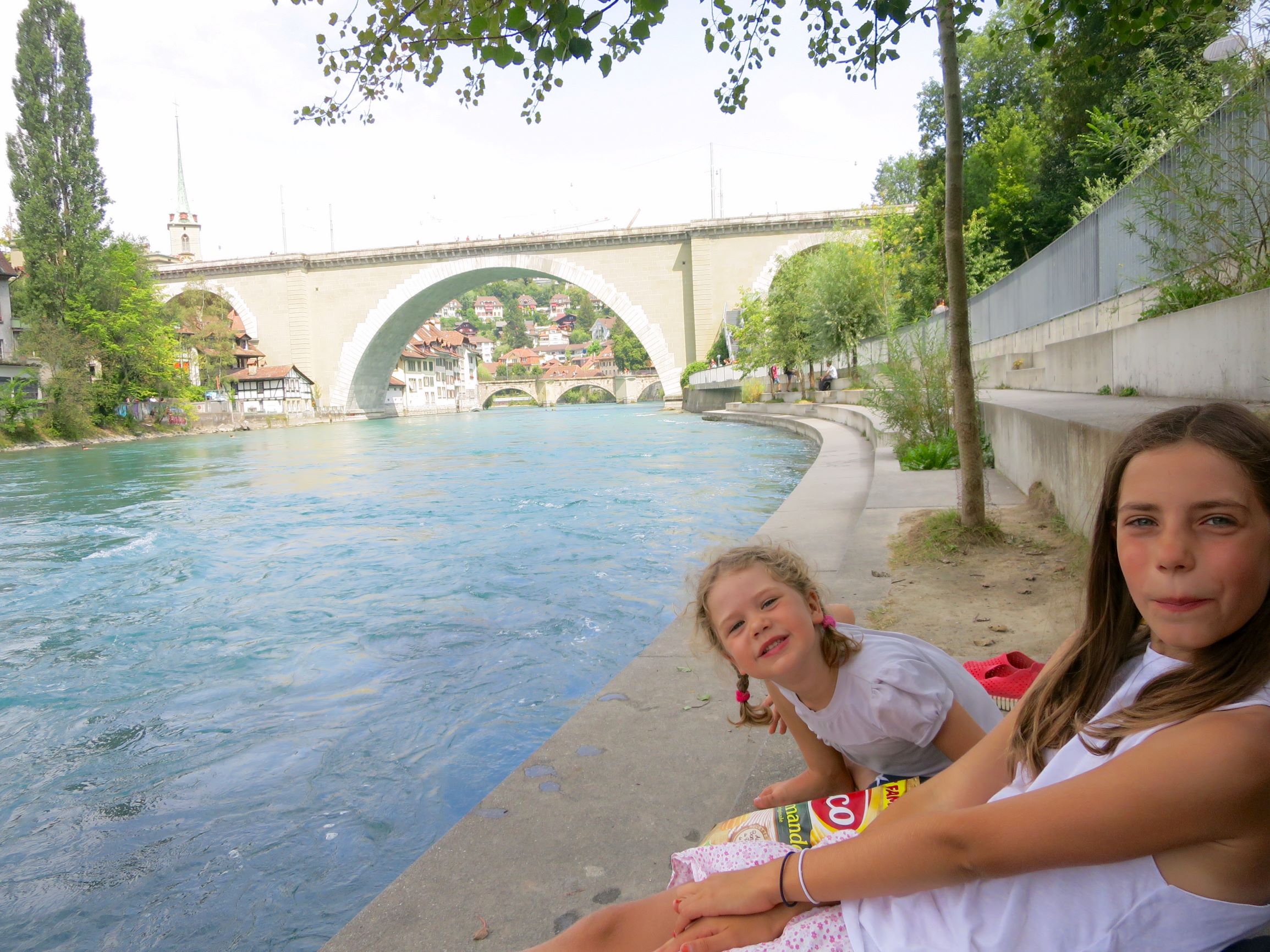 Nous avons fait un picnic au BärenPark et mon amoureux et mes filles rêvaient de se jeter à l’eau. Mais nous n’avions pas nos maillots et nous ne savions pas où cela allait nous amener. Sans compter que ma mini n’avait que 3 ans! Nous avons dû nous résigner à simplement tremper nos pieds. Mais ce n’est que partie remise. Nous nous sommes promis de revenir à Berne pour se baigner dans les eaux cristallines de l’Aar.
