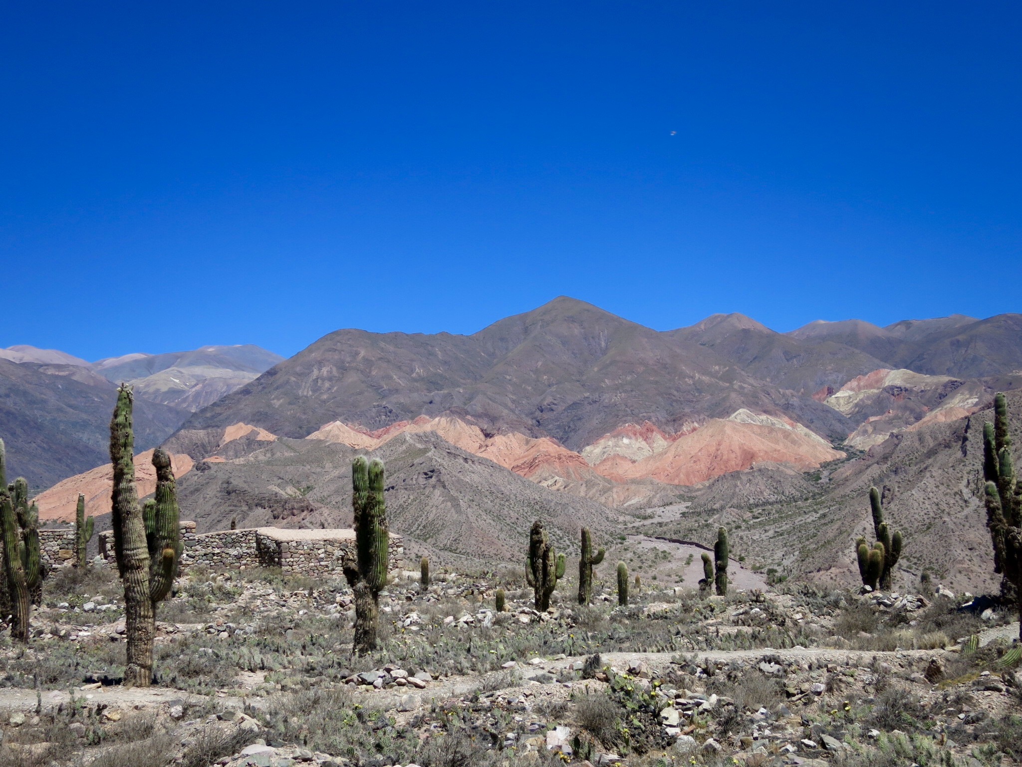 Purmamarca est situé au pied du Cerro de los Siete Colores (la colline aux 7 couleurs), dont la gamme de couleurs s’étend du beige au violet, en passant par du vert. On peut faire une courte randonnée sur le sentier Paseo de los Colorados, qui fait une boucle d’environ 3 km autour. Gratuit et très facile.