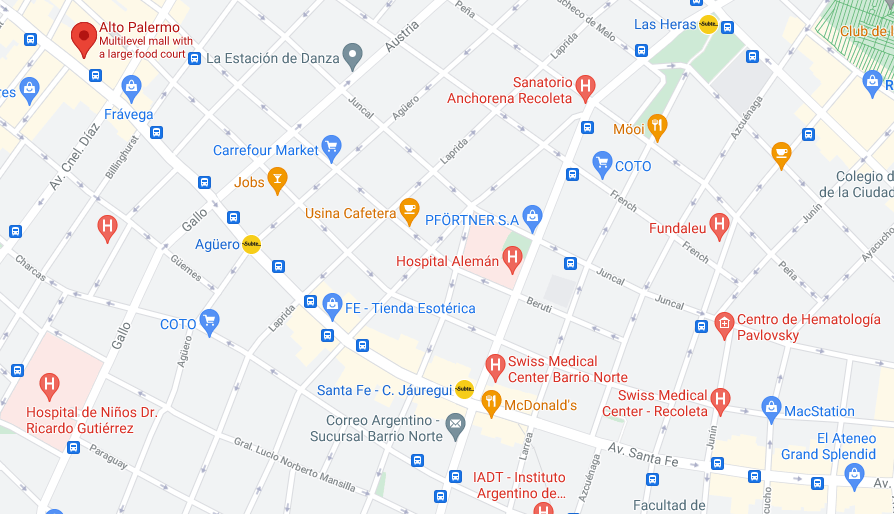 Il s’articule autour de l’Avenida Santa Fé et de l’Alto Palermo Shopping, un centre commercial situé au coin de Coronel Diaz.
