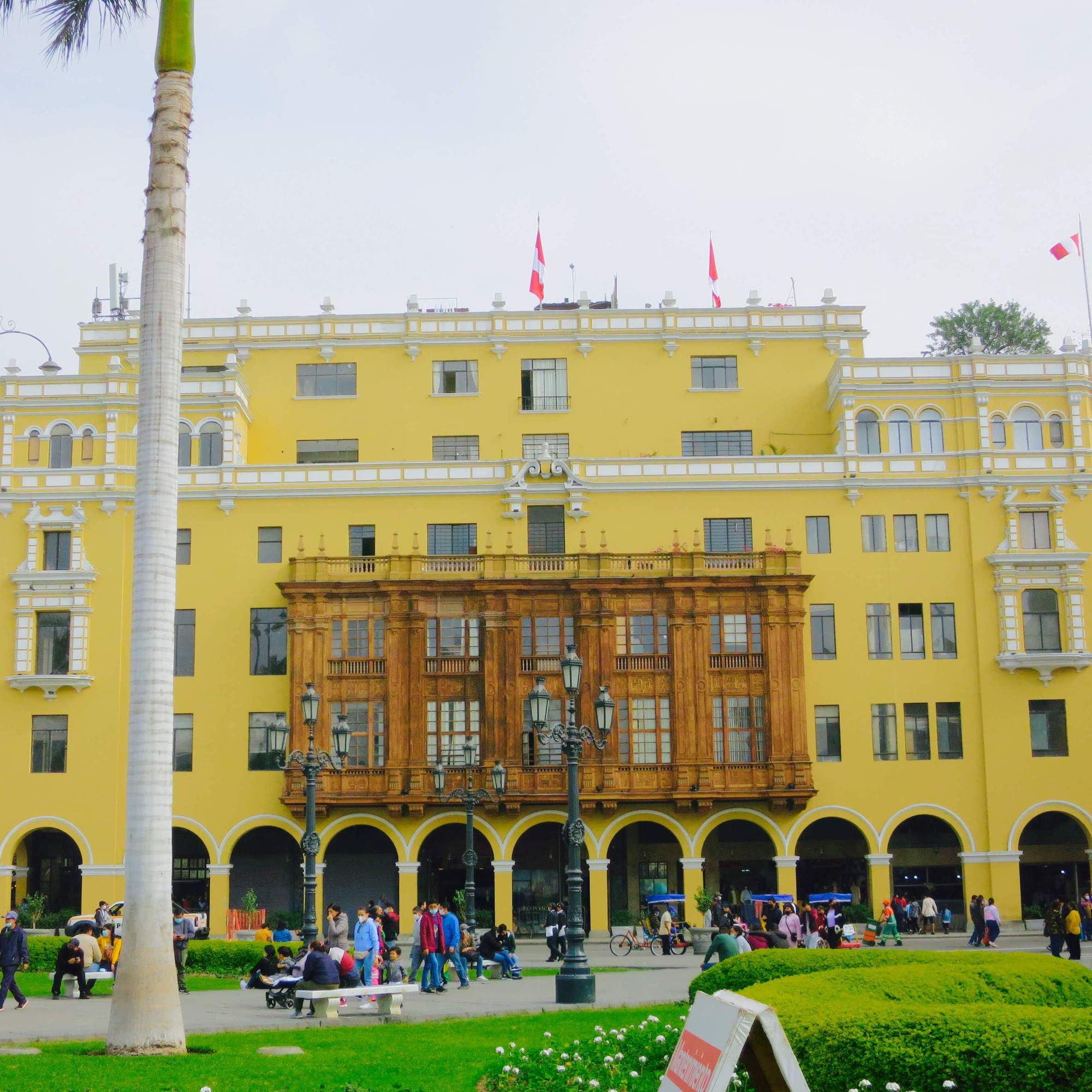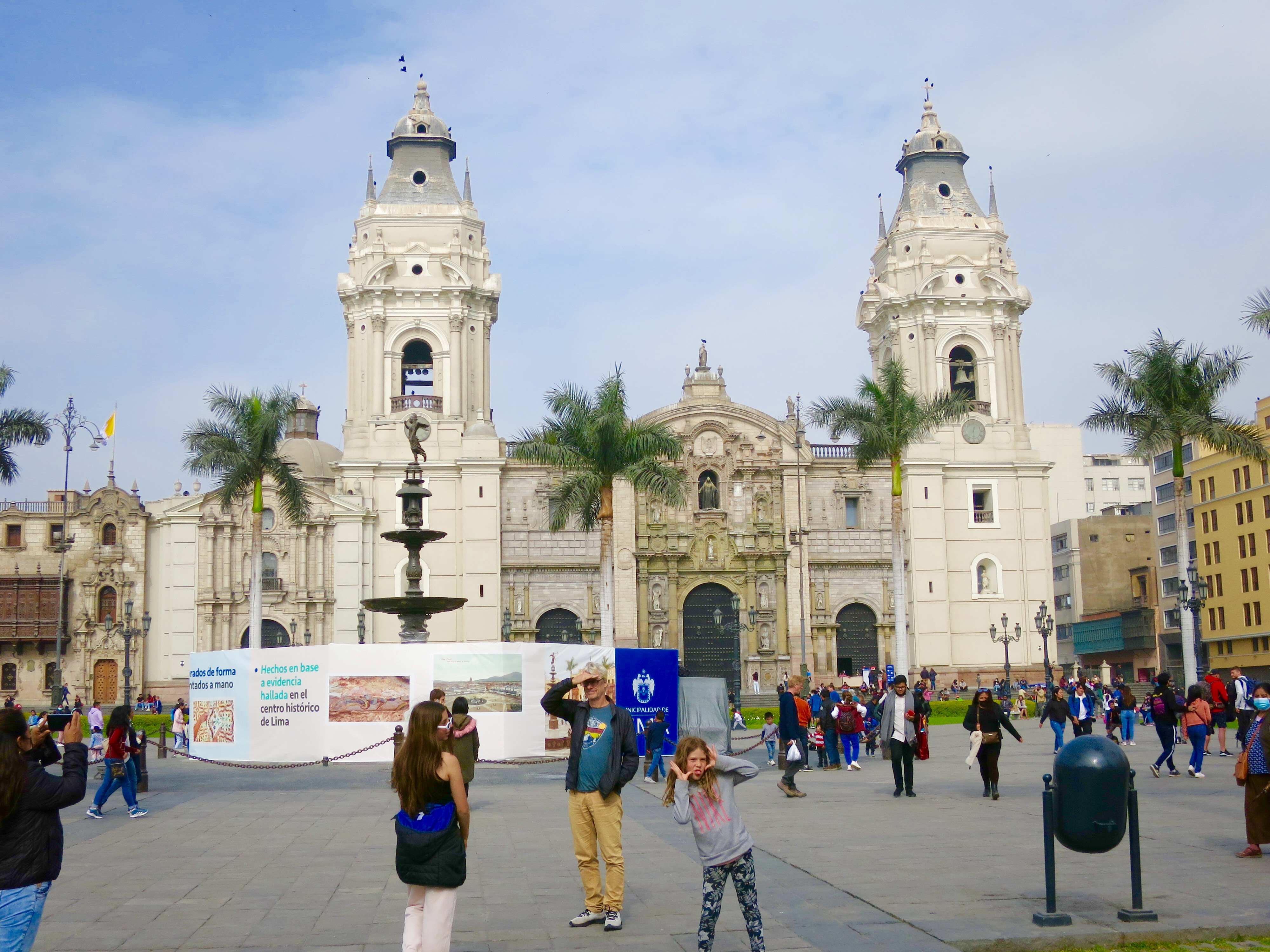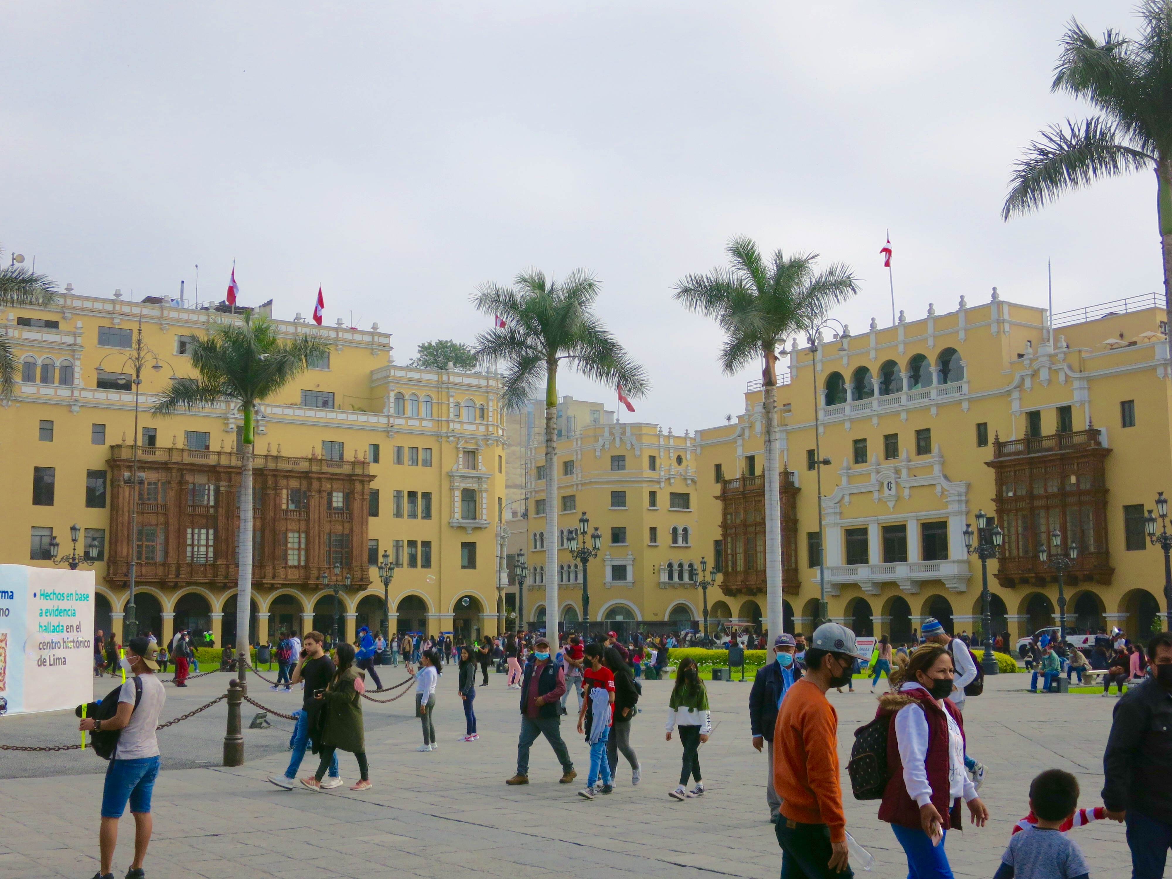 La Plaza de Armas de Lima est de toute beauté! En plus, l’éternel ciel gris de Lima a laisser (enfin!) passer quelques fins rayons de soleil 😊