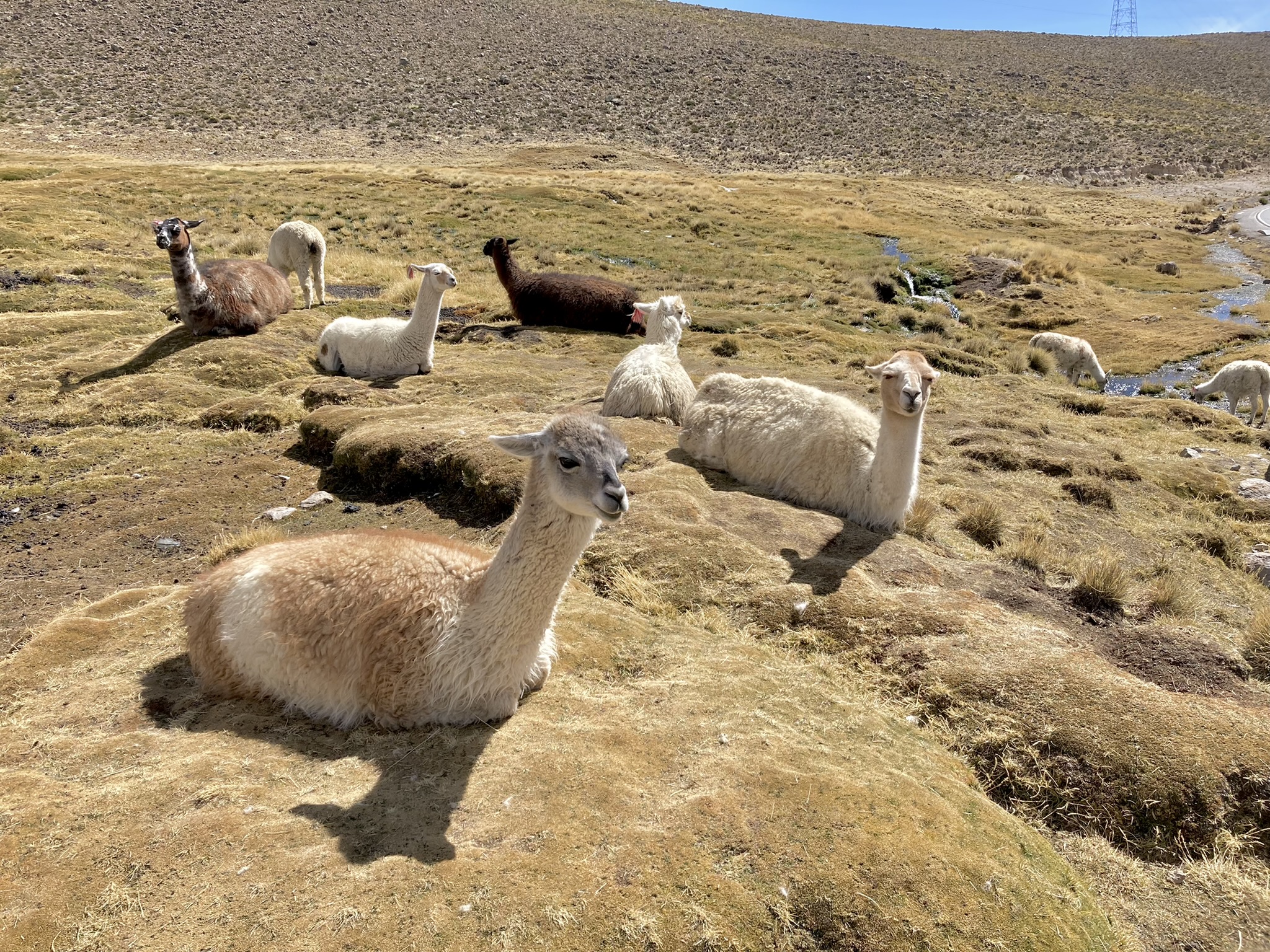 Durant la traversée de la reserva, nous avons pu admirer des vicuñas et des guanacos sauvages, qui sont protégés. Nous avons aussi approché et caressé deux troupeaux de lamas et alpagas domestiques (les filles ont tellement capoté 😊).