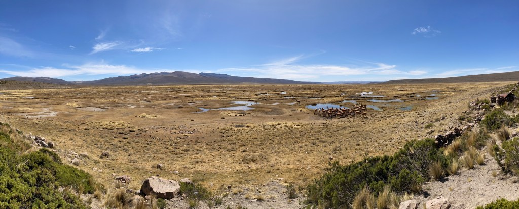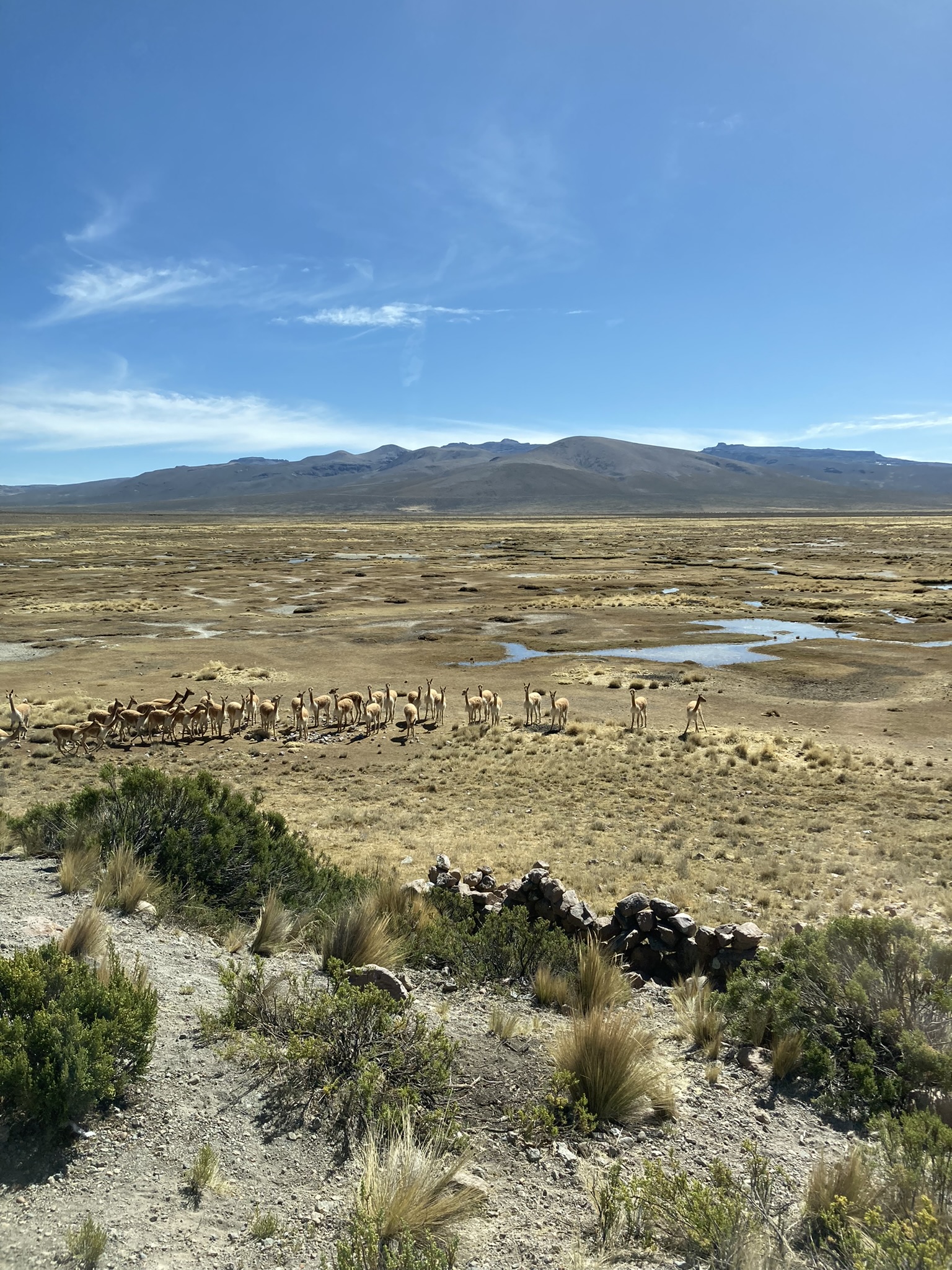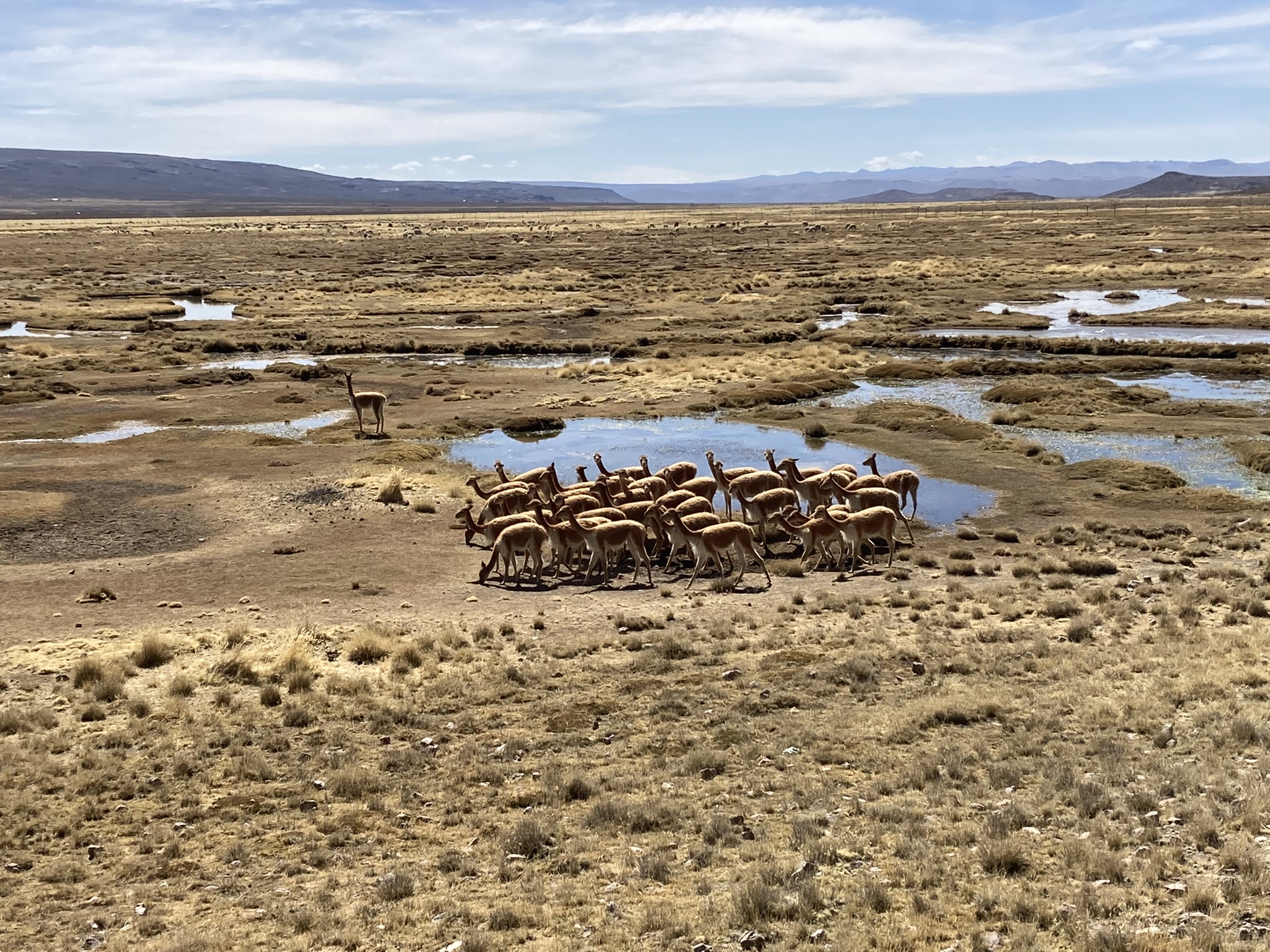 Nos avons aussi passé un long moment à observer un magnifique troupeau de vicuñas courir d’un bout à l’autre. Nous étions envoûtés. Selon notre guide Patricia, il s’agissait d’un troupeau de mâles jeunes.
