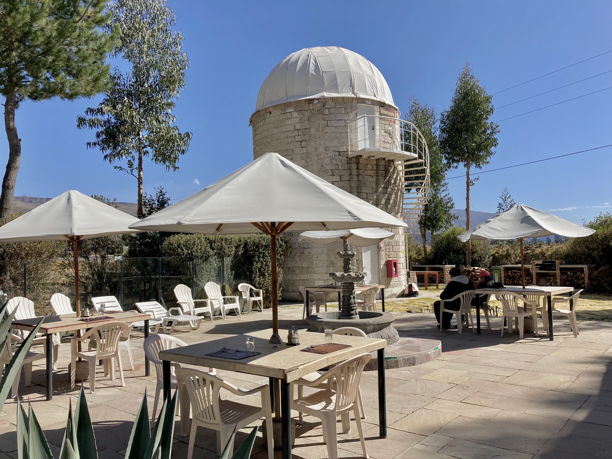 C’est un charmant hôtel où les chambres sont disposées autour d’une très belle cour (sur laquelle il y a un mini observatoire d’étoiles). Nous y avons pris un excellent dîner au soleil.