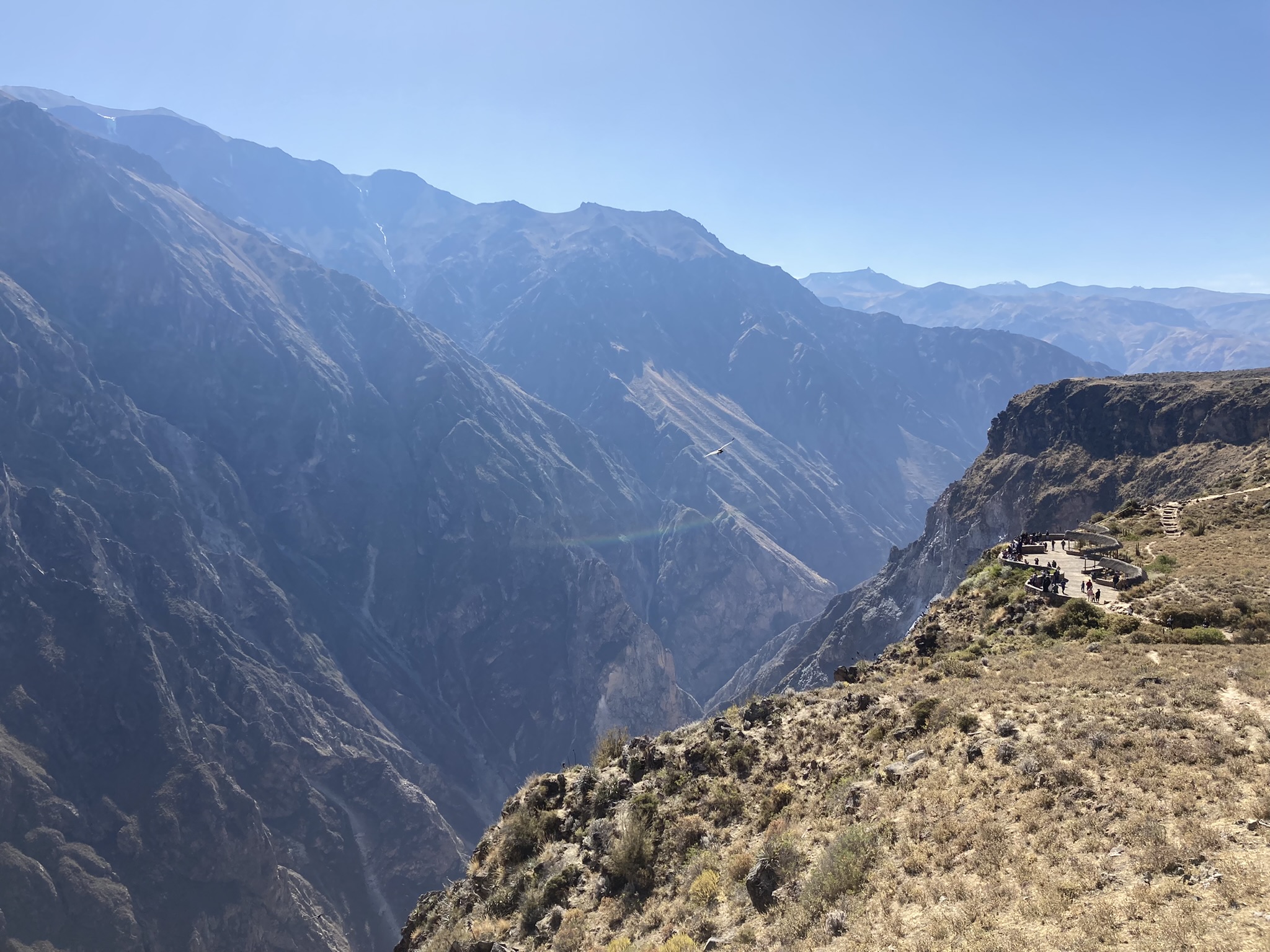 Nous nous sommes arrêtés à plusieurs miradors, mais surtout au mirador Cruz del Cóndor, où nous avons eu le bonheur d’admirer plusieurs condors voler au-dessus du canyon et ma foi assez proches de nous. C’était magique!