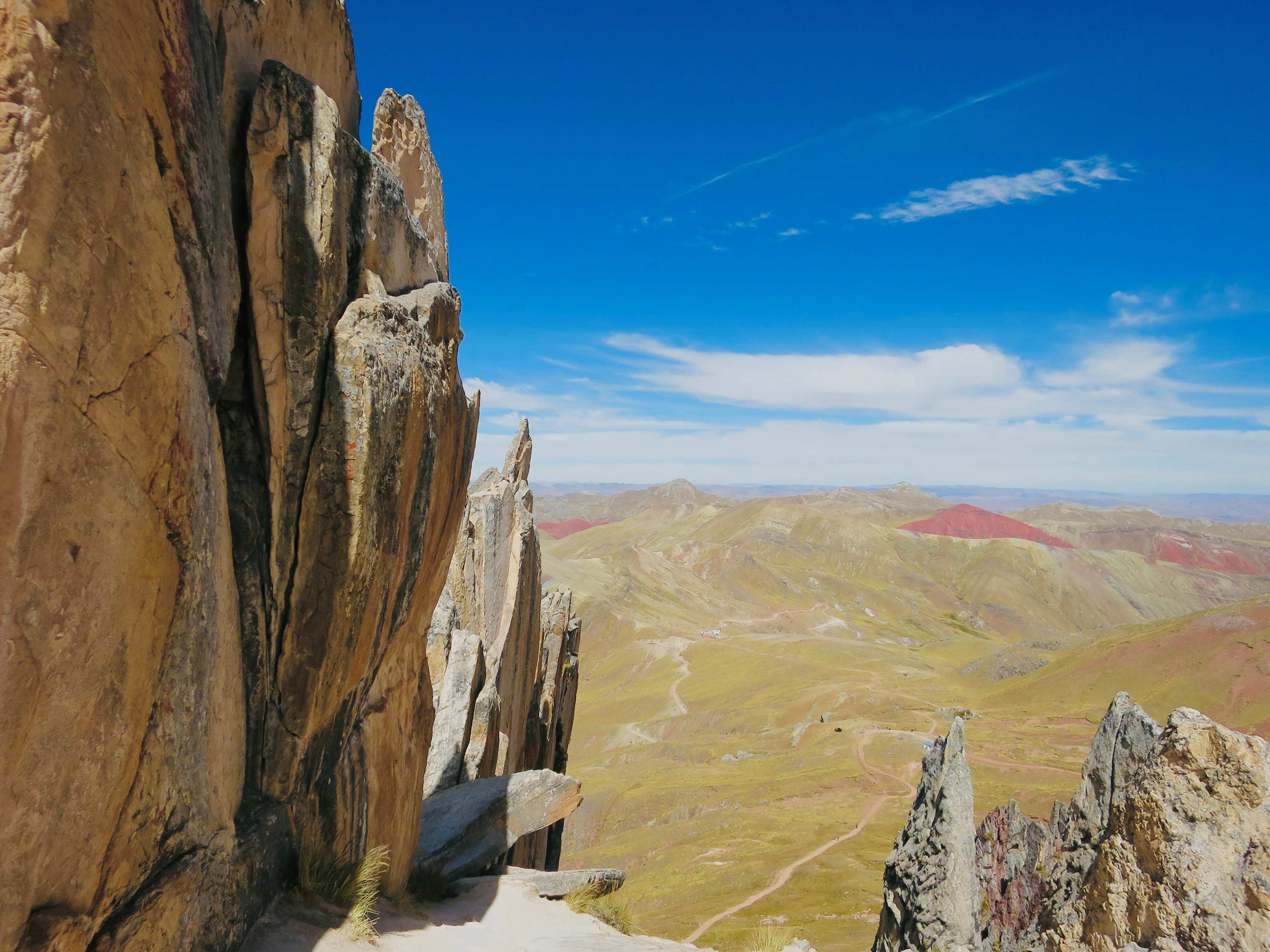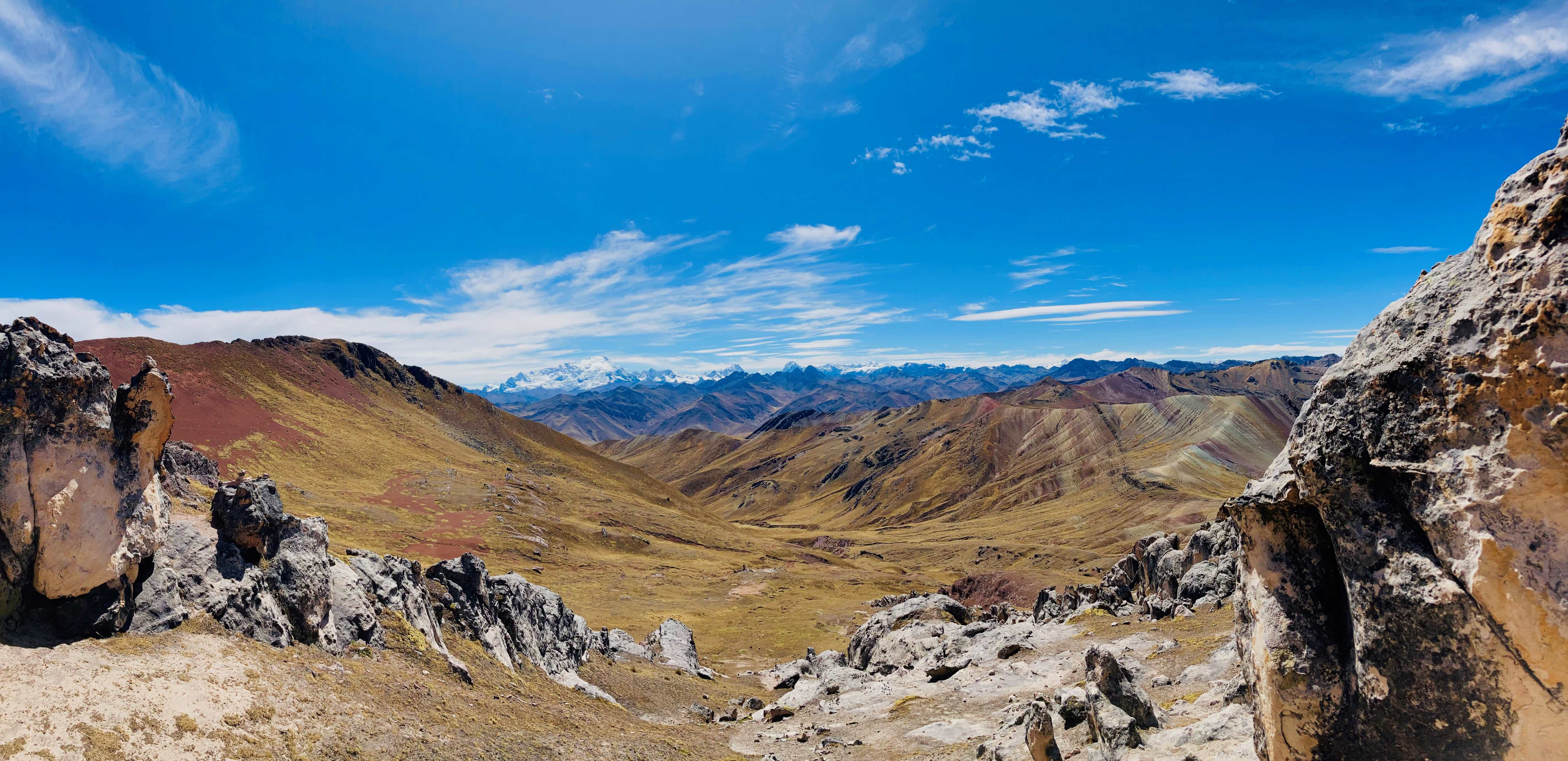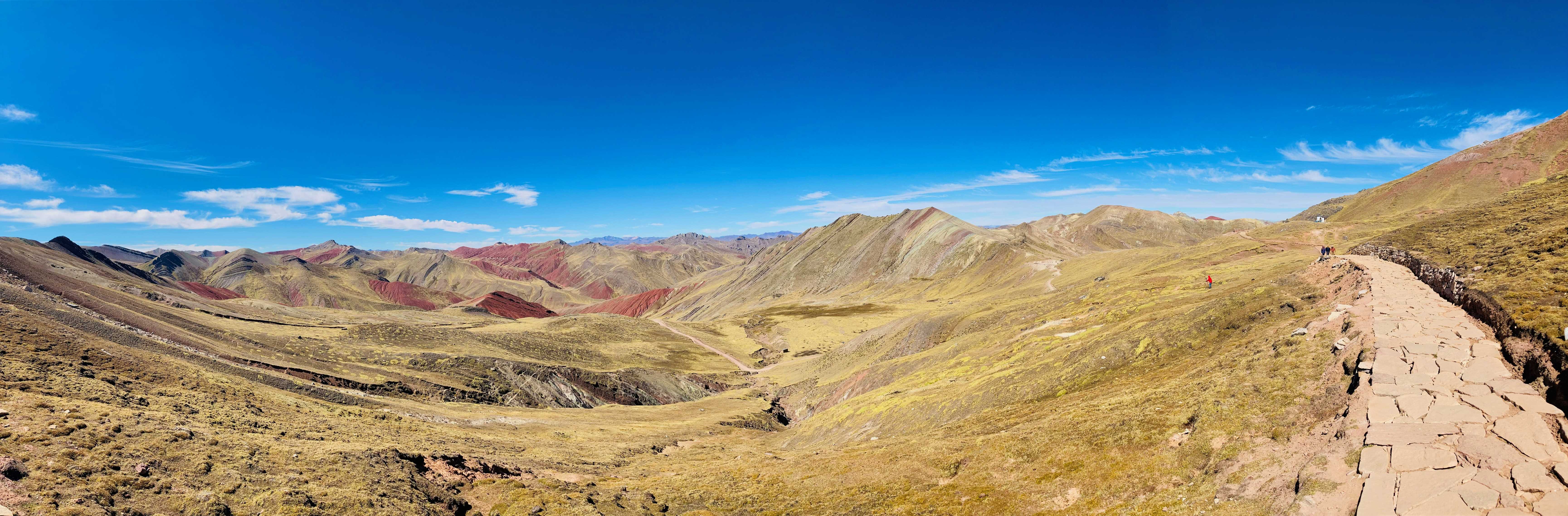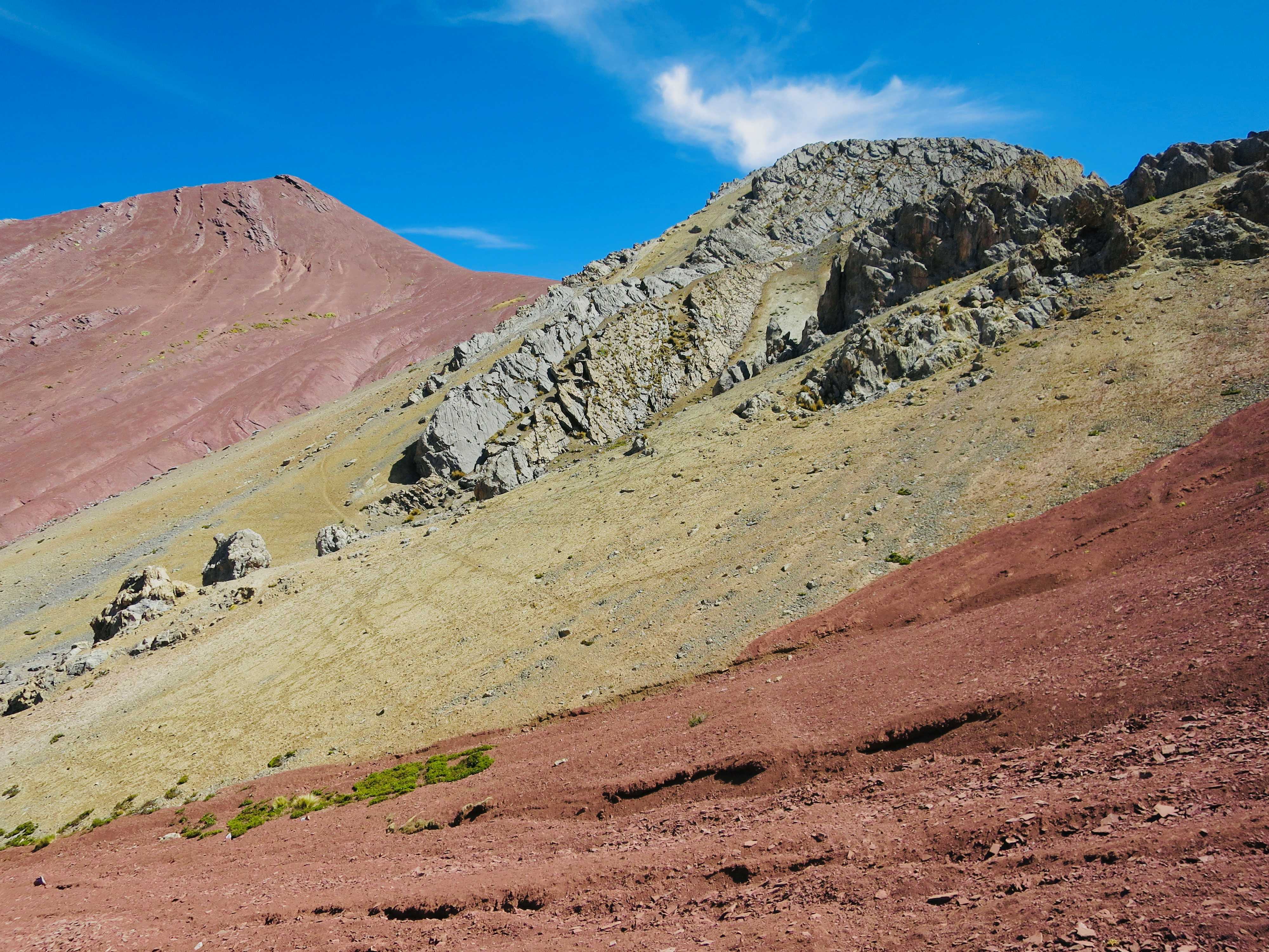 Contrairement à Vinicunca, la montagne arc-en-ciel la plus visitée, on a ici toute la cordillère colorée à perte de vue. C’est un spectacle incroyable. Cette partie de la cordillère était autrefois couverte de glace. C’est l’oxydation des minéraux lors du dégel qui a donné ses merveilleuses couleurs aux montagnes.