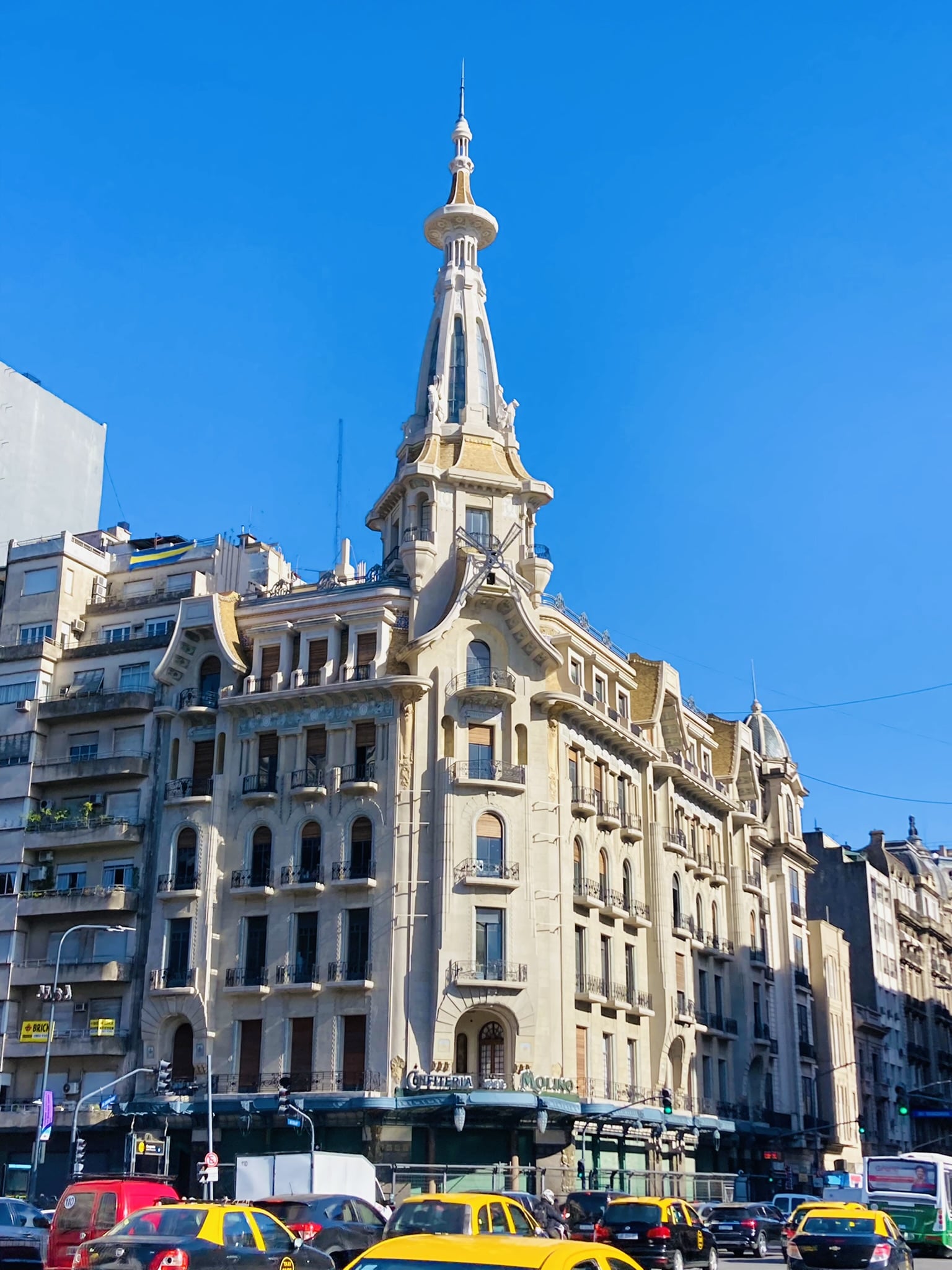 L’Avenida de Mayo est réputée pour son architecture de style néo-classique et Art nouveau, notamment d’inspiration espagnole et française, qui rappelle l’élégance et le charme de la Belle Époque. Les bâtiments qui bordent l’avenue sont ornés de balcons en fer forgé, de corniches élaborées et de sculptures artistiques, créant une ambiance d’élégance intemporelle.