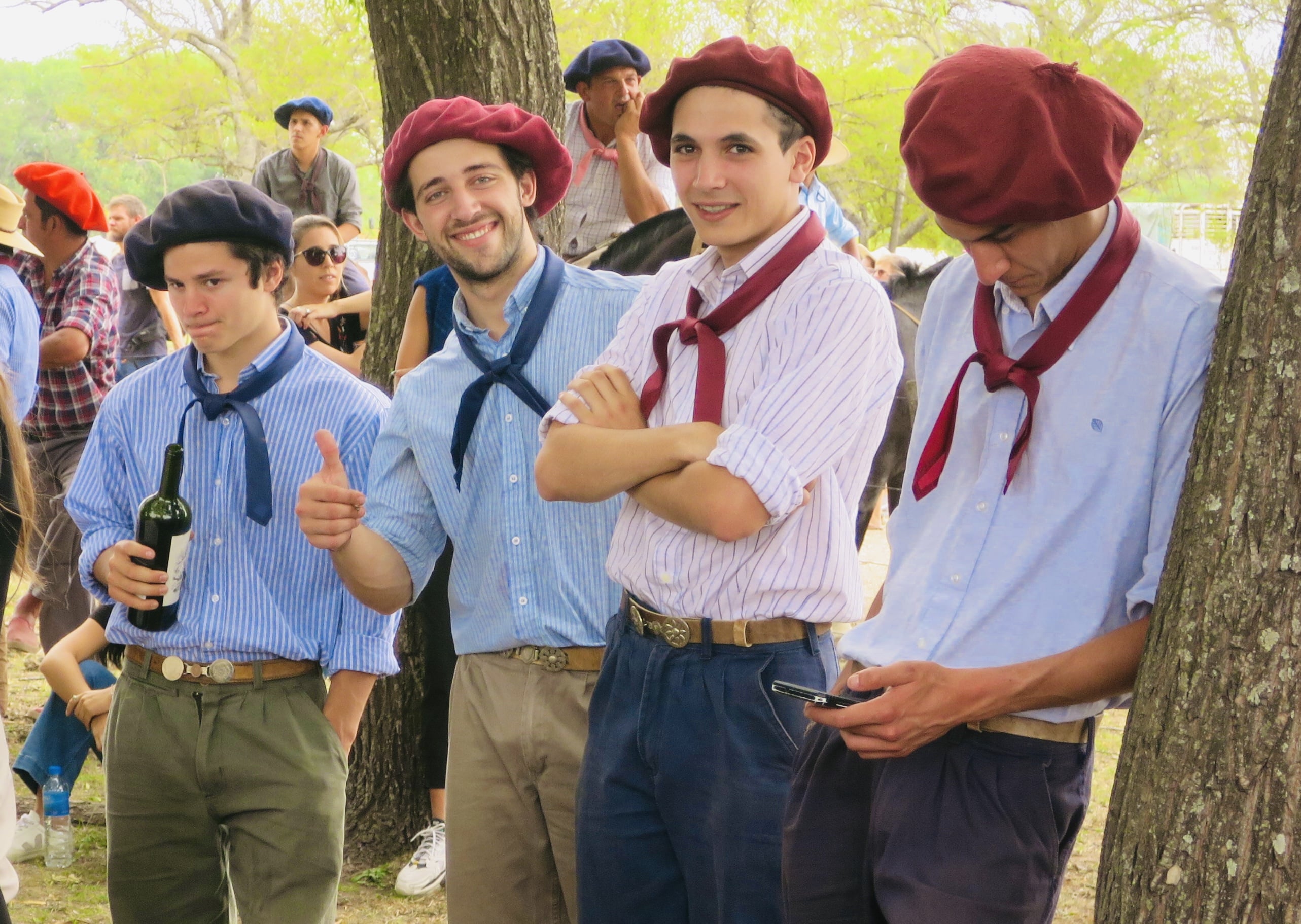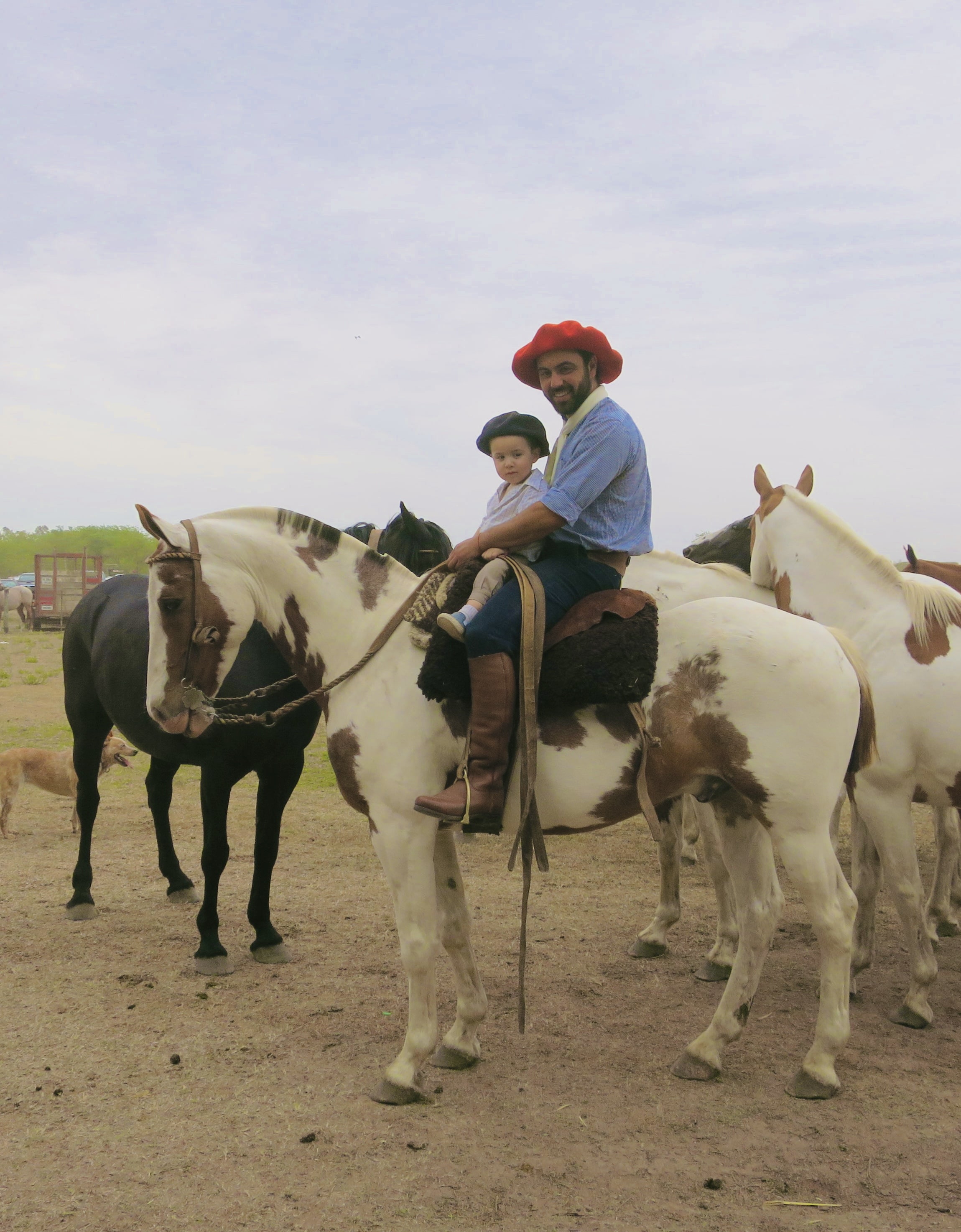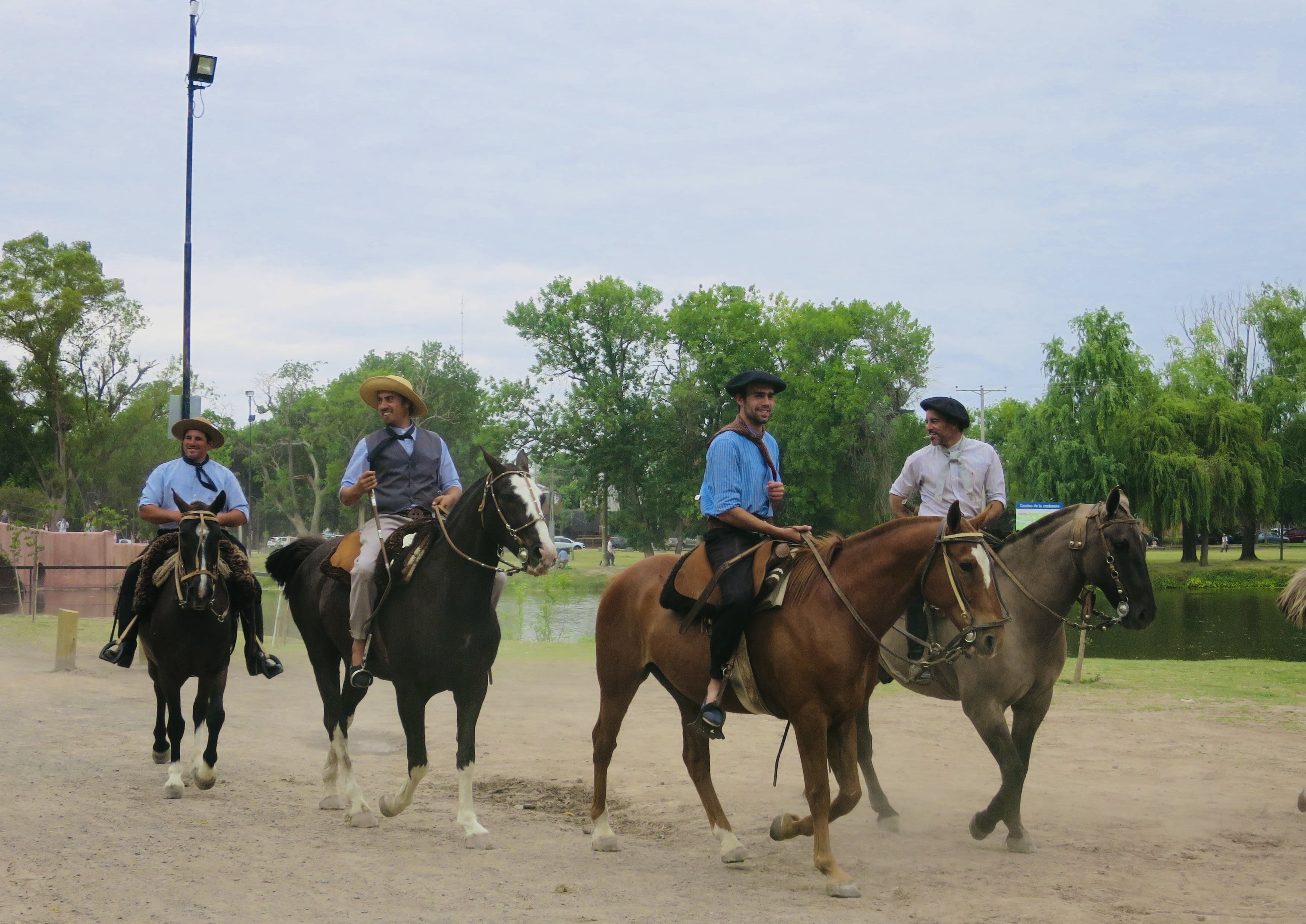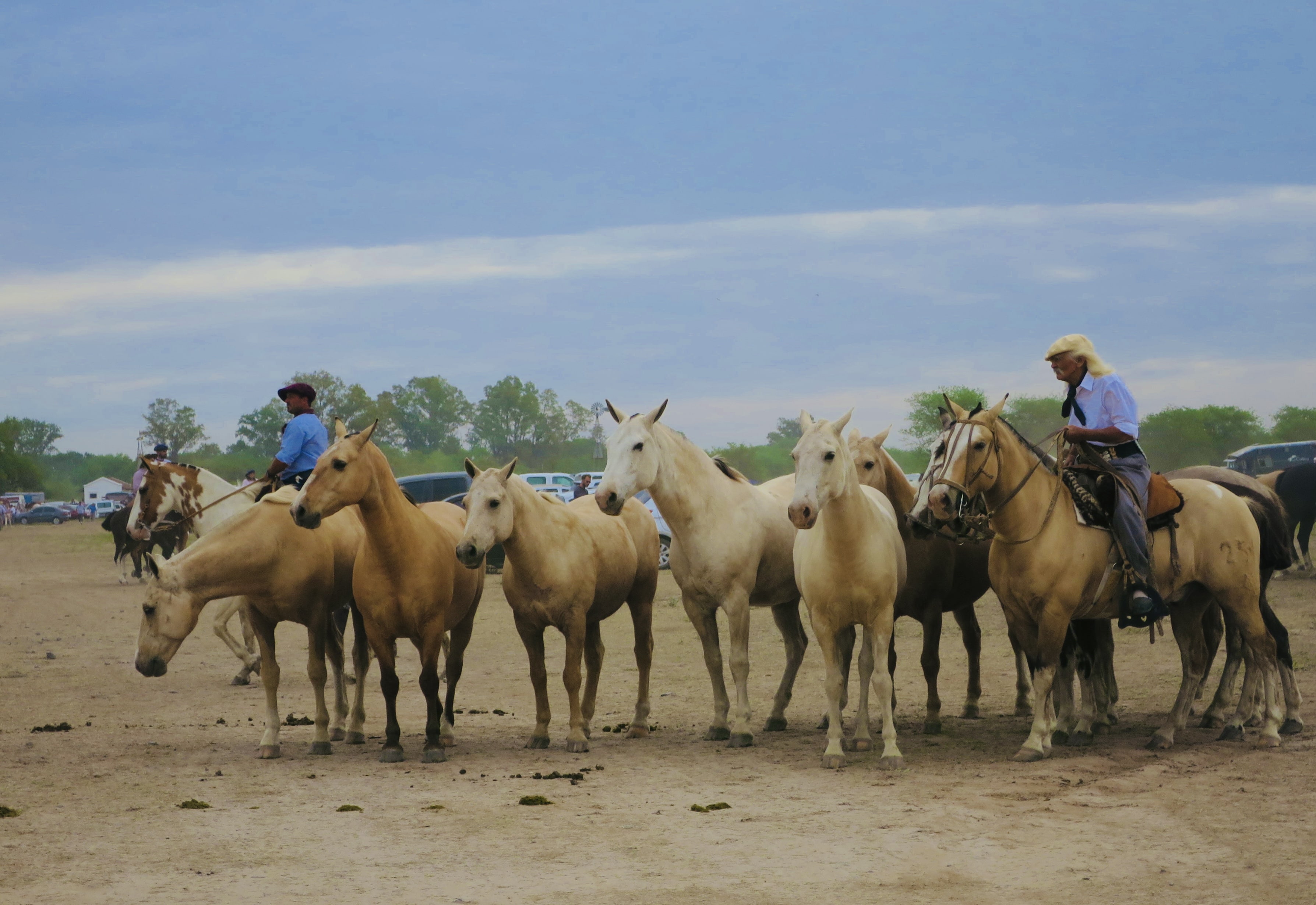Des nombreuses tropillas se préparent pour la jura. Una tropilla est un troupeau de chevaux (entre 7 et 10 chevaux) qui suivent un jinete (cavalier) au son d’une cloche. Ils ne sont pas attachés. Mais ils sont extrêmement bien dressés. C’est magnifique!