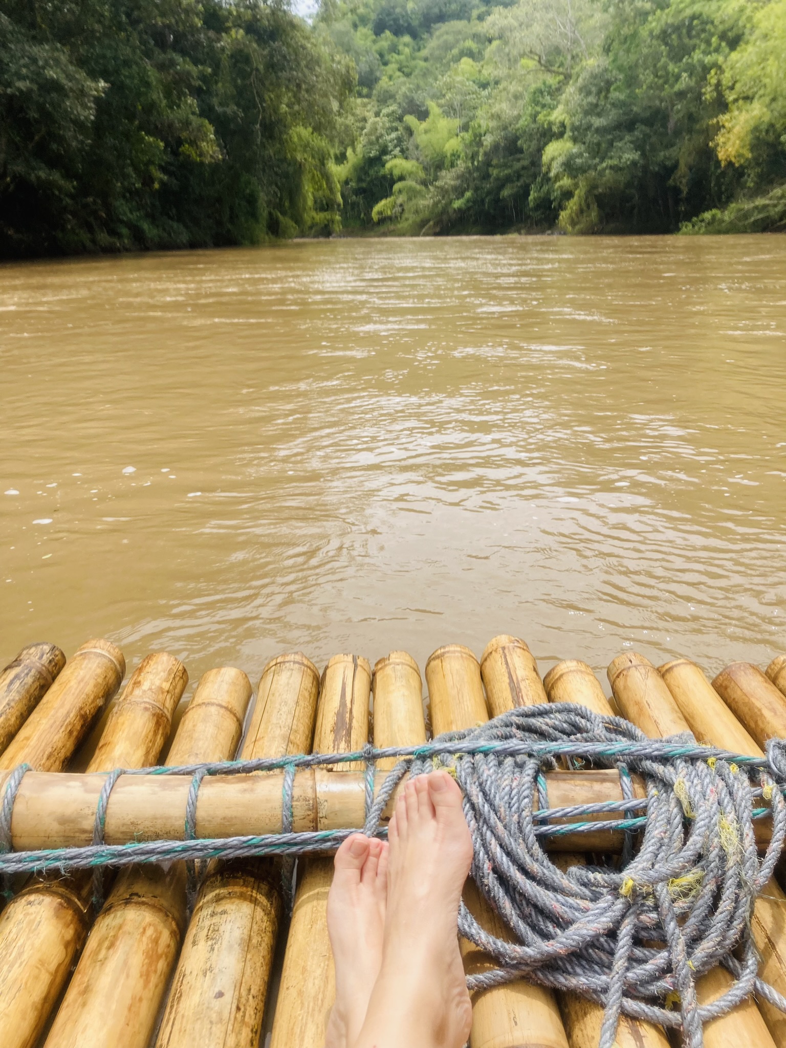 Une fois arrivés au port, on a rencontré notre embarcation. Le balsaje est, comme son nom l’indique, une ballade en « balsa », c’est-à-dire sur un radeau de bambous attachés avec de la corde et sur lesquelles on a installé des sièges. On a appris que les balseros descendent la rivière avec des passagers et ensuite défont littéralement le radeau pour le transporter sur une camionnette de nouveau à Puerto Alejandría où ils le reconstruisent. Cela à chaque jour…