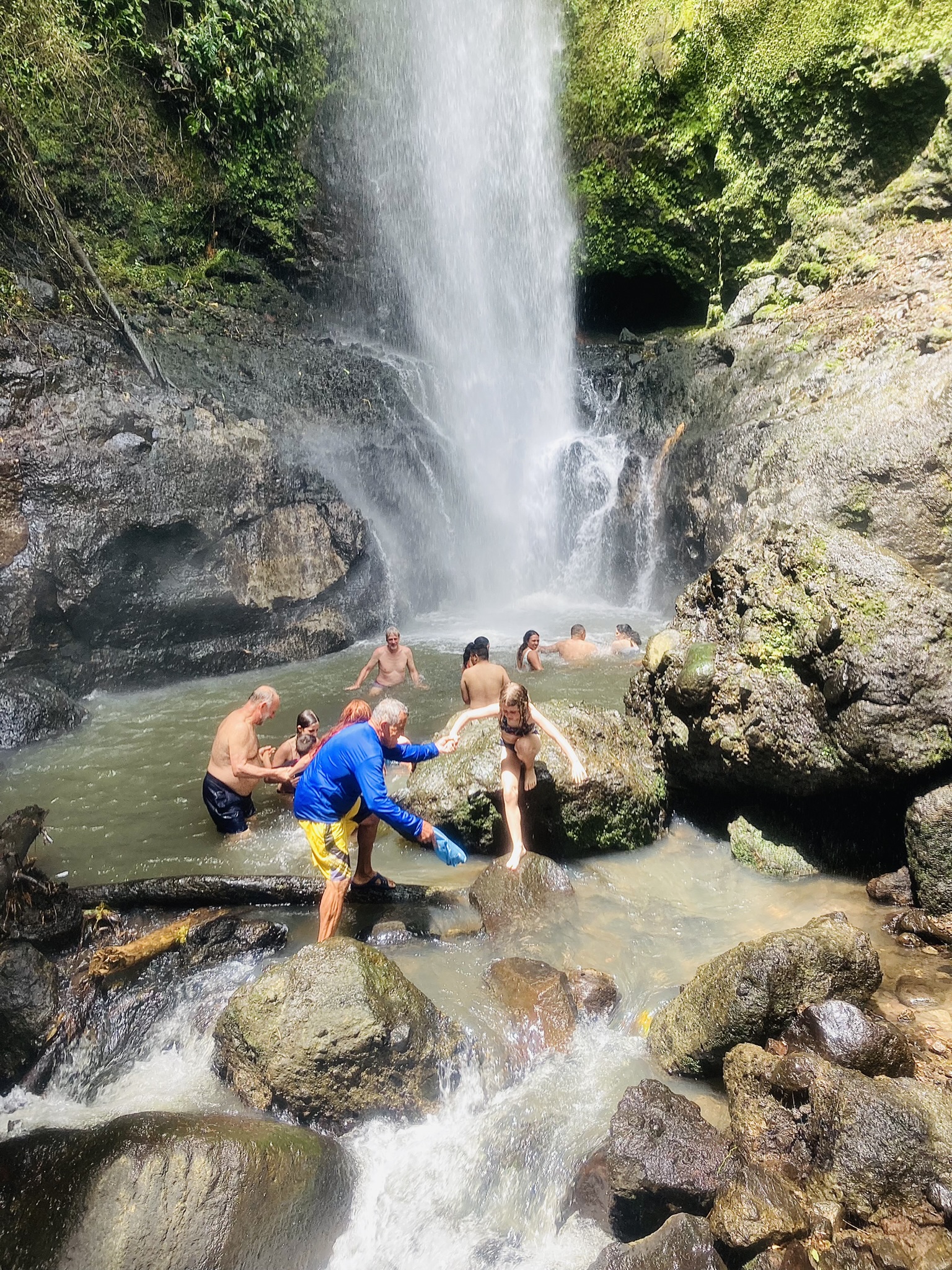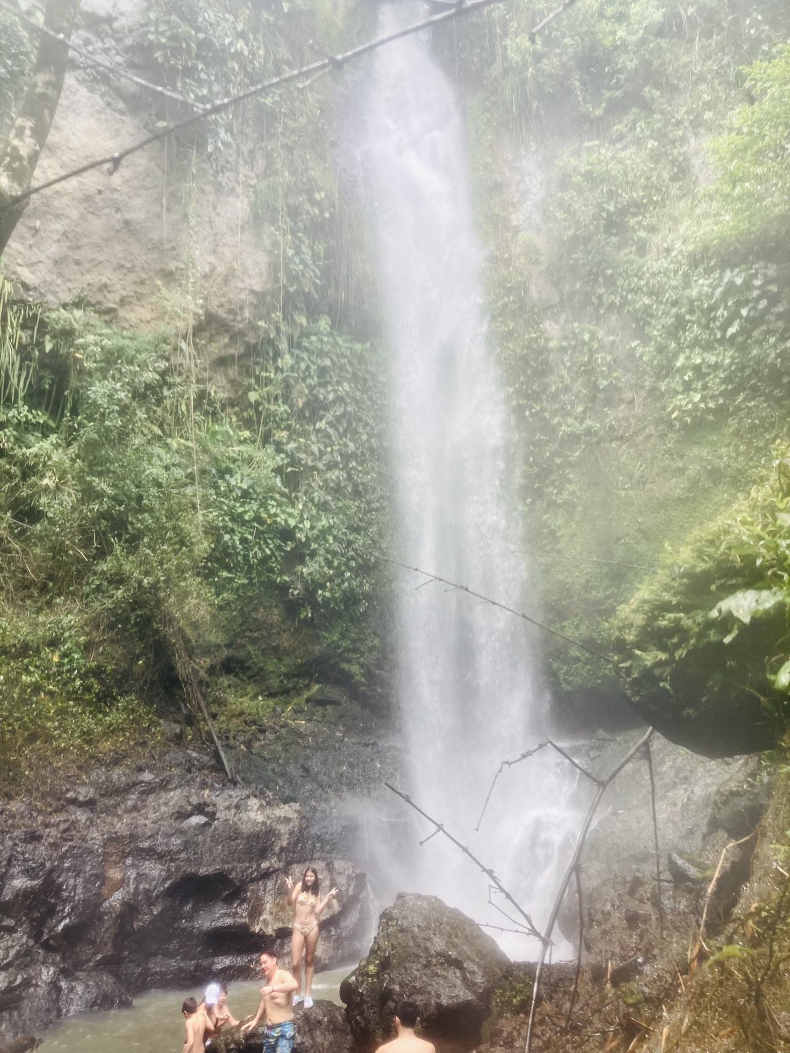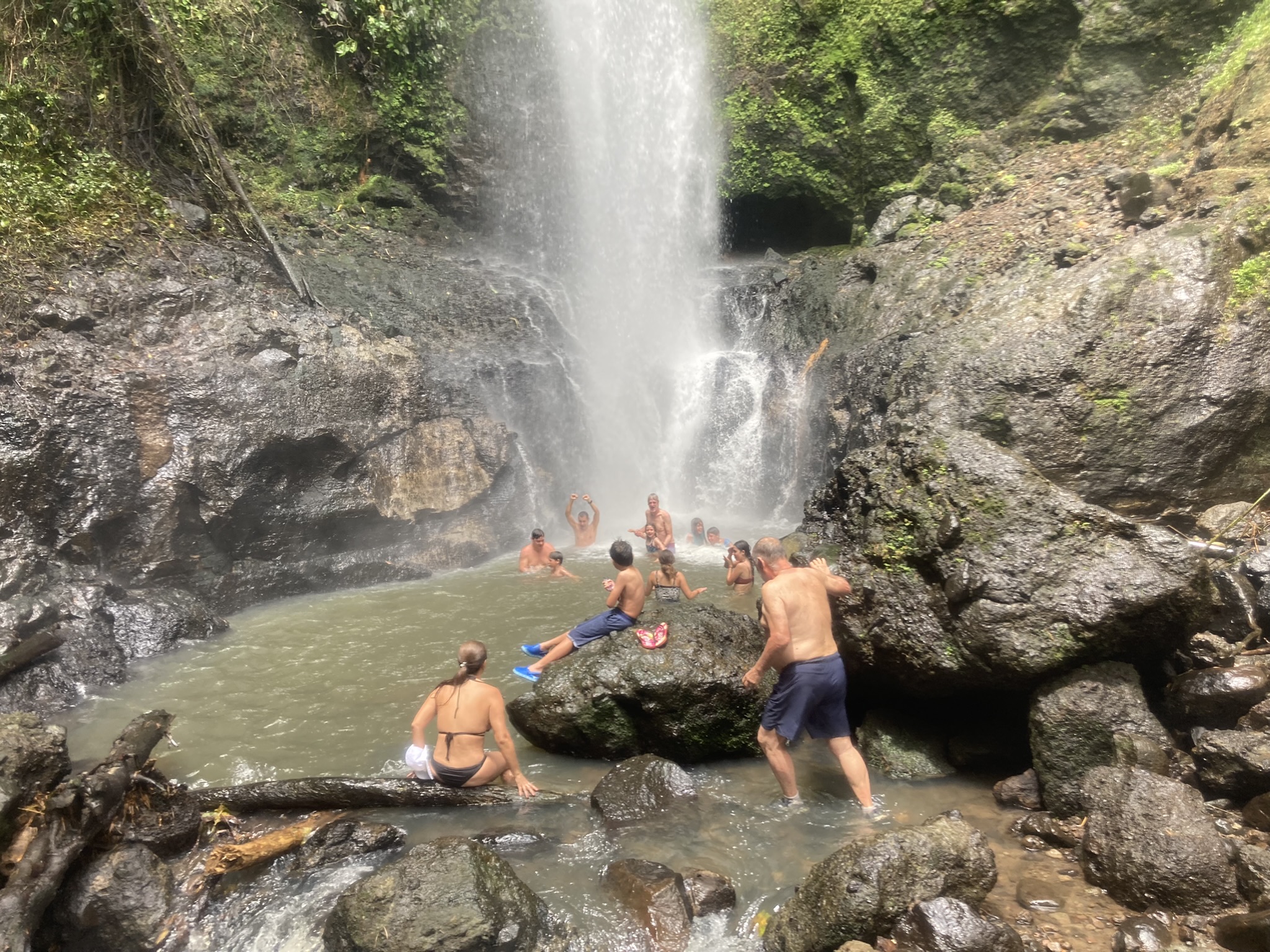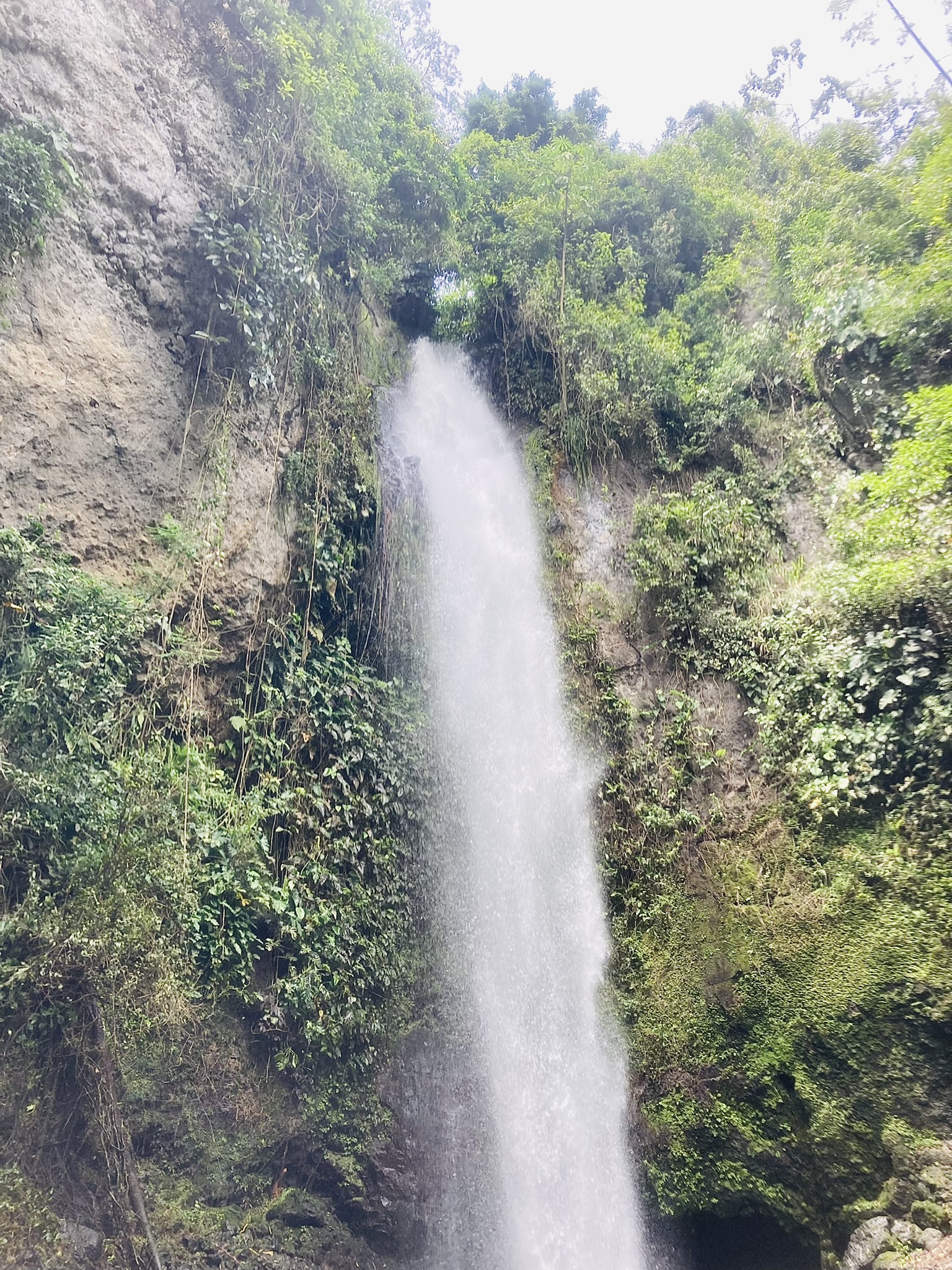 Après dîner, nous avons grimpé 25 min sur un chemin privé et escarpé jusqu’à l’impressionnante Cascada Los Micos où l’on pouvait se baigner, à nos risques et périls!
