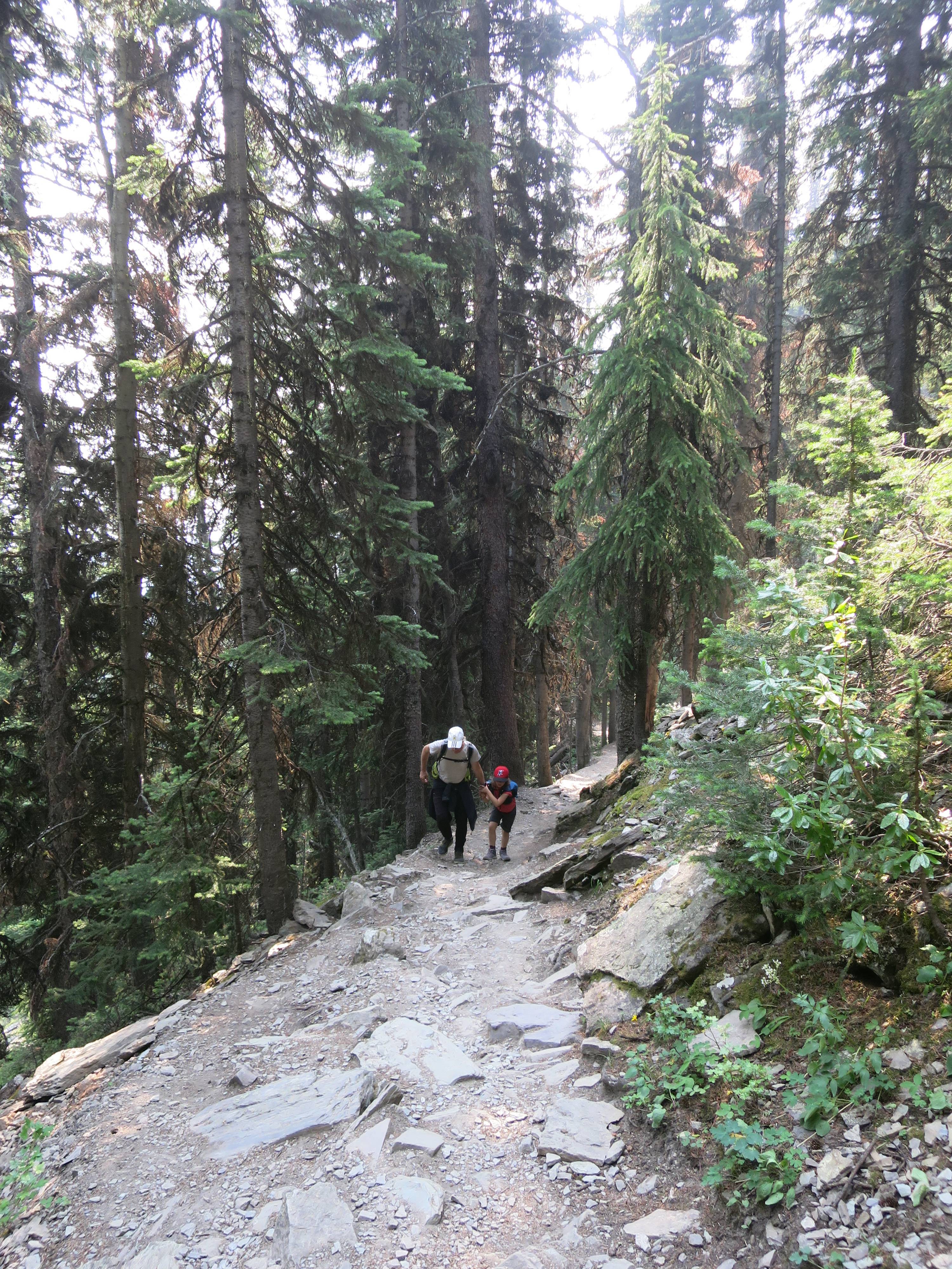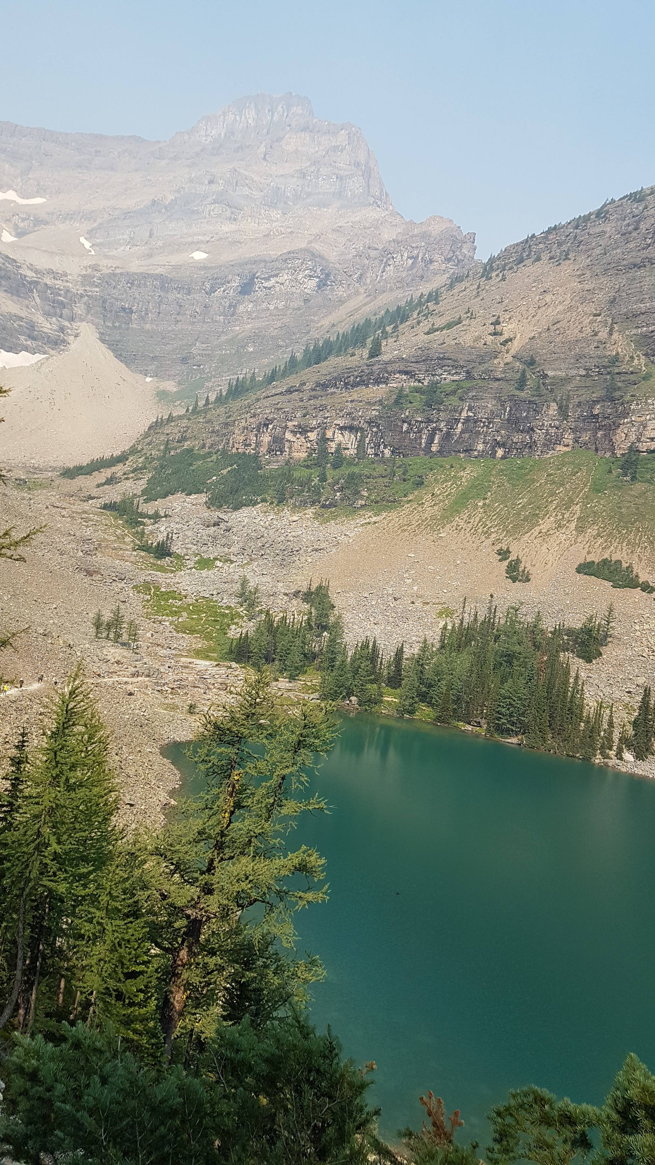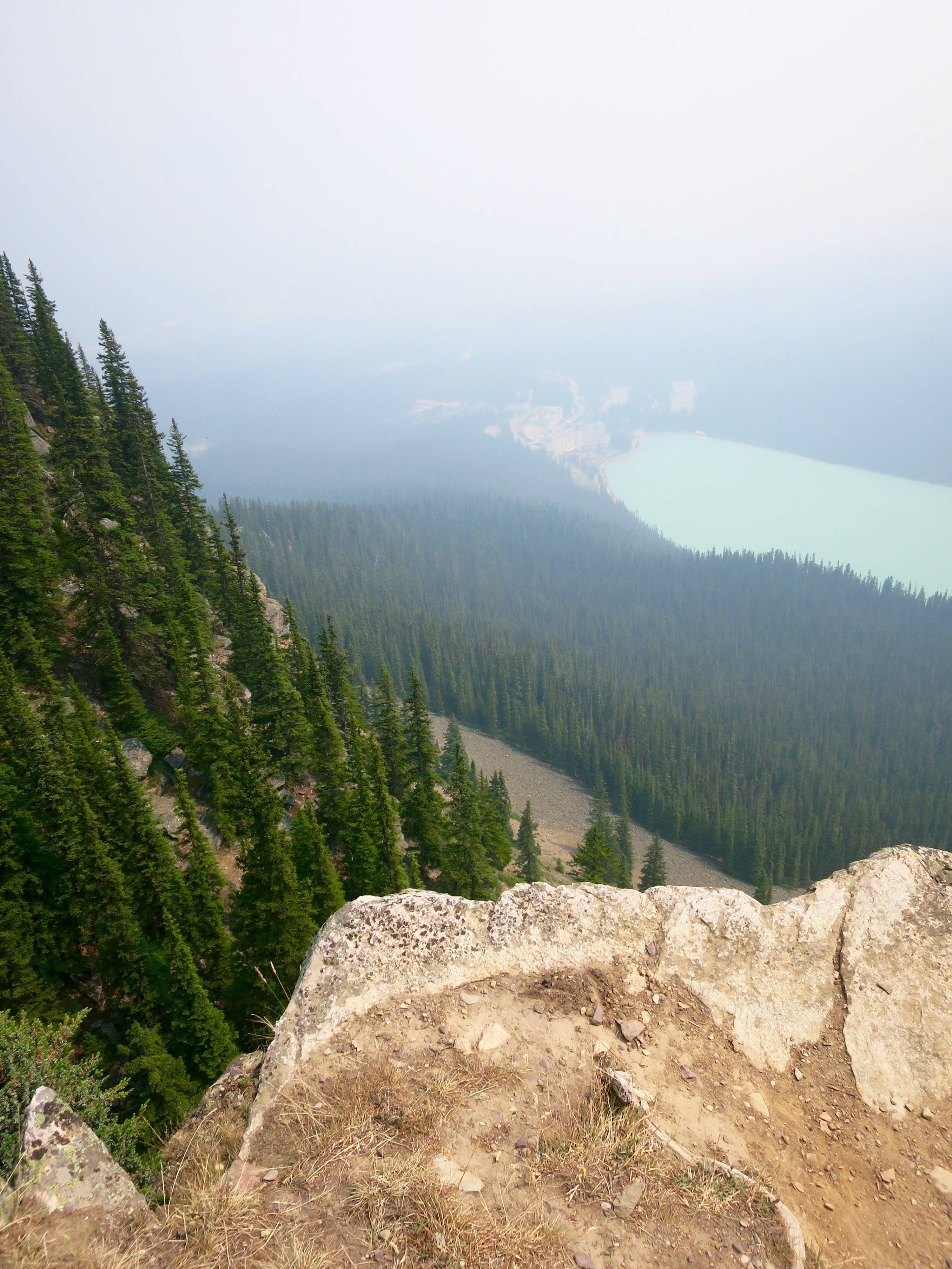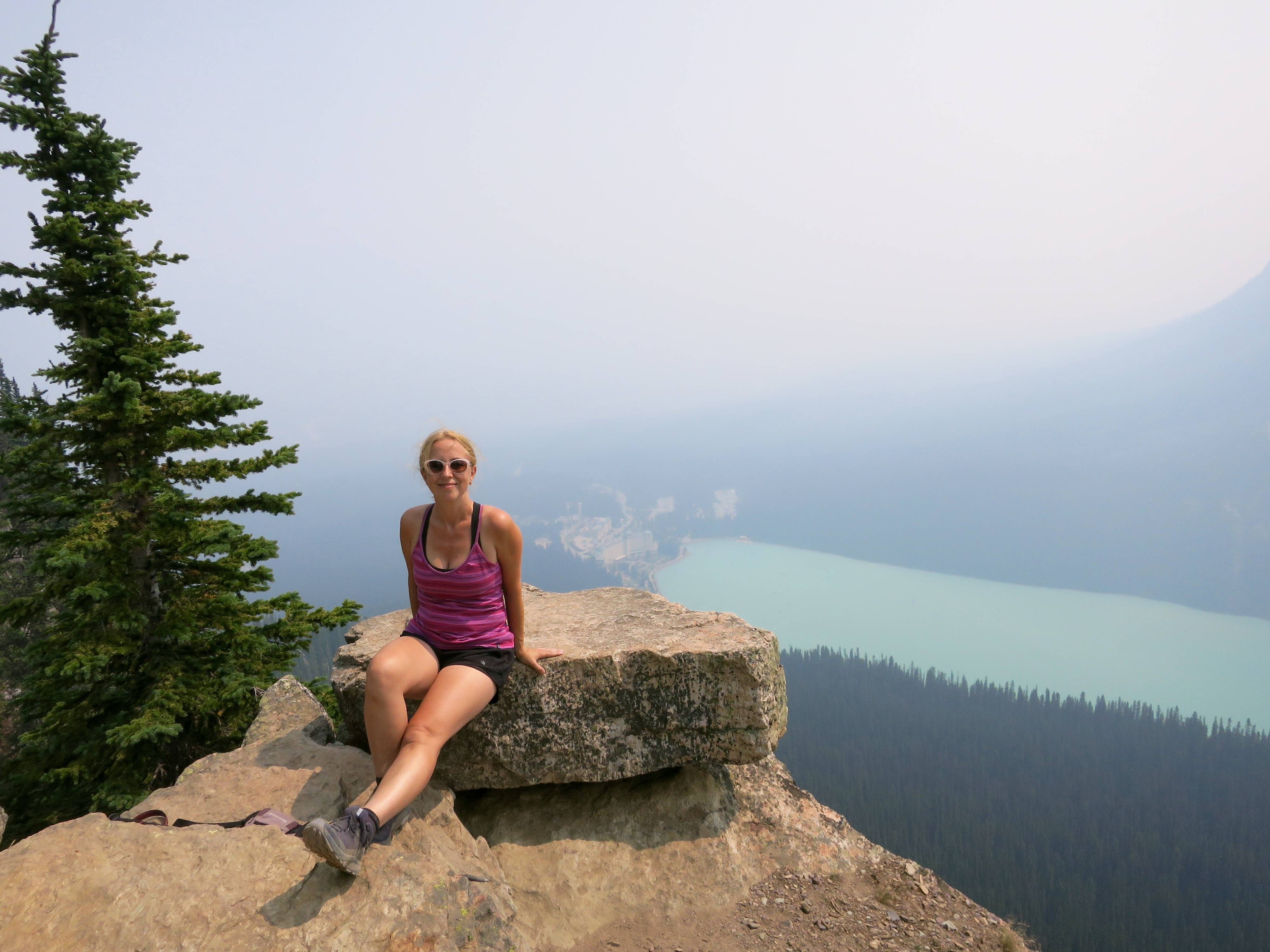 Après une pause et une tentative de baignade dans les eaux glaciales du Lac Agnès (elles sont à 5°C), les adultes ont décidé de grimper jusqu’au Big Beehive. Une montée assez raide d’environ 45 min récompensée par une spectaculaire vue sur le Lac Louise.