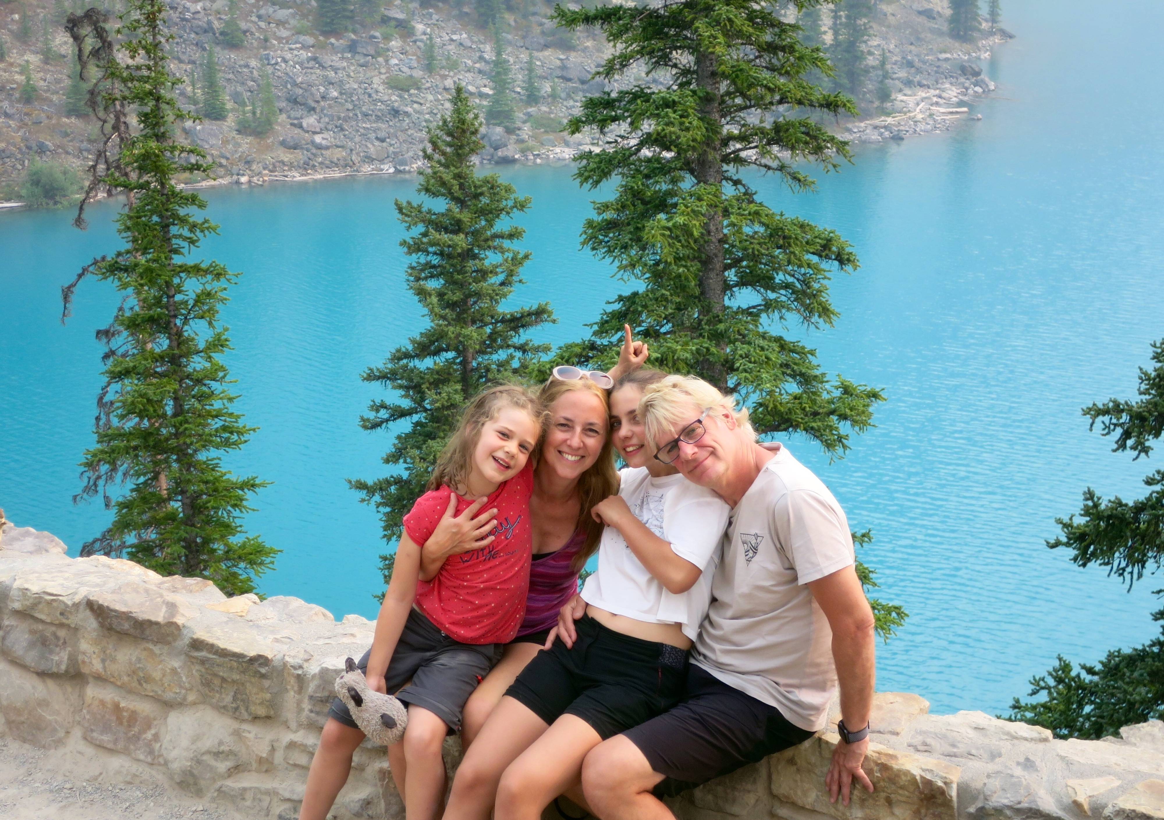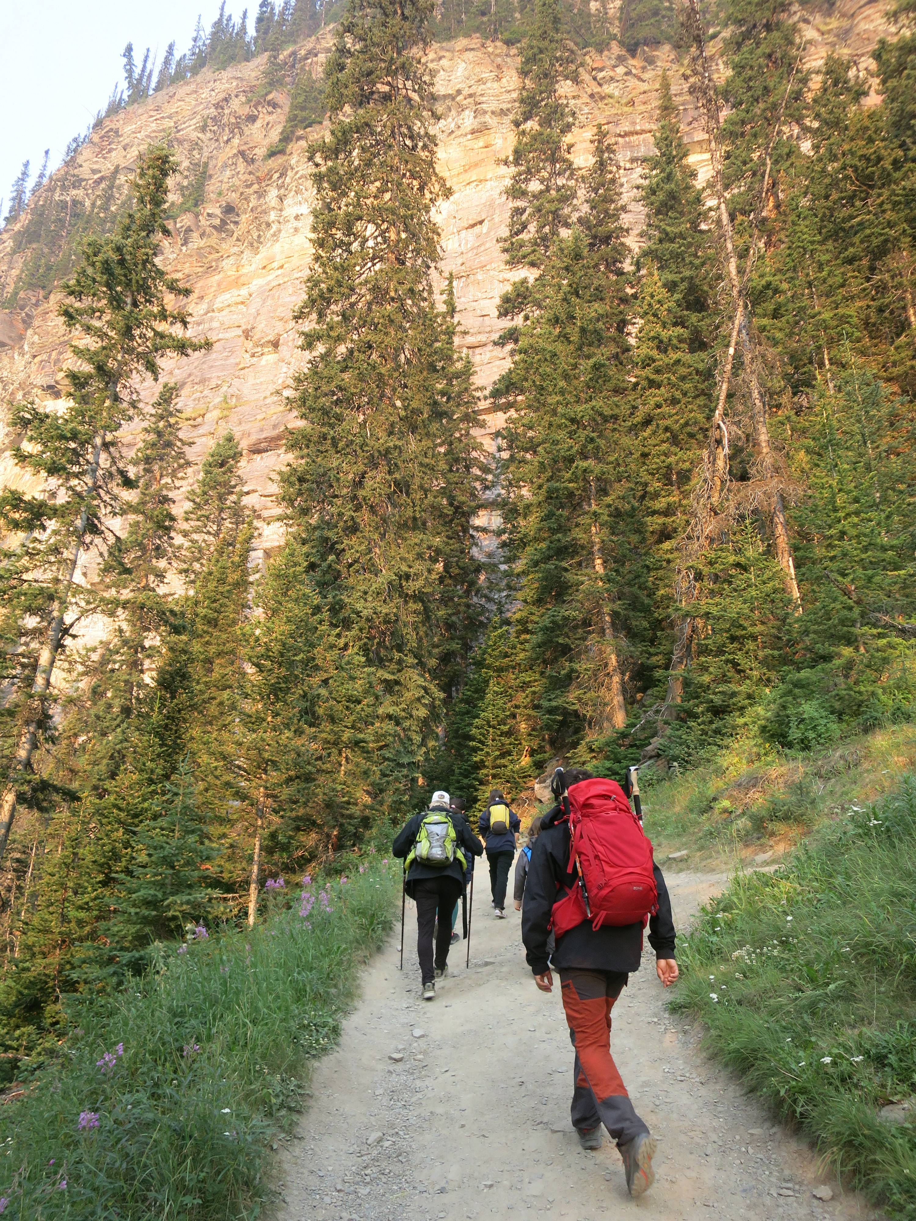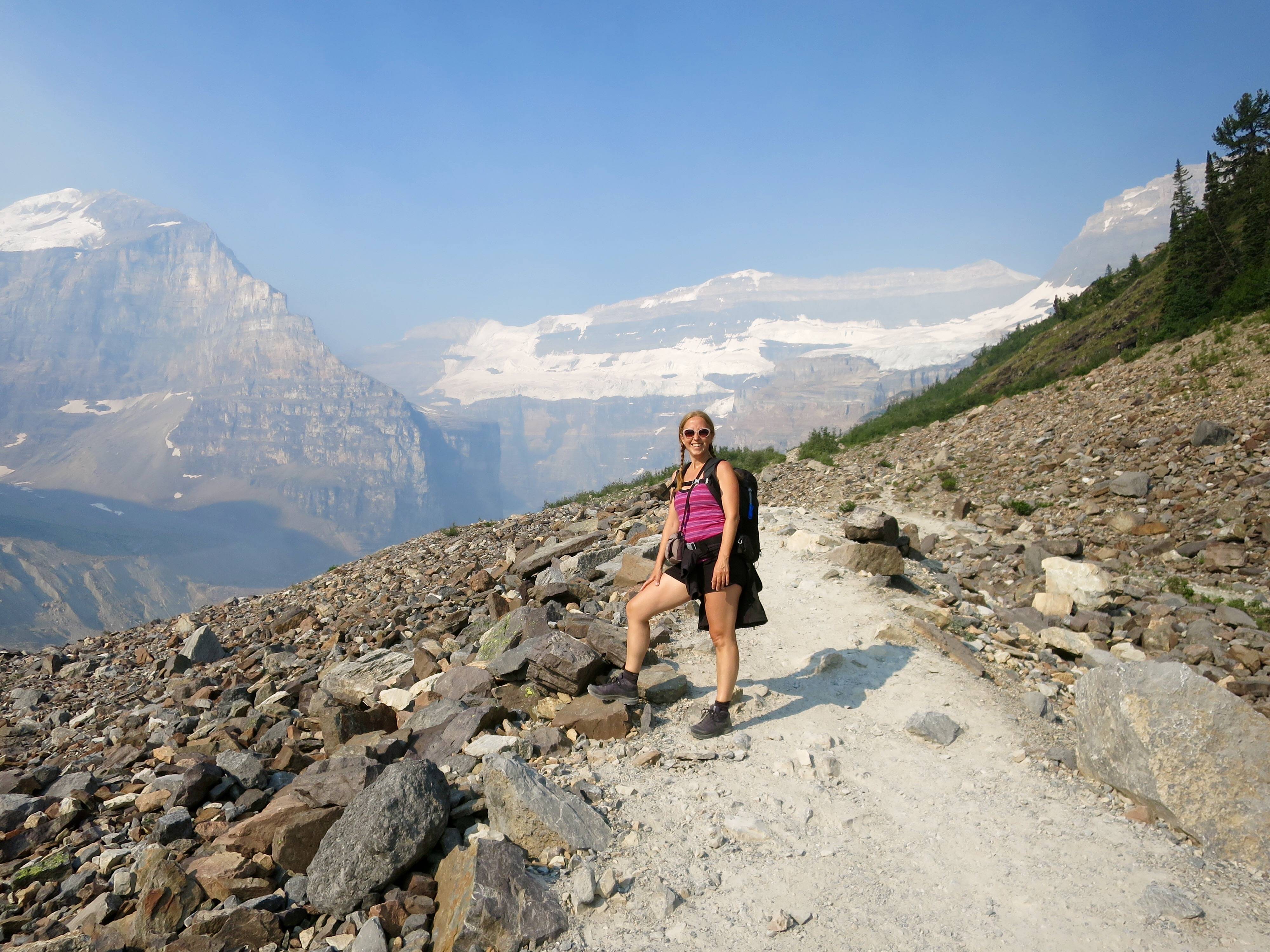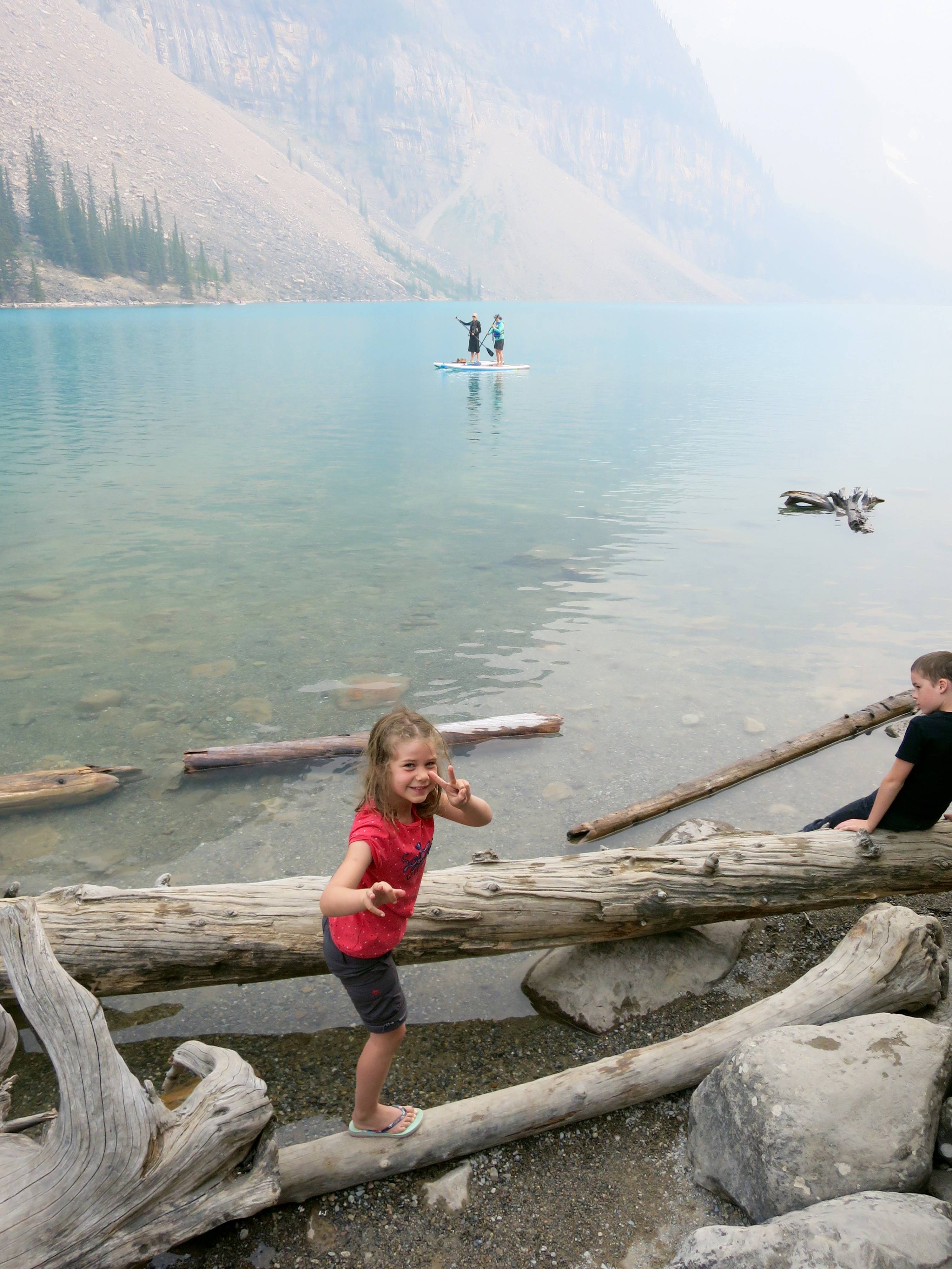 Après une pause et une tentative de baignade dans les eaux glaciales du Lac Agnès (elles sont à 5°C), les adultes ont décidé de grimper jusqu’au Big Beehive. Une montée assez raide d’environ 45 min récompensée par une spectaculaire vue sur le Lac Louise.