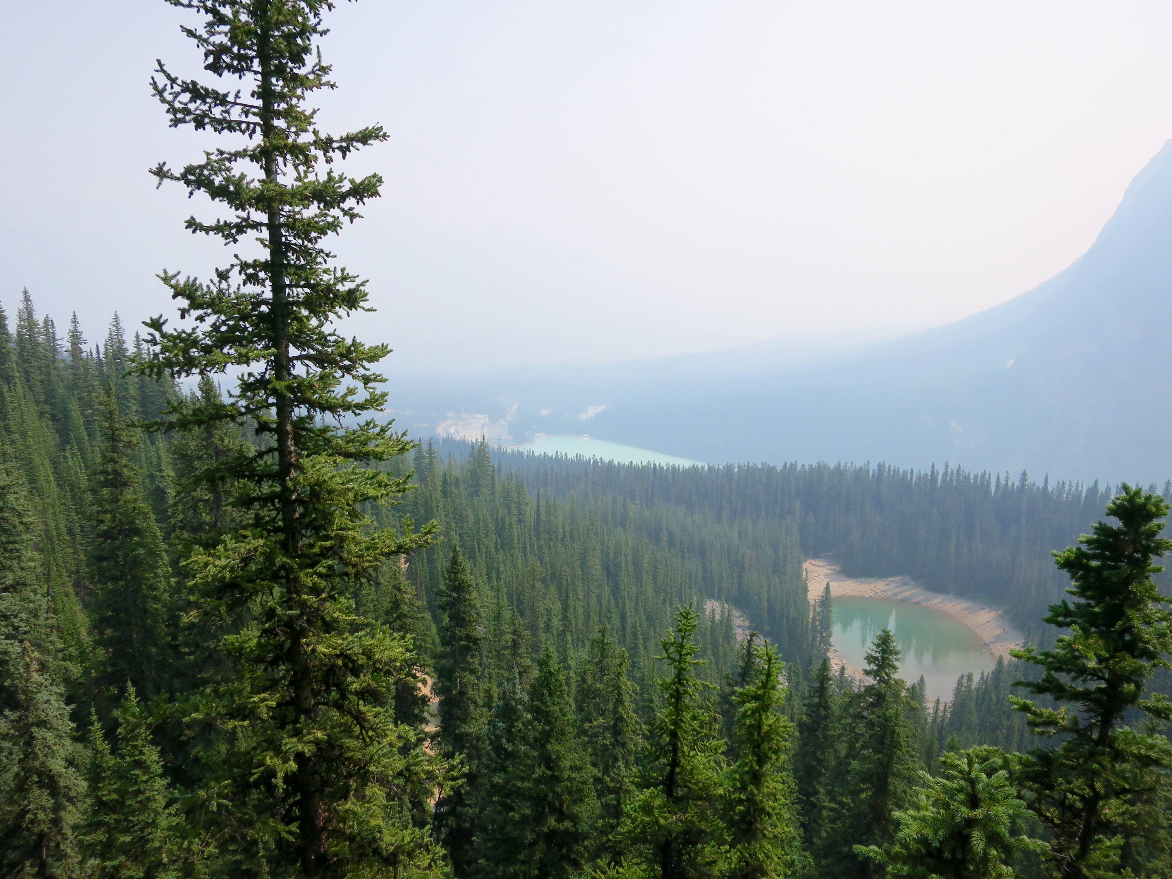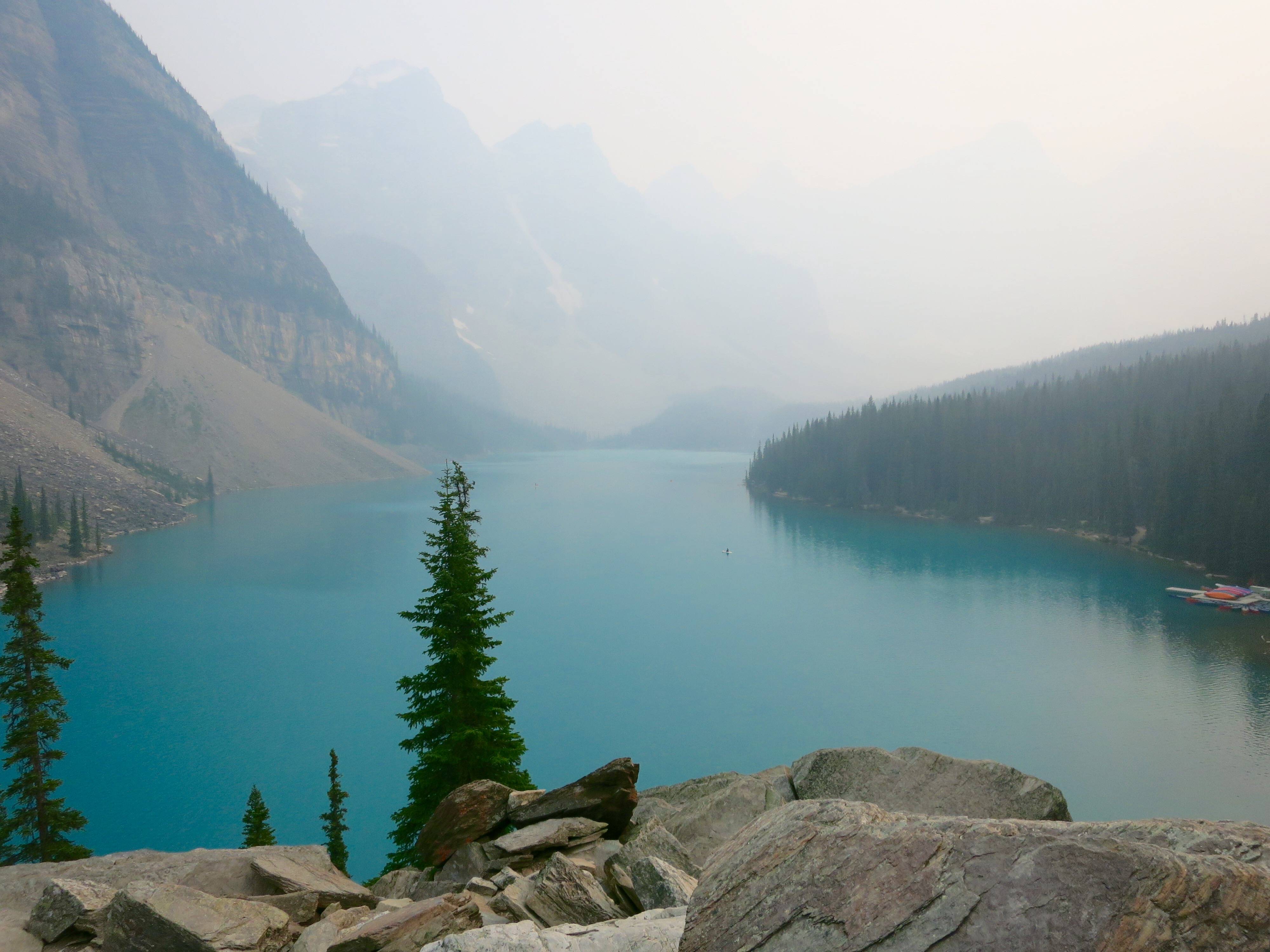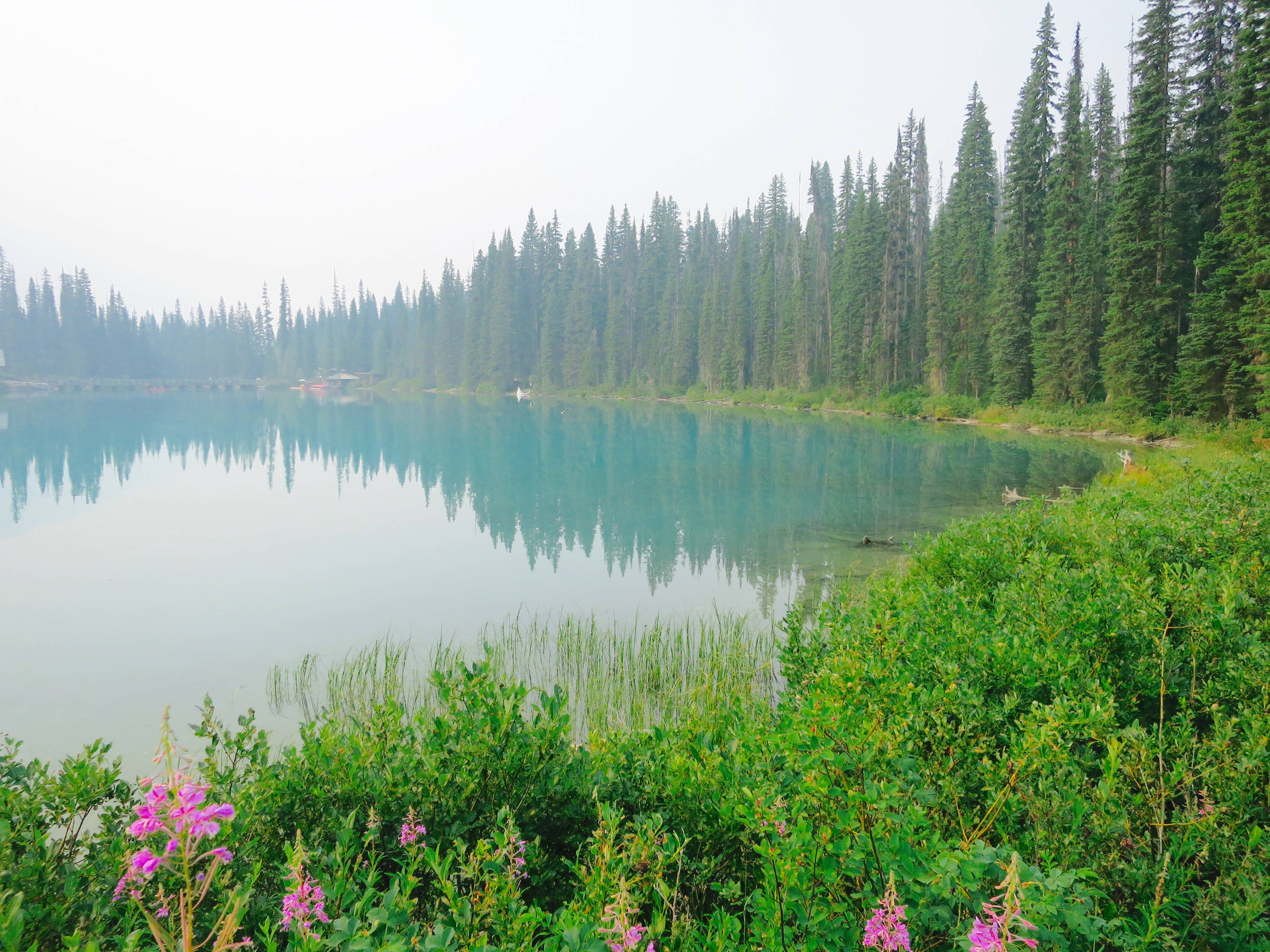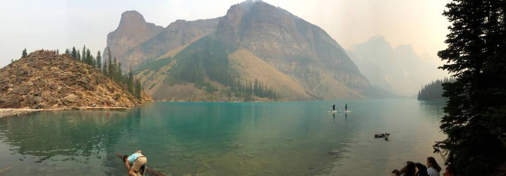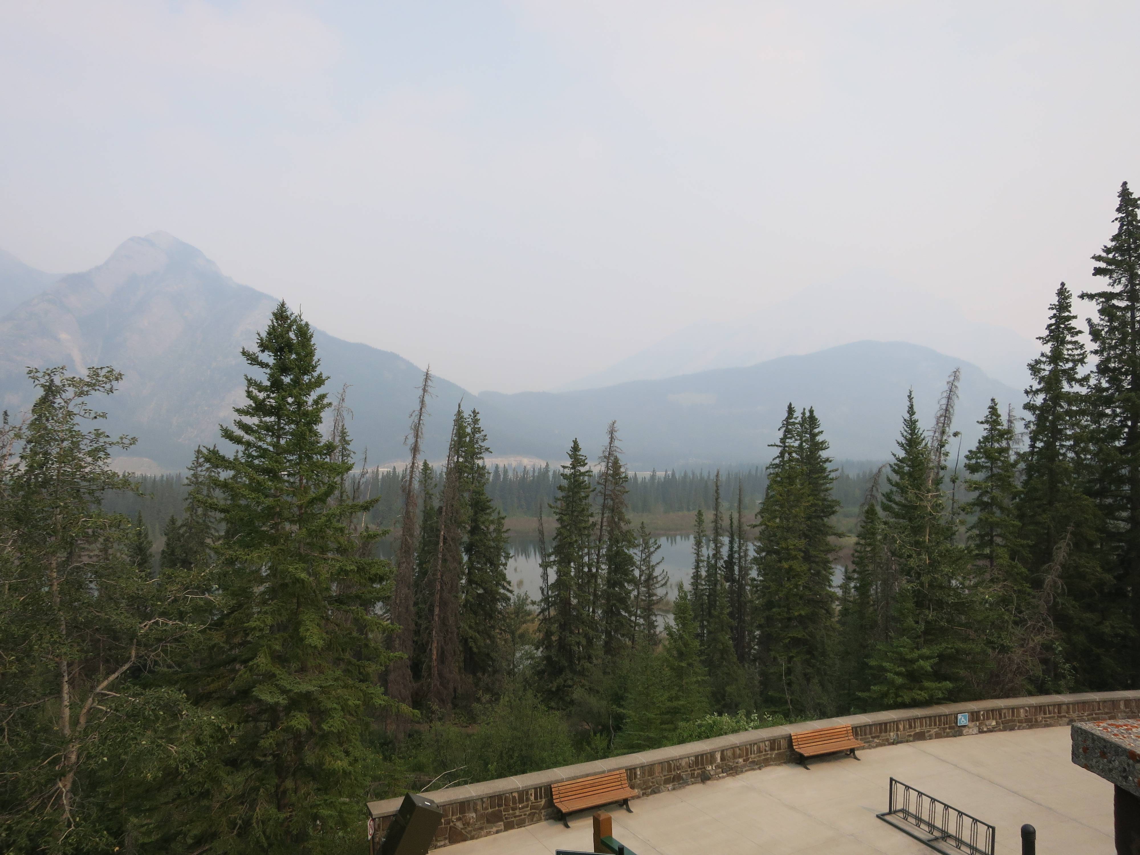 - Vous remarquerez un voile gris sur la plupart des photos de ce voyage. Il y avait beaucoup de fumée lors de notre visite, en raison des fréquents feux de forêts qui surviennent malheureusement souvent en Alberta et en Colombie-Britannique durant la saison chaude. Des résidents nous ont raconté qu’il arrive très souvent de voir ce voile gris dans le ciel l’été.