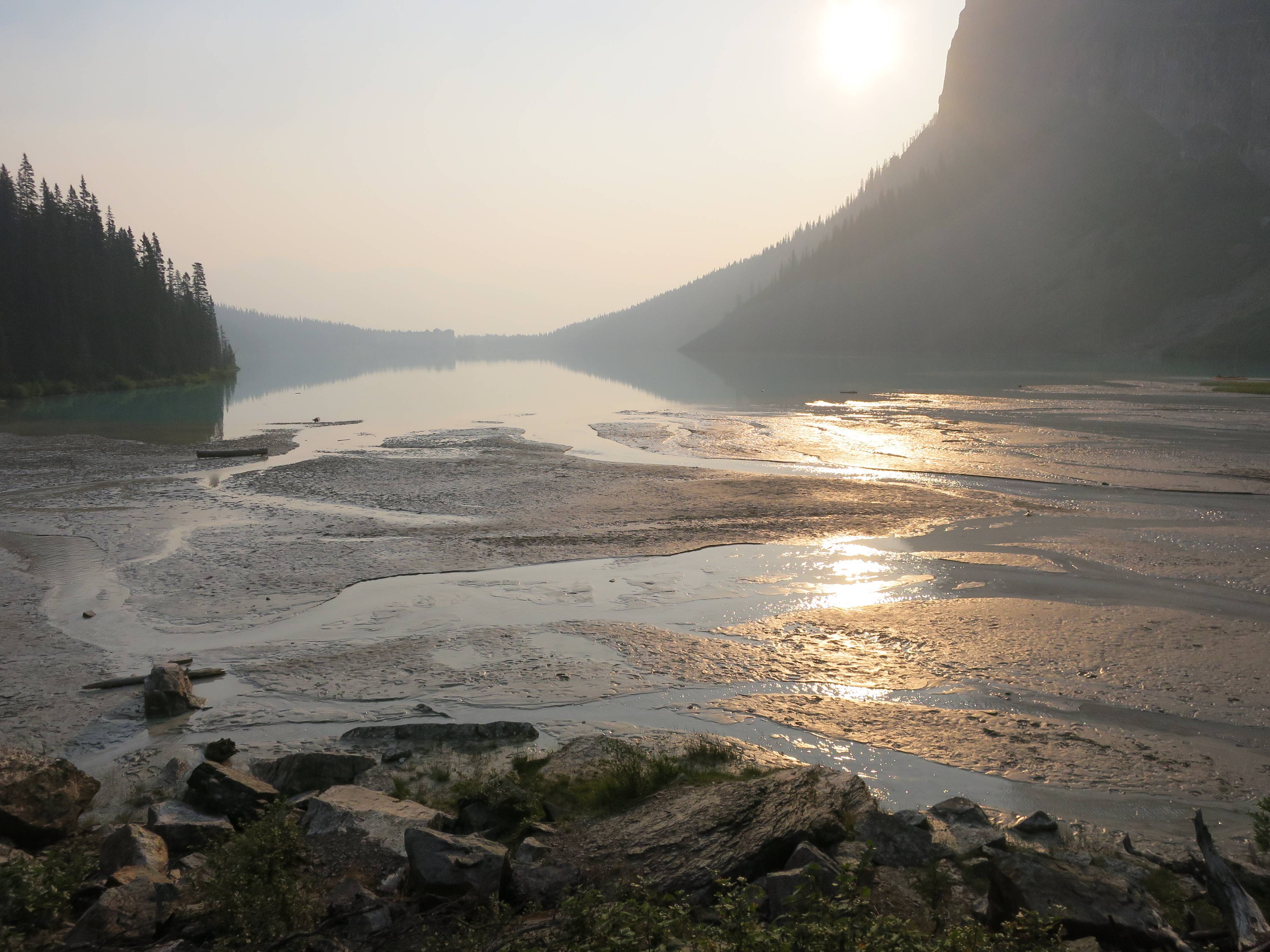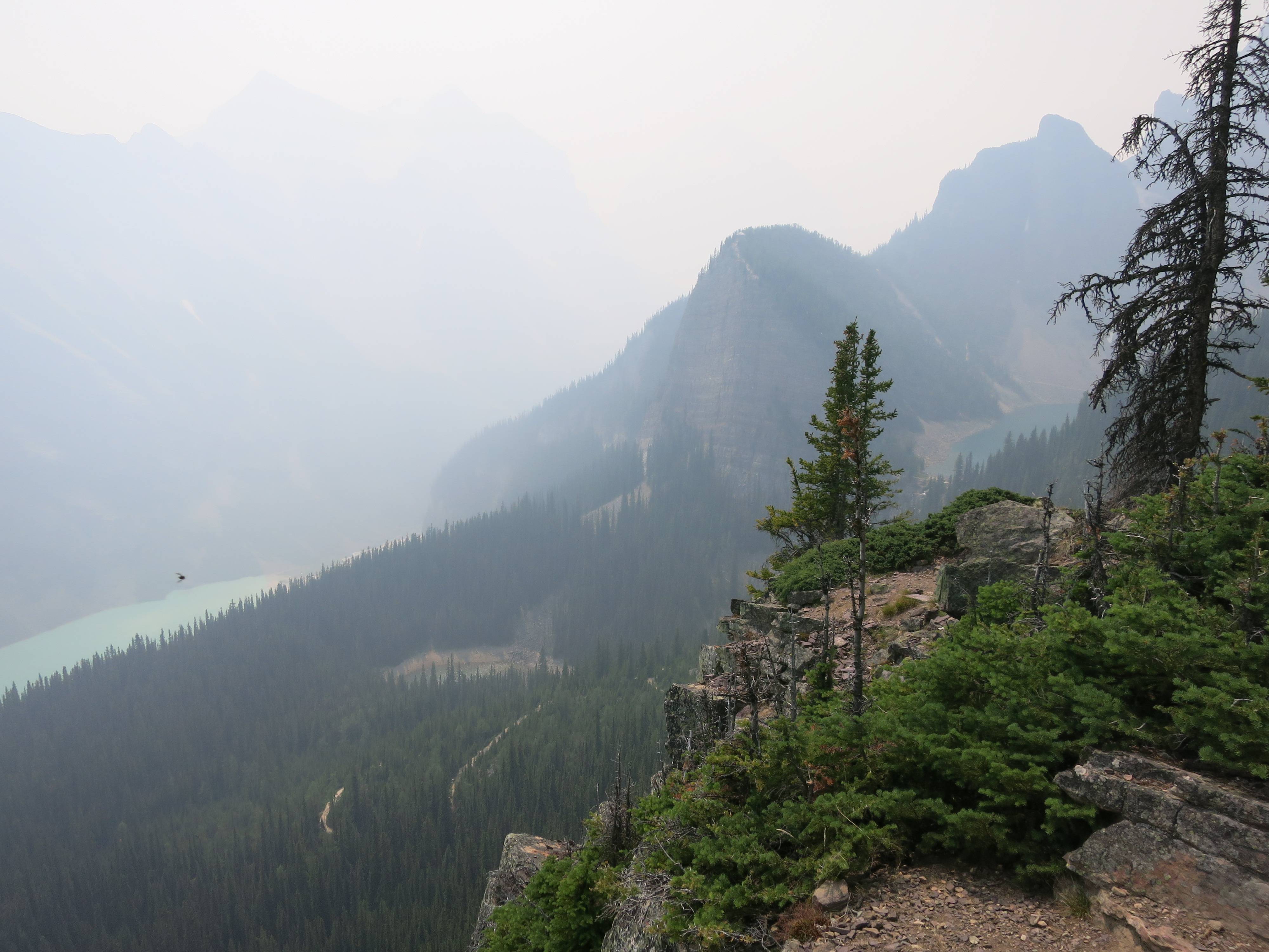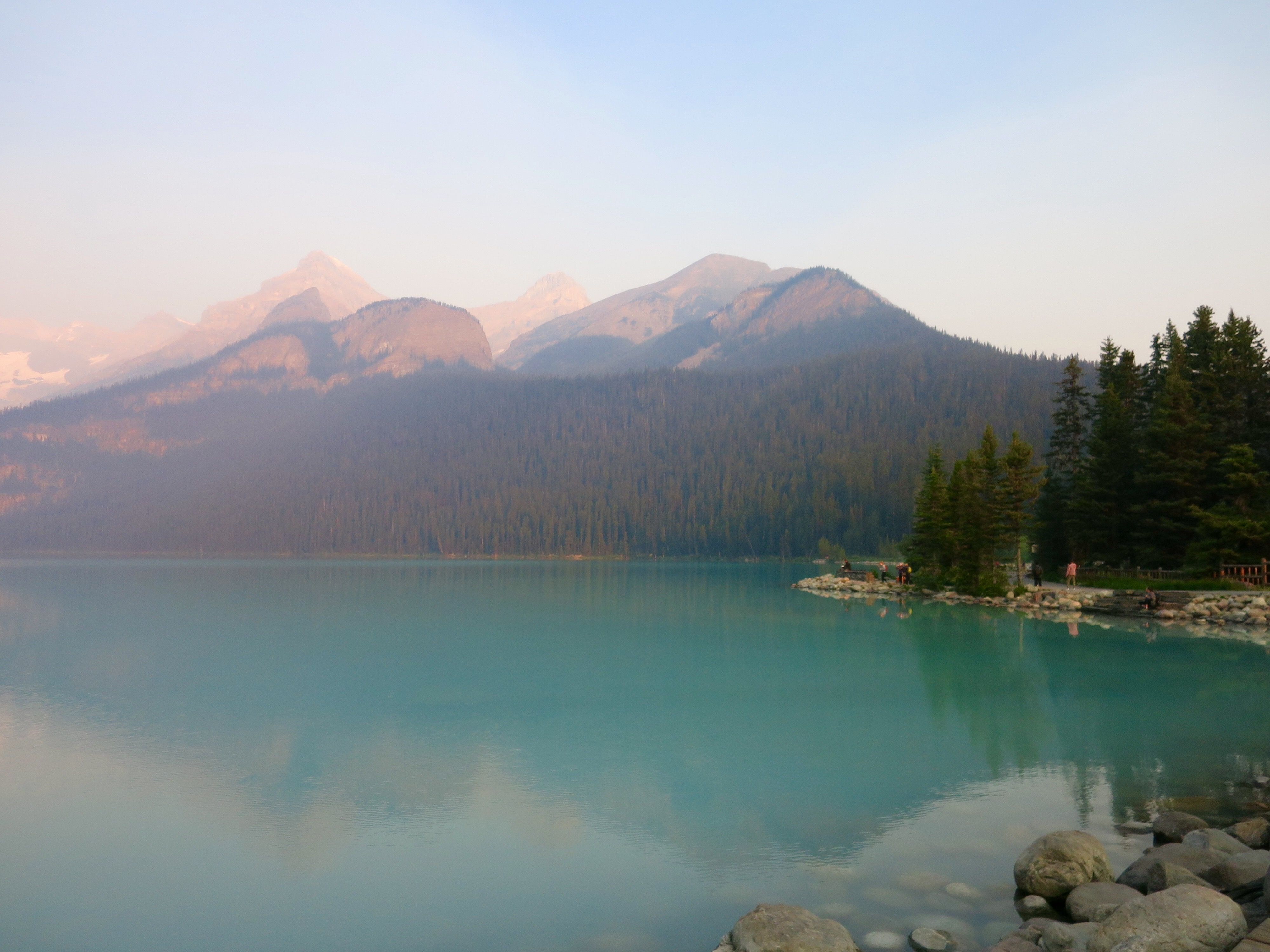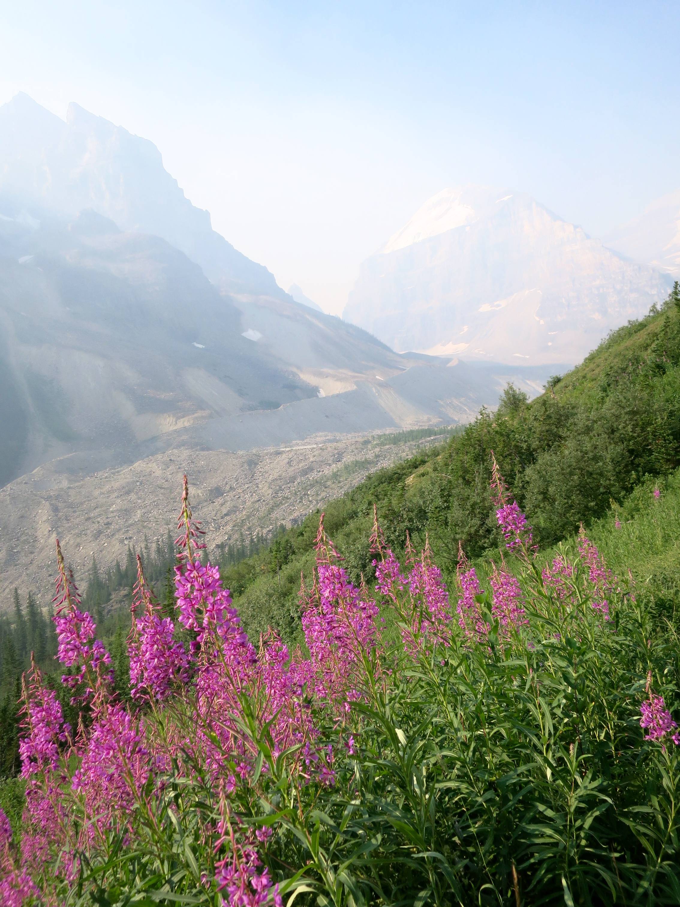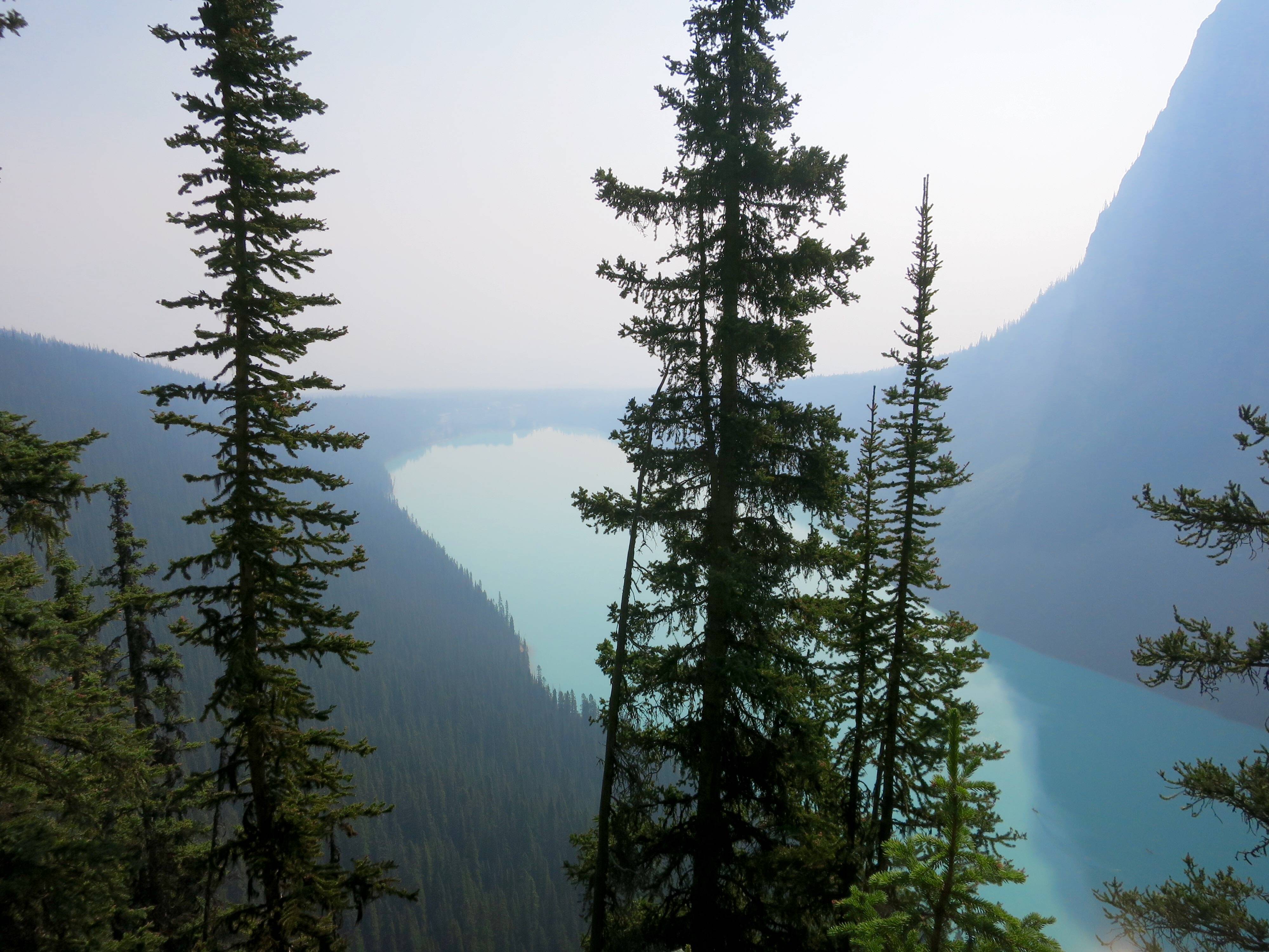 - Vous remarquerez un voile gris sur la plupart des photos de ce voyage. Il y avait beaucoup de fumée lors de notre visite, en raison des fréquents feux de forêts qui surviennent malheureusement souvent en Alberta et en Colombie-Britannique durant la saison chaude. Des résidents nous ont raconté qu’il arrive très souvent de voir ce voile gris dans le ciel l’été.