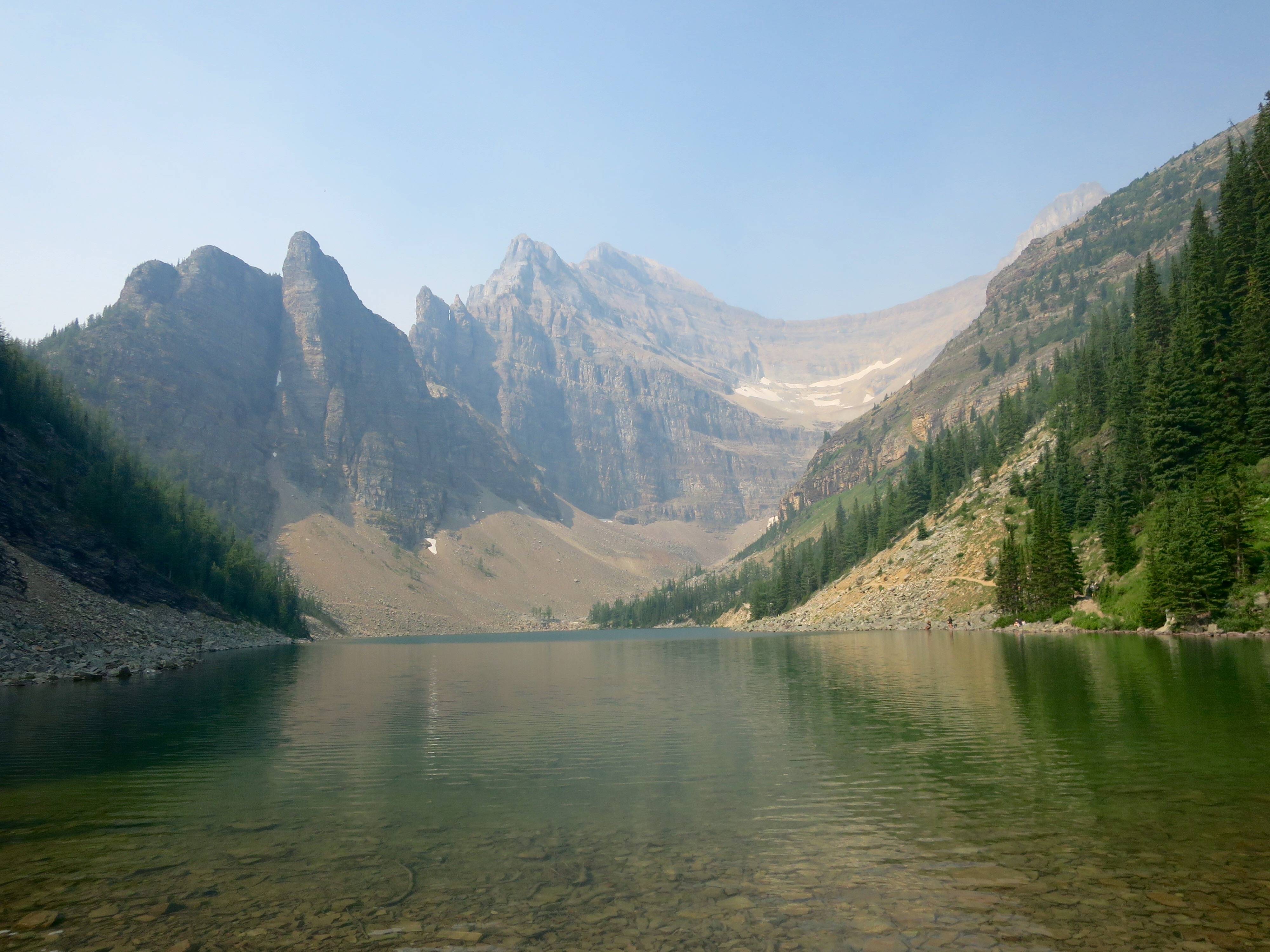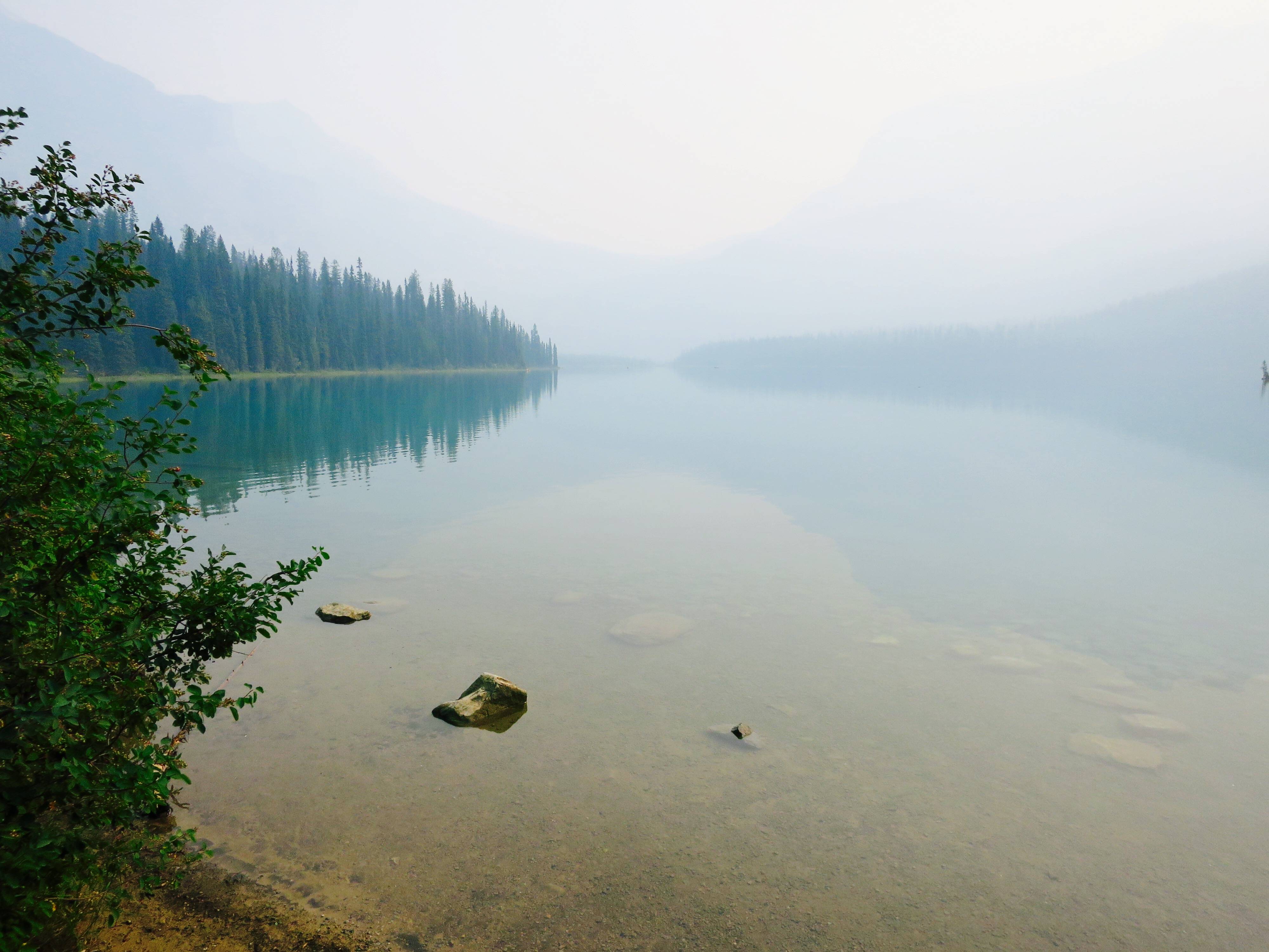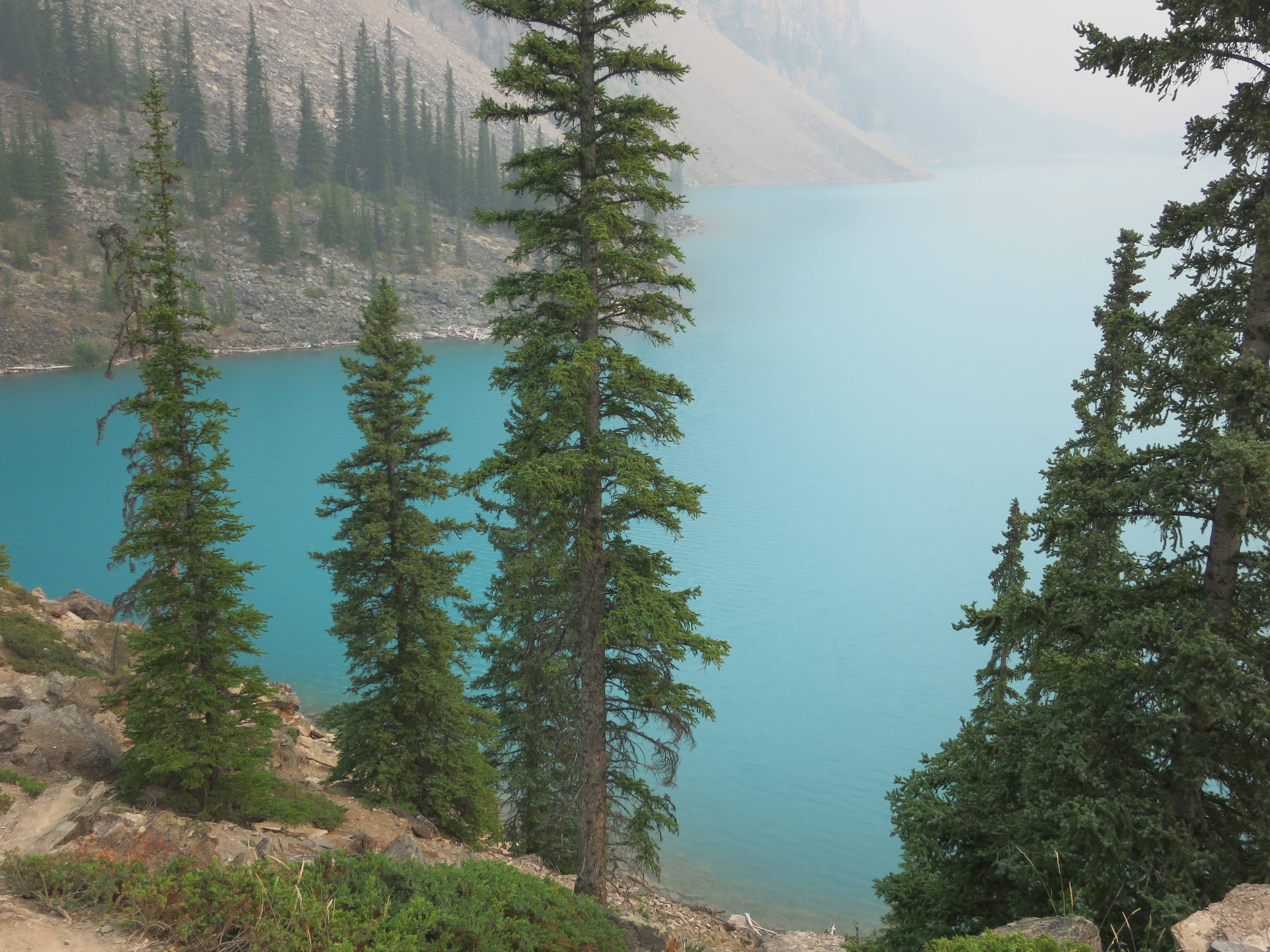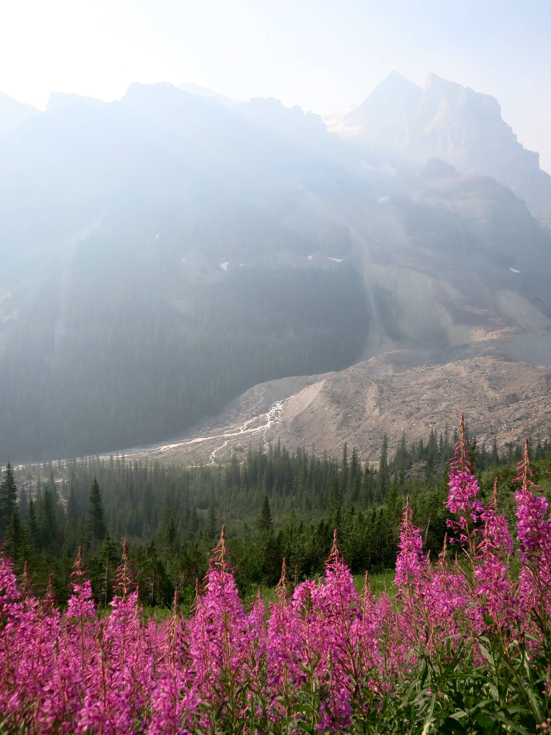 - Vous remarquerez un voile gris sur la plupart des photos de ce voyage. Il y avait beaucoup de fumée lors de notre visite, en raison des fréquents feux de forêts qui surviennent malheureusement souvent en Alberta et en Colombie-Britannique durant la saison chaude. Des résidents nous ont raconté qu’il arrive très souvent de voir ce voile gris dans le ciel l’été.