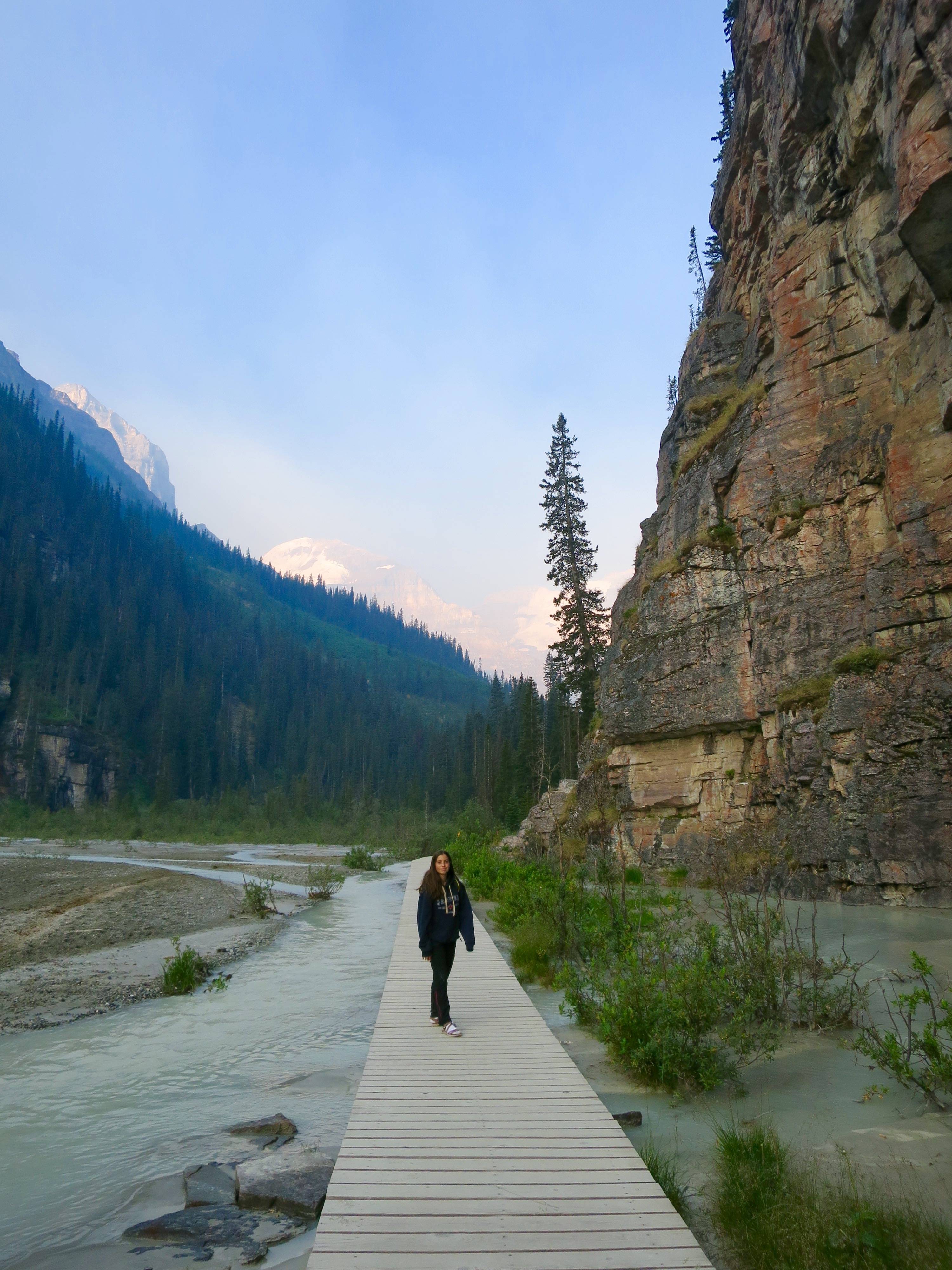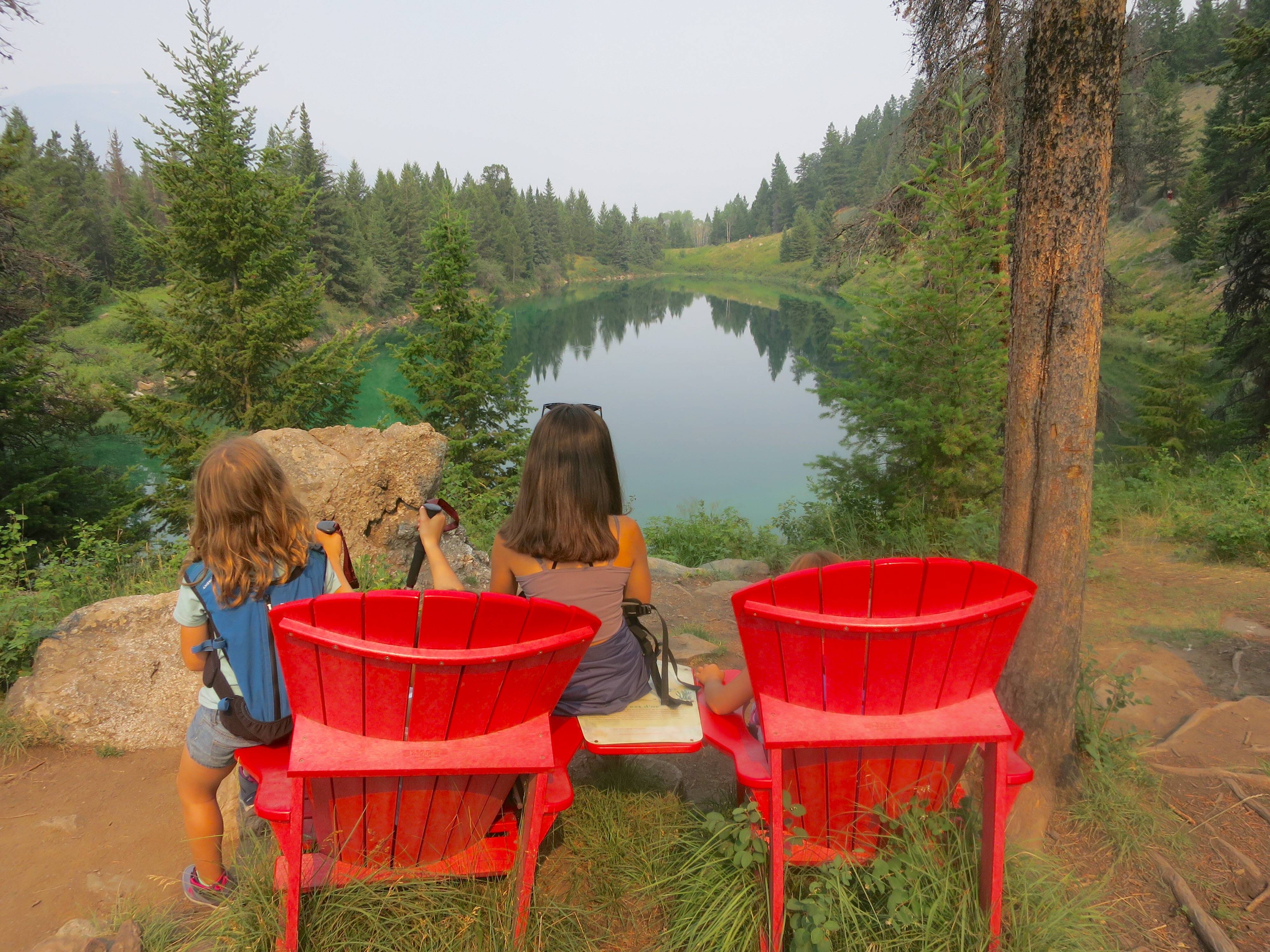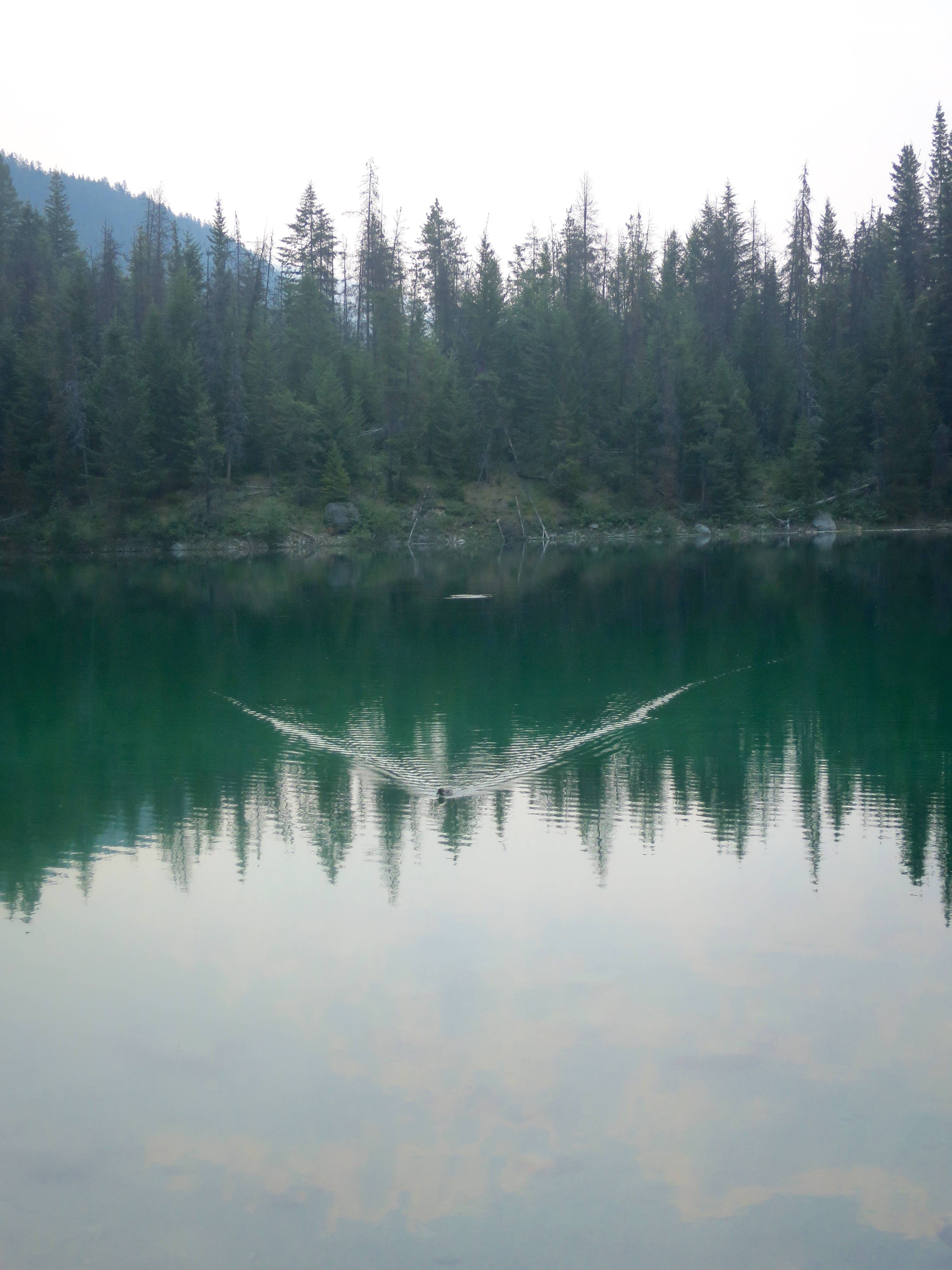 Nous avons fait l’Emerald Lake Loop. Un doux sentier d’environ 5 km sans dénivelé qui fait le tour du lac. Il faut environ 2 heures pour faire la boucle, surtout si vous ne faites pas comme nous, qui nous sommes arrêtés partout pour observer les merveilleux paysages, relaxer sur la petite plage, prendre des photos et nous baigner. Nous, ça nous a pris presque toute la journée hahaha!