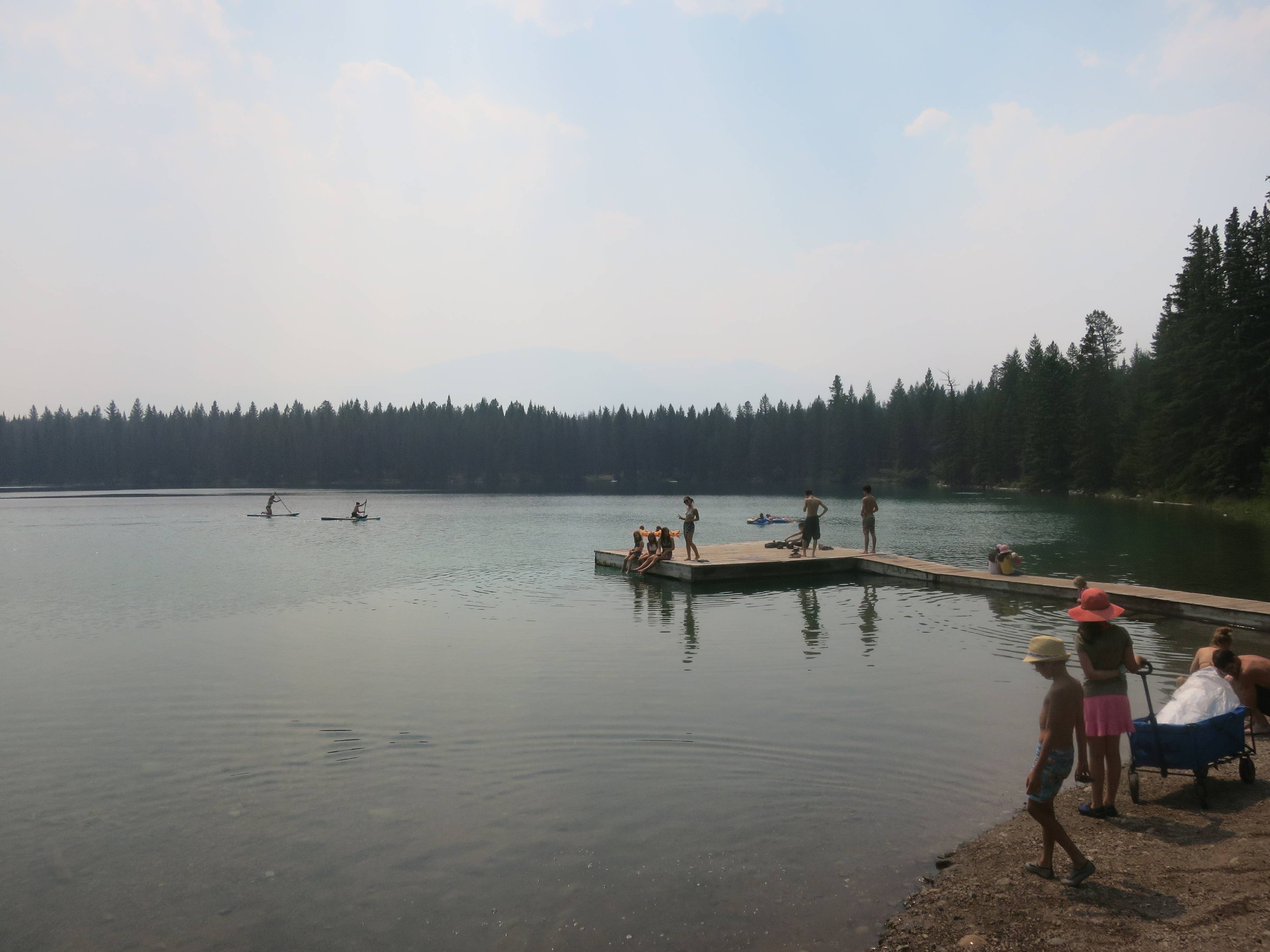 Lieu de prédilection des habitants de Jasper, le lac Annette offre une jolie plage. L’eau du lac est à environ 15-20°C, ce qui fait un des lacs les plus chauds que nous avons trouvé dans la région. La baignade est possible, à condition de ne pas être trop frileux.