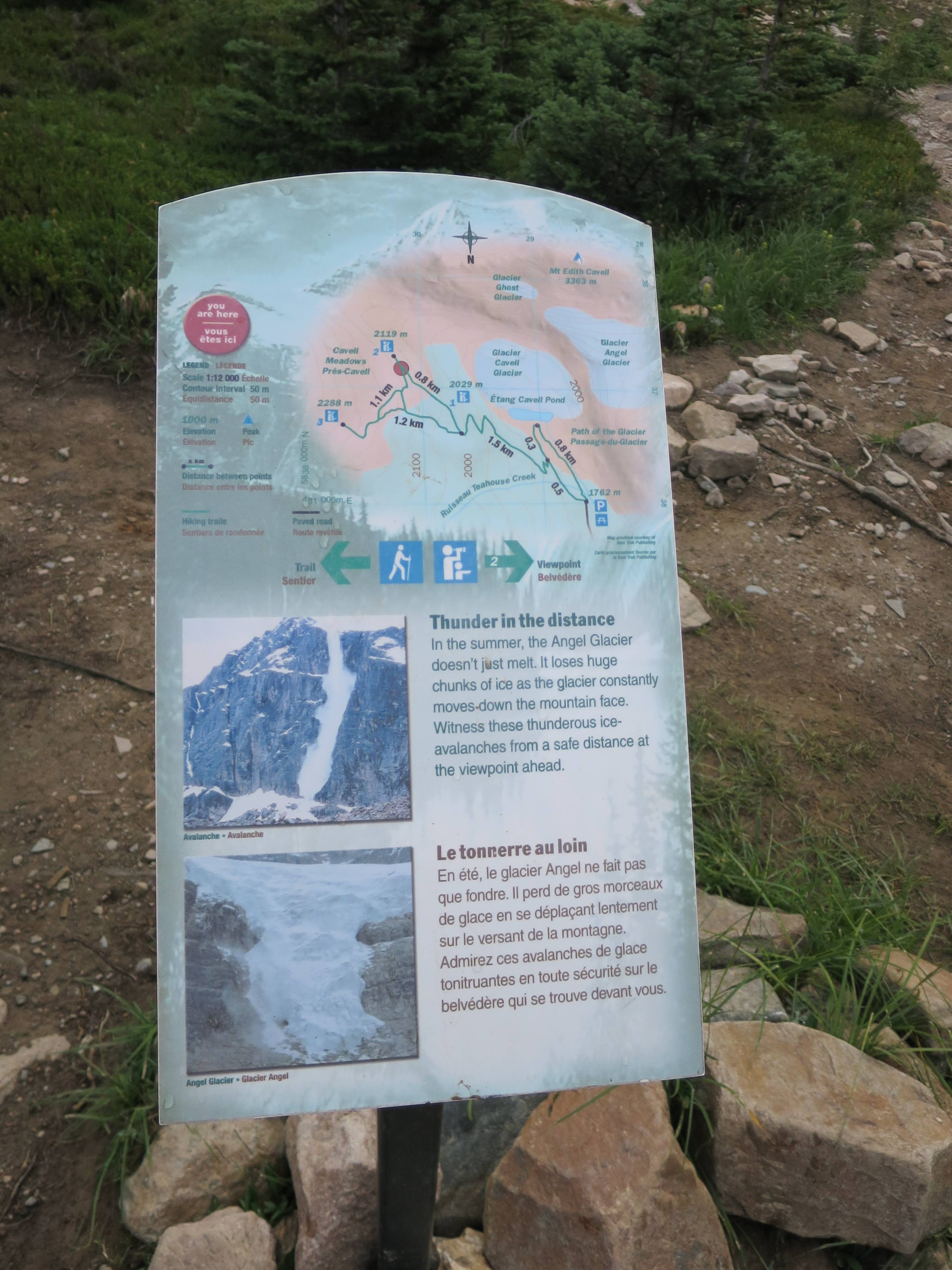 En arrivant sur le site, on a commencé par le sentier du Passage-du-Glacier, long d’un peu moins de 1,5 km, qui permet de se rapprocher du glacier Angel.