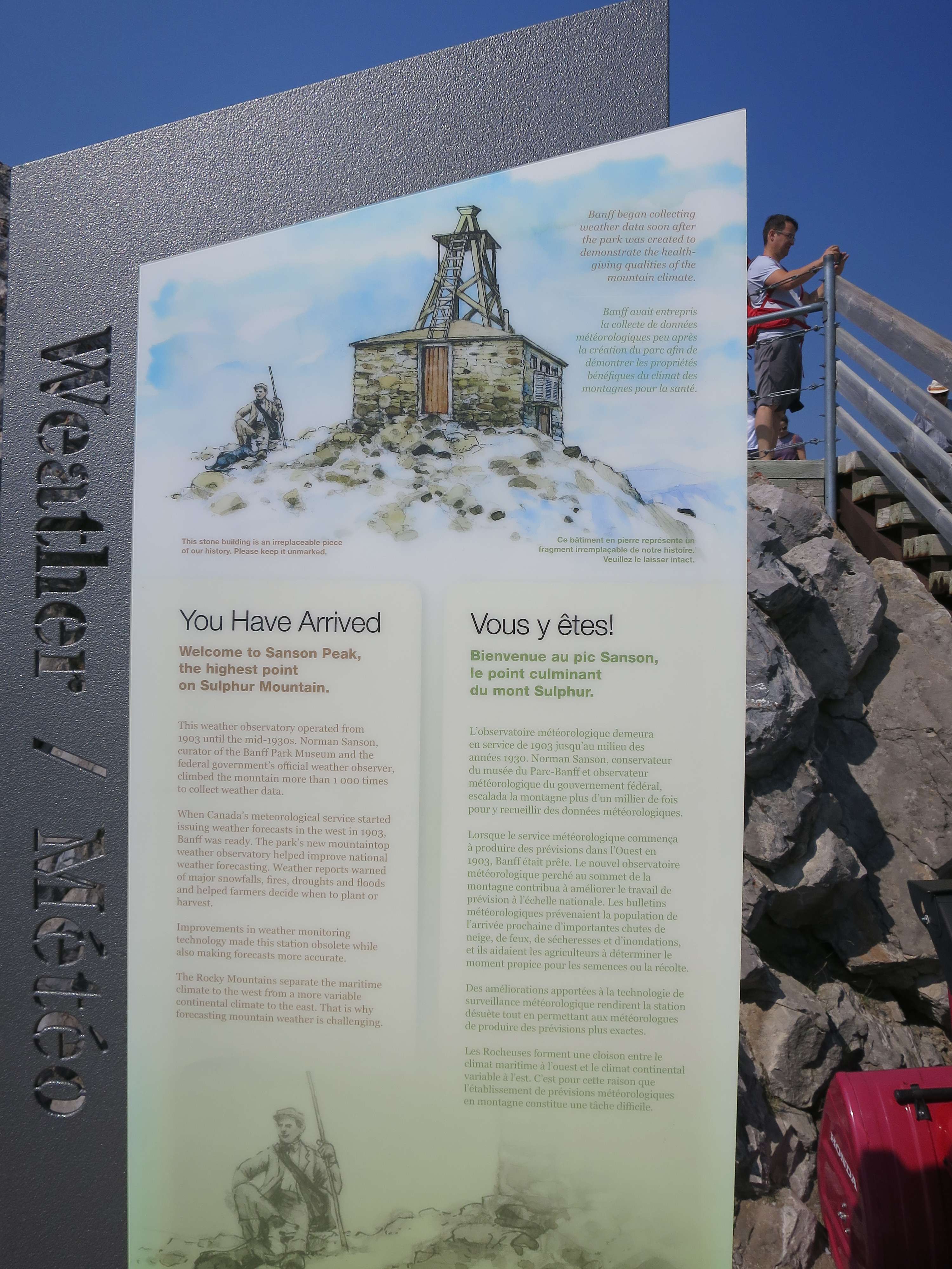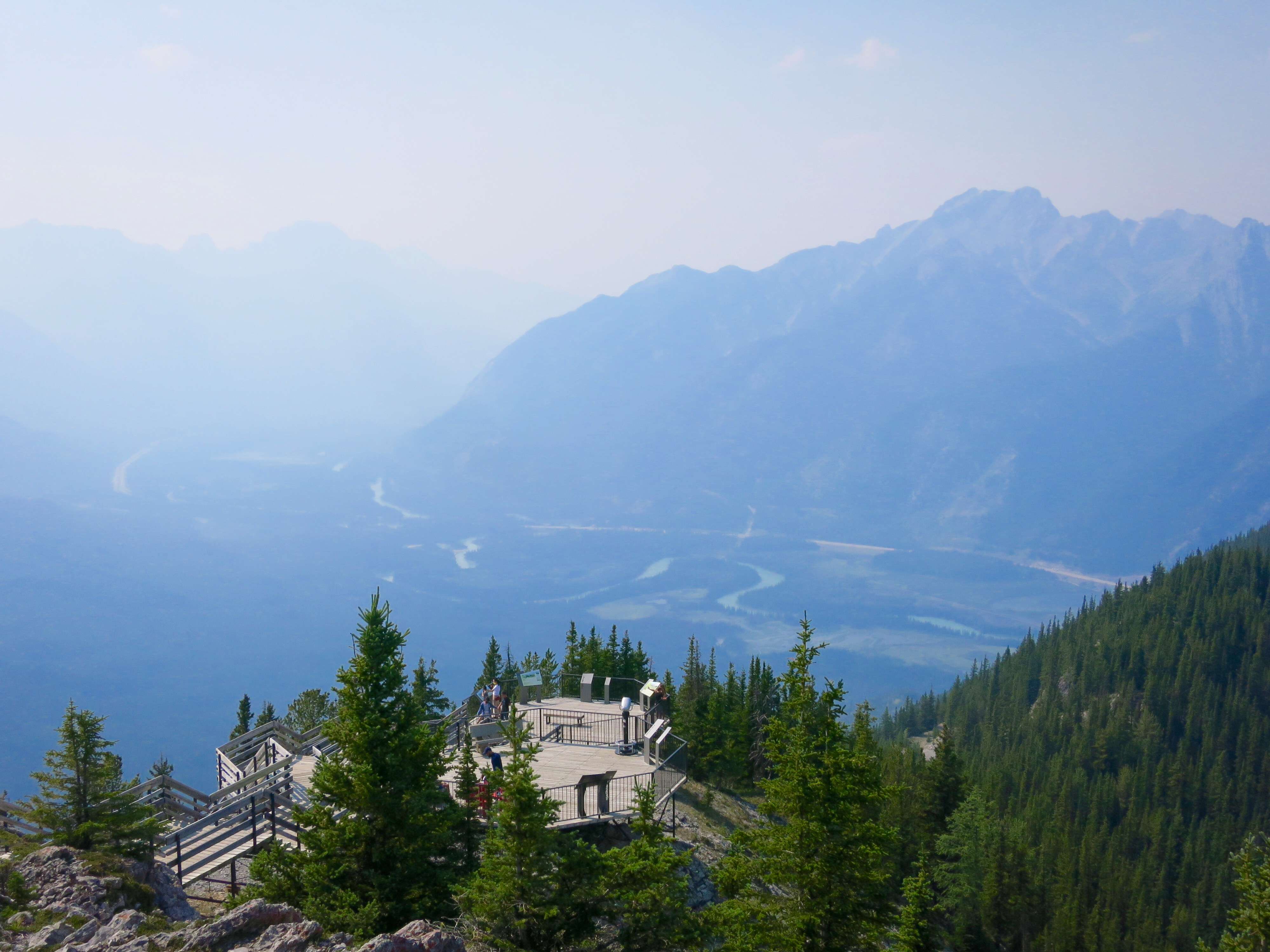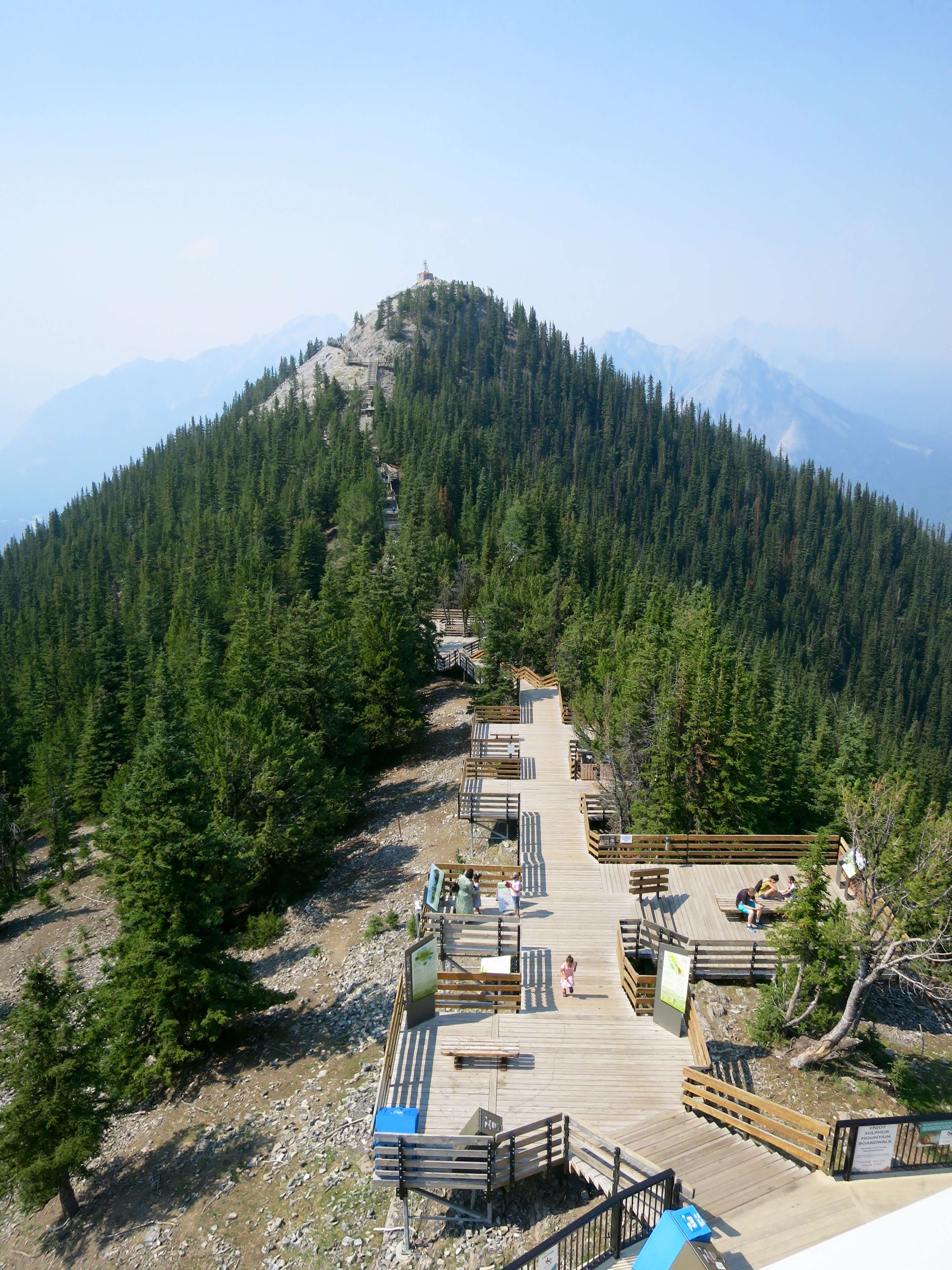 Tout en haut, des passerelles permettent d’observer différents points de vue sur une longueur totale d’1 km et de voir l’ancienne station d’étude des rayons cosmiques. Superbe panorama sur Banff.
