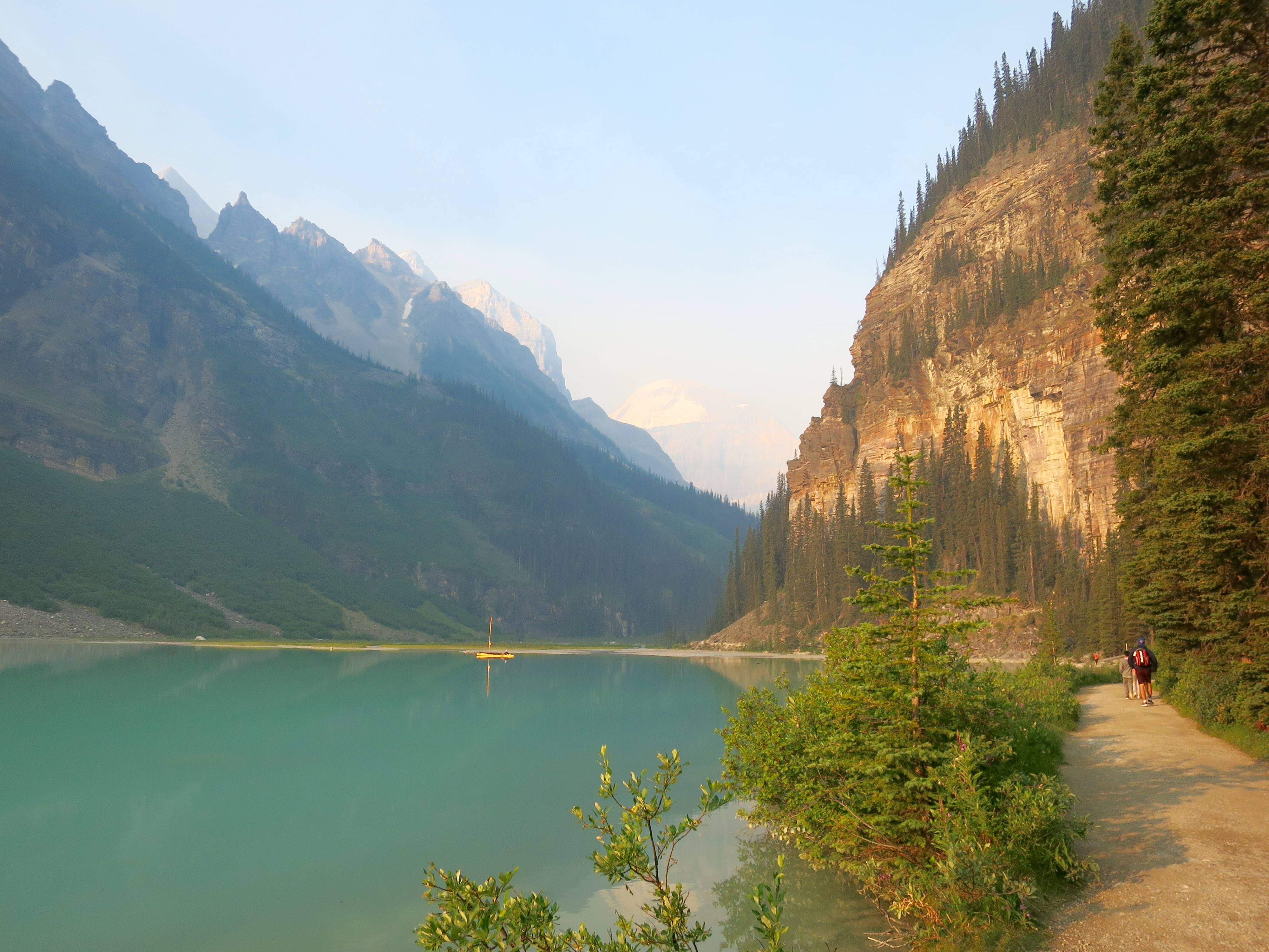 Bien que le site soit très touristique et pris d’assaut dès les premières heures du matin, sachez que la plupart des visiteurs restent aux abords du lac, tout proche du parking. Très peu marchent dans les sentiers et prennent de la hauteur pour découvrir le lac et son environnement…Dommage, car une fois passé le Fairmont, des paysages incroyables ne cessent de nous éblouir.