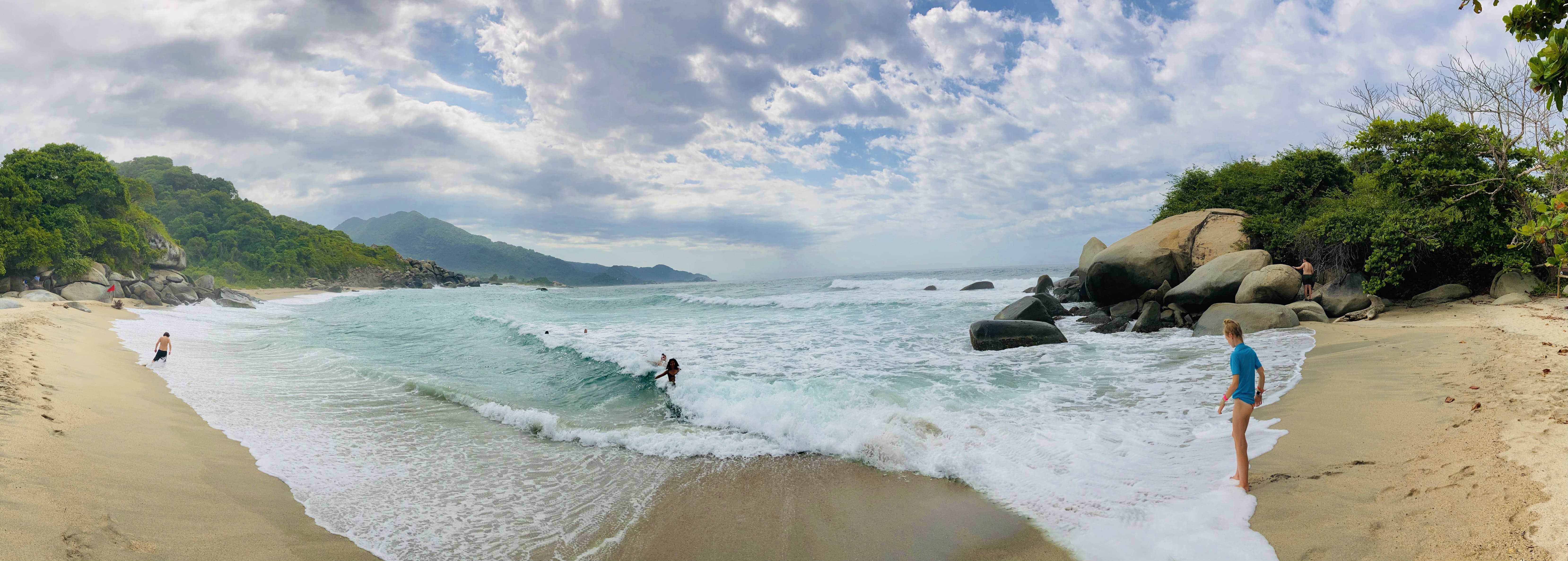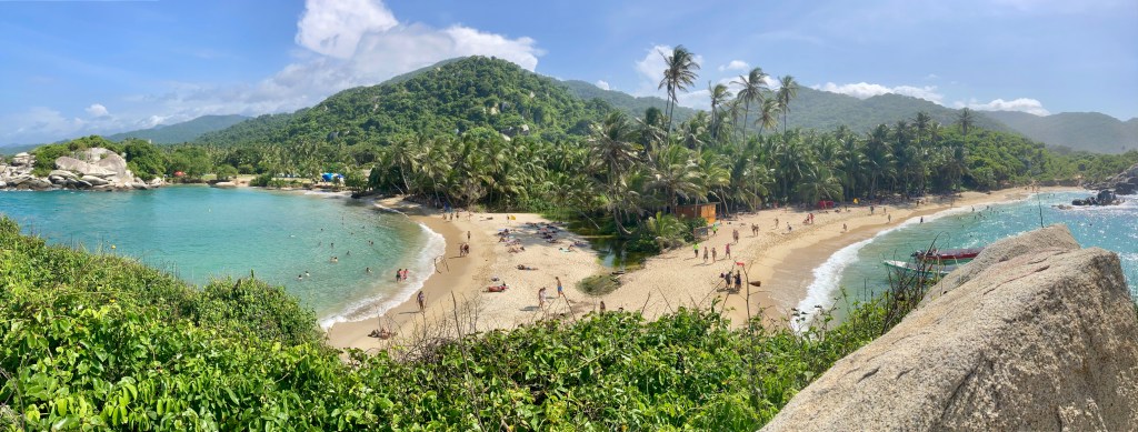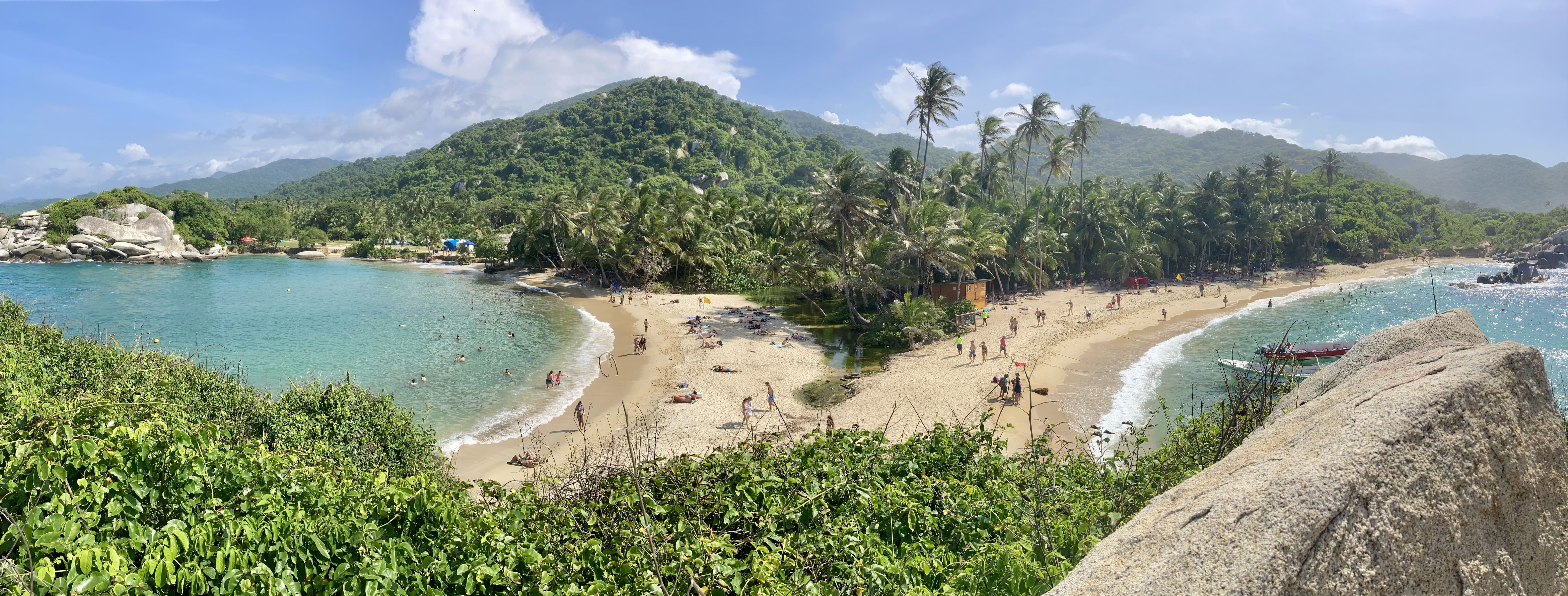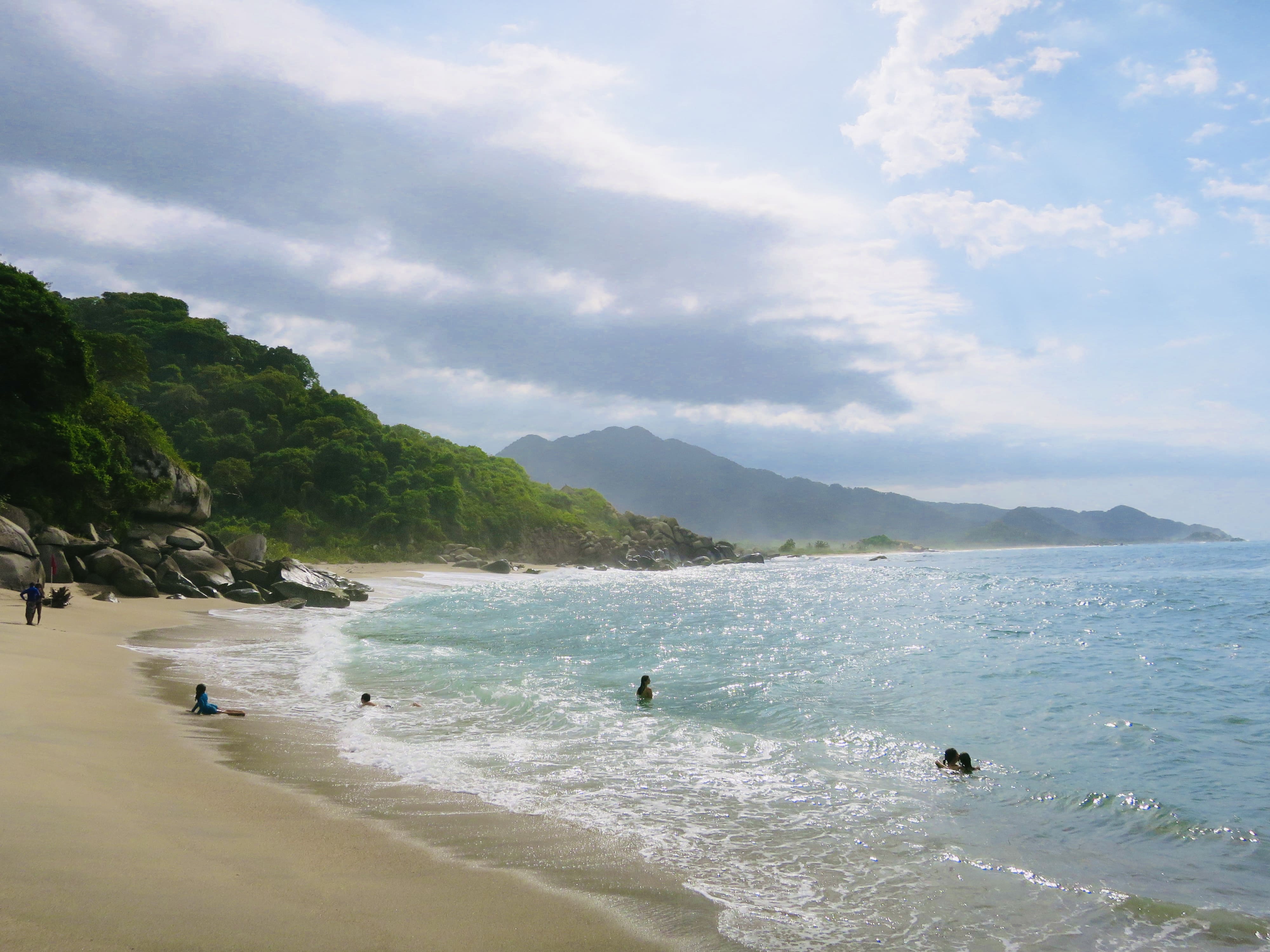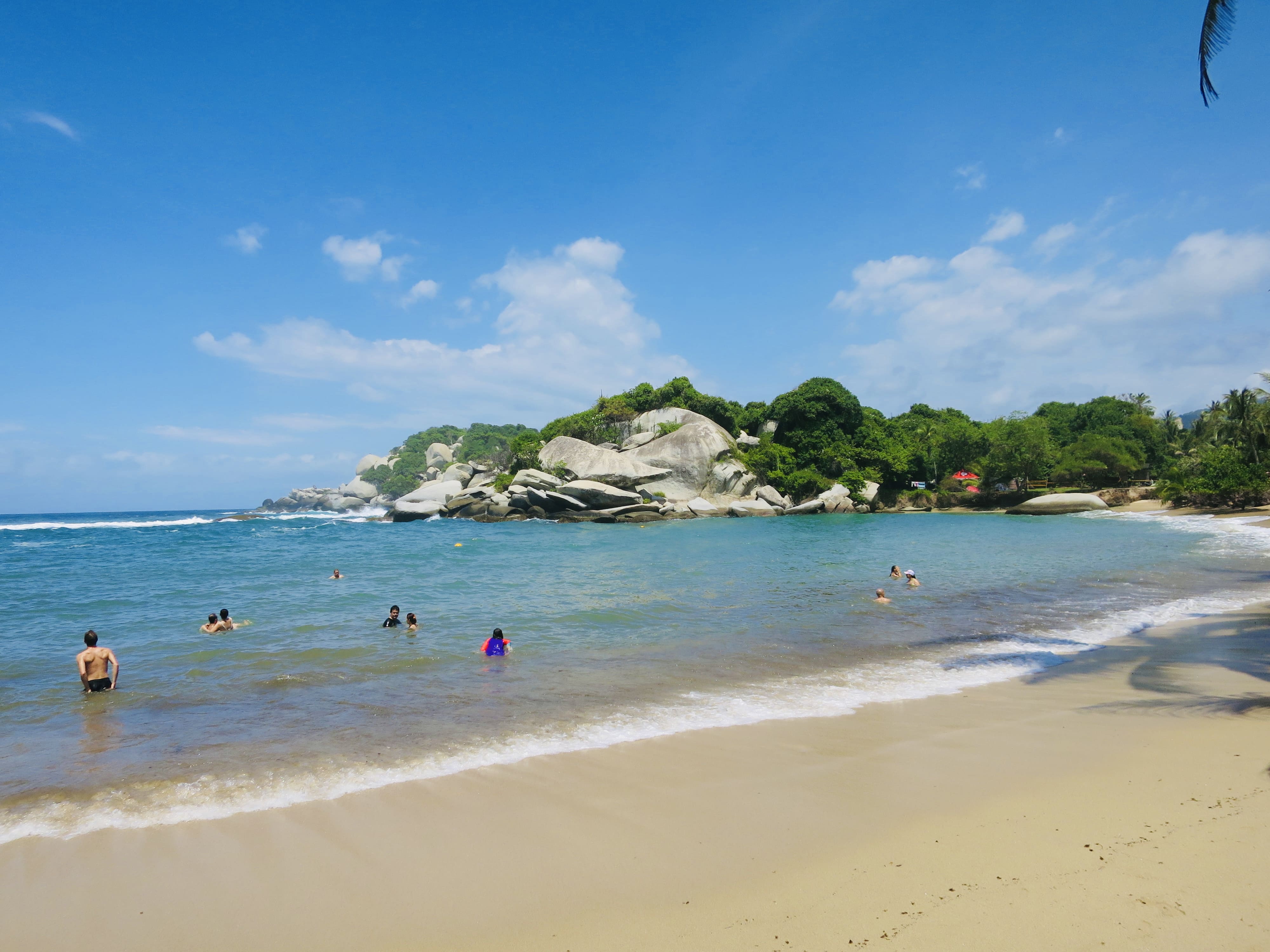 C’est la première plage à l’entrée du parc Tayrona. Elle est immense et magnifique, offrant des vues spectaculaires sur l’océan. Cependant, en raison des forts courants, la baignade y est interdite pour des raisons de sécurité.