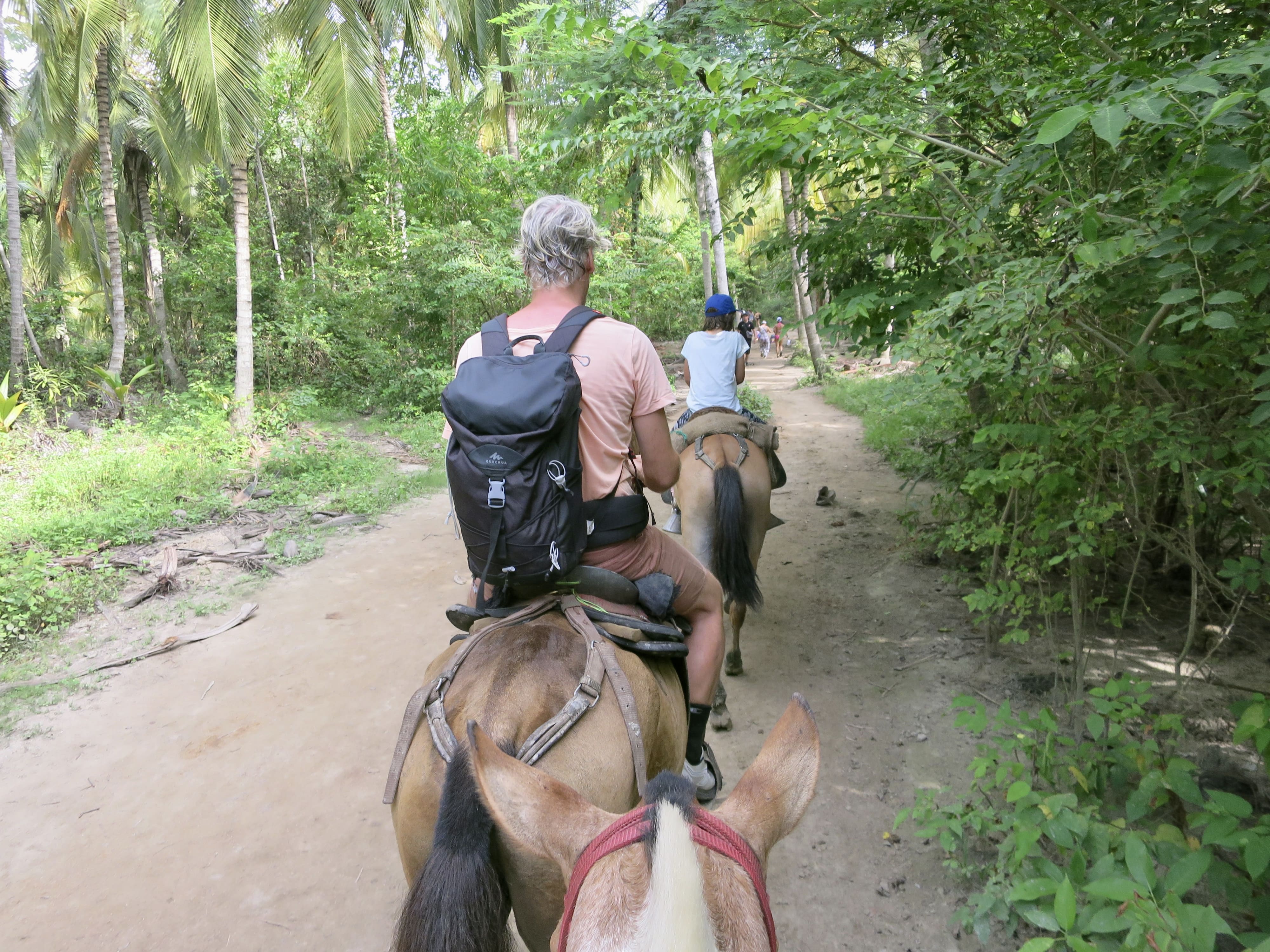 Cependant, comme toute belle chose en Colombie, le parc de Tayrona se mérite😂! S’étendant sur 15 000 hectares, il est pratiquement interdit aux véhicules motorisés, à l’exception de la navette qui transporte les visiteurs de l’entrée aux premiers sentiers. Pour explorer le parc, il faut uniquement compter sur la force des mollets ou sur les sabots des chevaux.