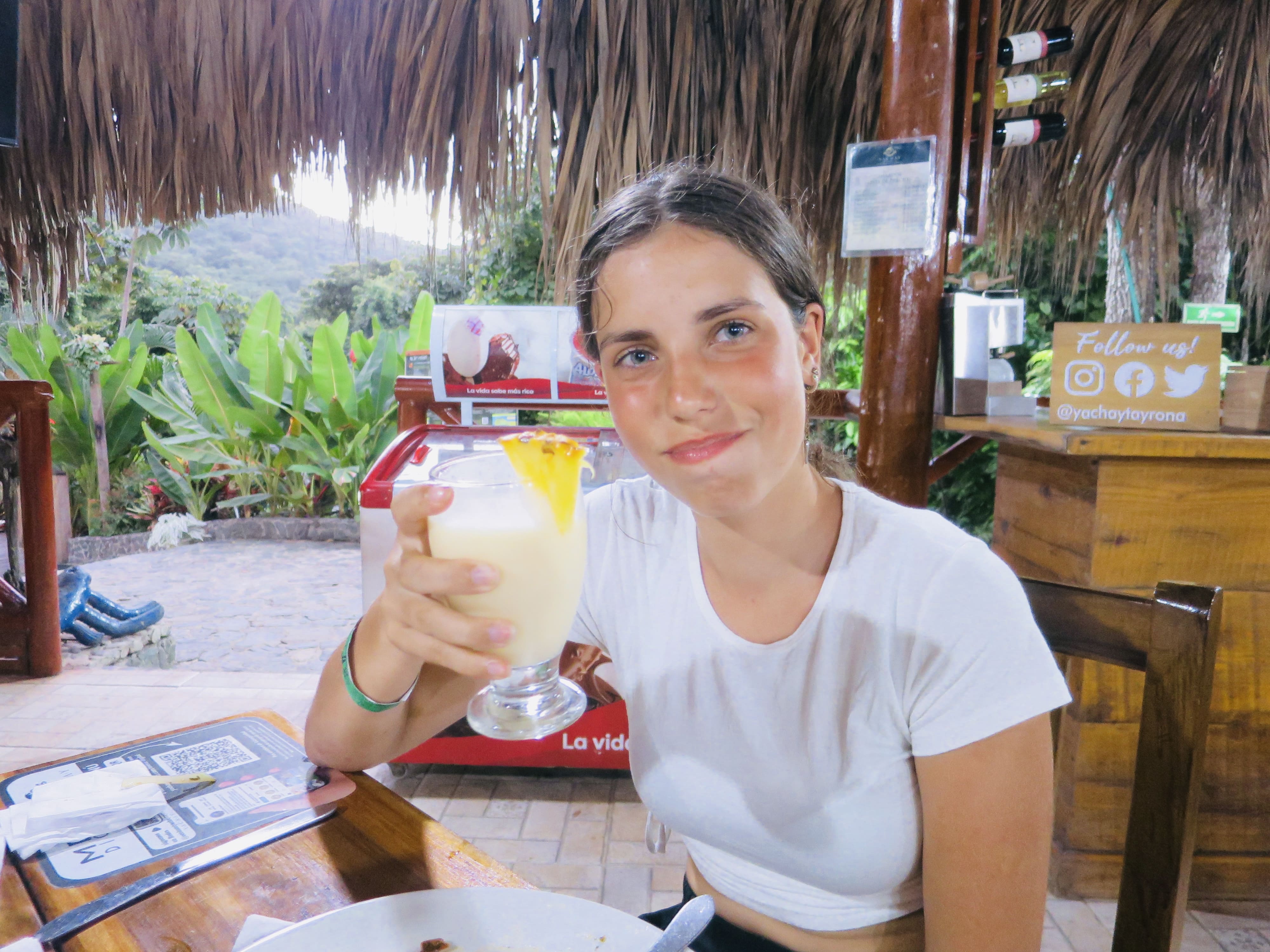 On fait le plein d’énergie avec un bon souper aux fruits de mer et un délicieux jugo de piña natural (les jus de fruits sont exceptionnels partout en Colombie!)