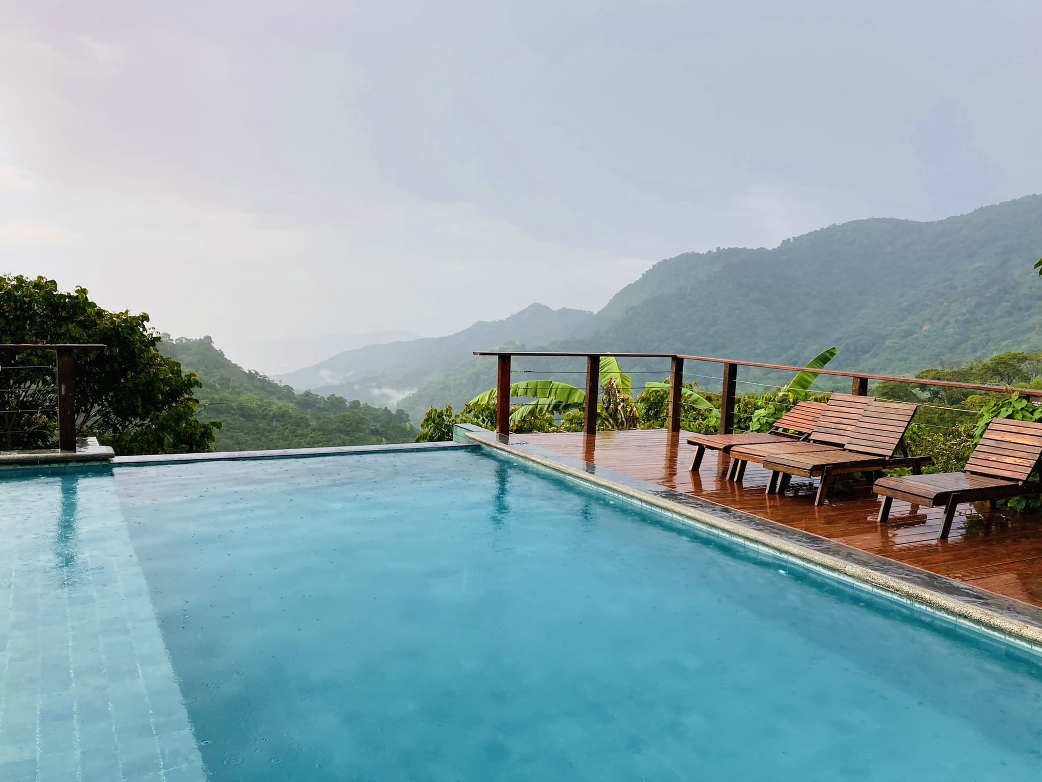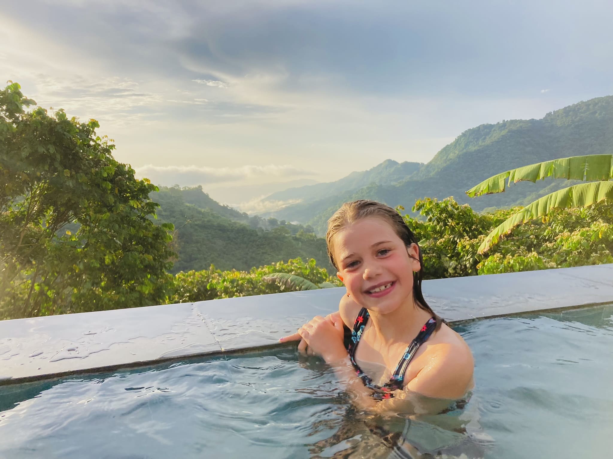 Mais une fois arrivés là-haut, nous avons découvert un petit paradis de coolitude! La vue est imprenable, la piscine magnifique et les gens de l’hôtel (employés et clients) sont les plus relax du monde. Nous ne descendrons de là que dans deux jours🙃.