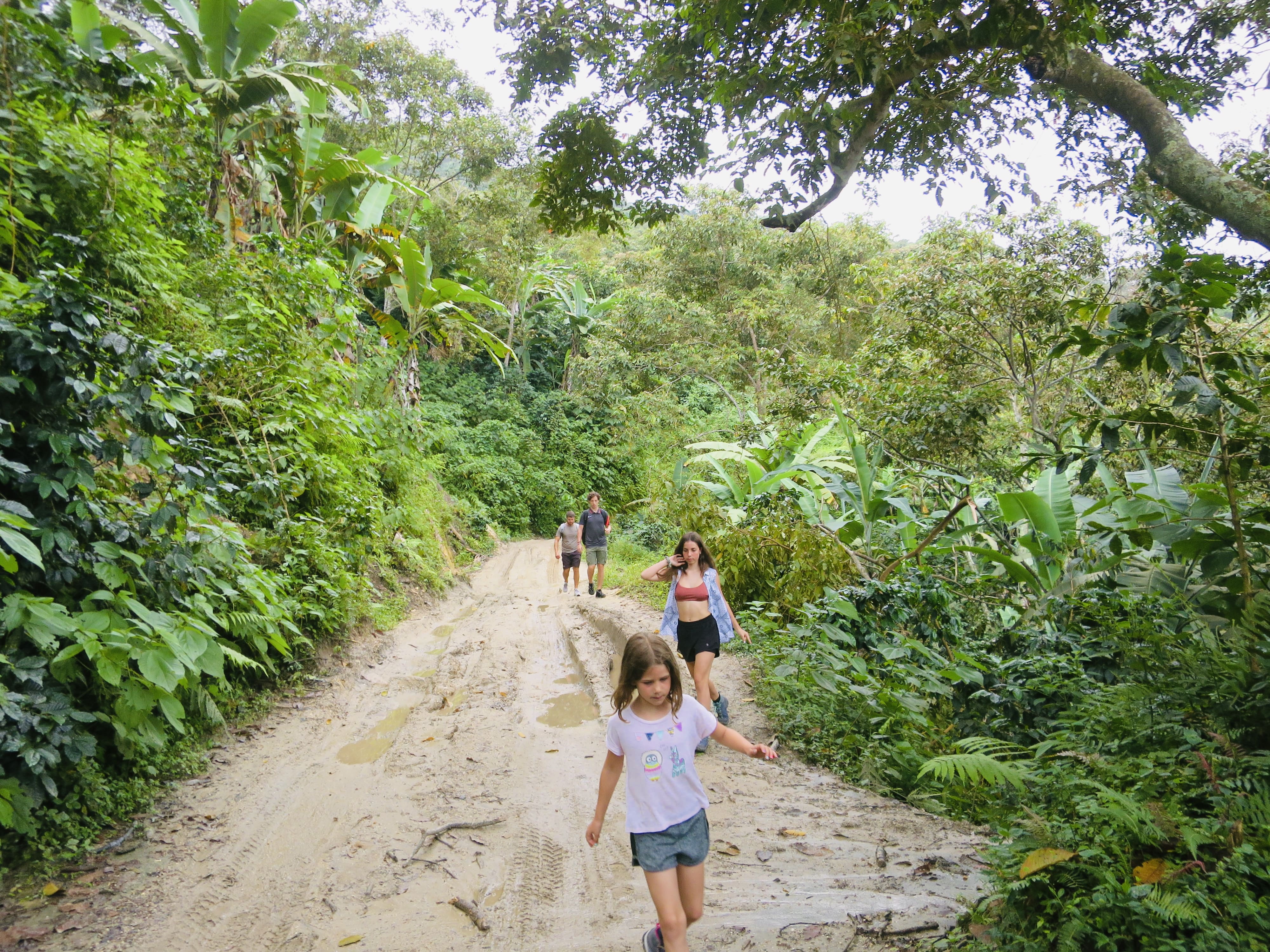 Pour y accéder, il nous a été recommandé de réserver un 4×4, et nous avons vite compris pourquoi! Non seulement Casas Viejas est perchée très haut et bien isolée dans la montagne, mais le chemin pour y arriver était le plus boueux que nous ayons jamais vu (et pourtant, nous commençons à avoir de l’expérience en matière de chemins boueux). Pendant 30 minutes, nous nous sommes demandé si nous n’allions pas rester coincés dans les cratères géants du chemin ou si le conducteur n’allait pas brûler ses pneus en tentant d’escalader la route vertigineuse. Déjà une aventure! Les Colombiens ne sont pas peureux!