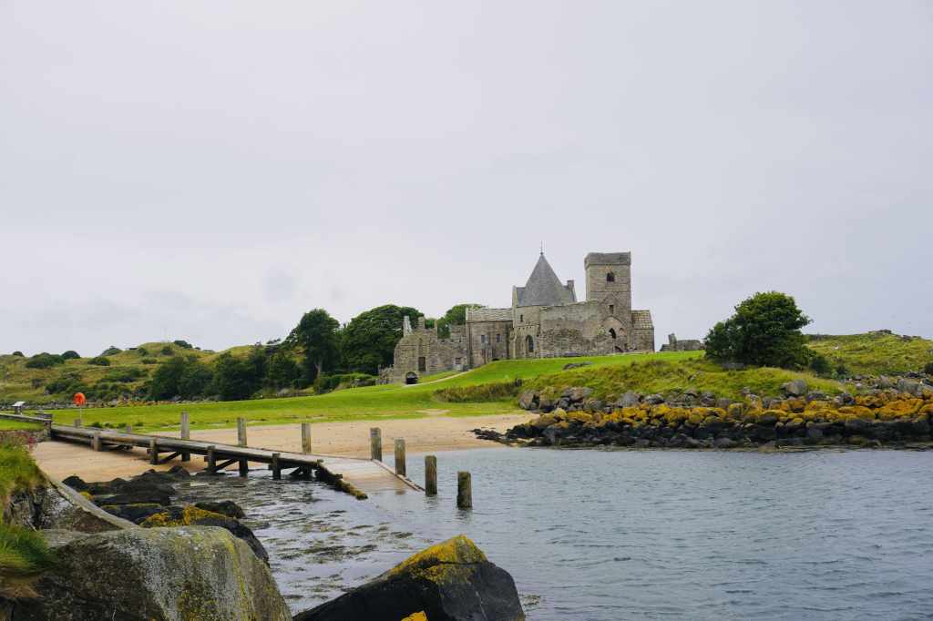 On arrive à l’Île d’Incholm, située dans l’estuaire du Forth, par un traversier que l’on emprunte à South Queensferry, à 15 km d’Édimbourg. On se croirait perdus au milieu de nulle part sur cette minuscule île de 800 m de long, frappée par le vent et habitée par des milliers d’oiseaux.