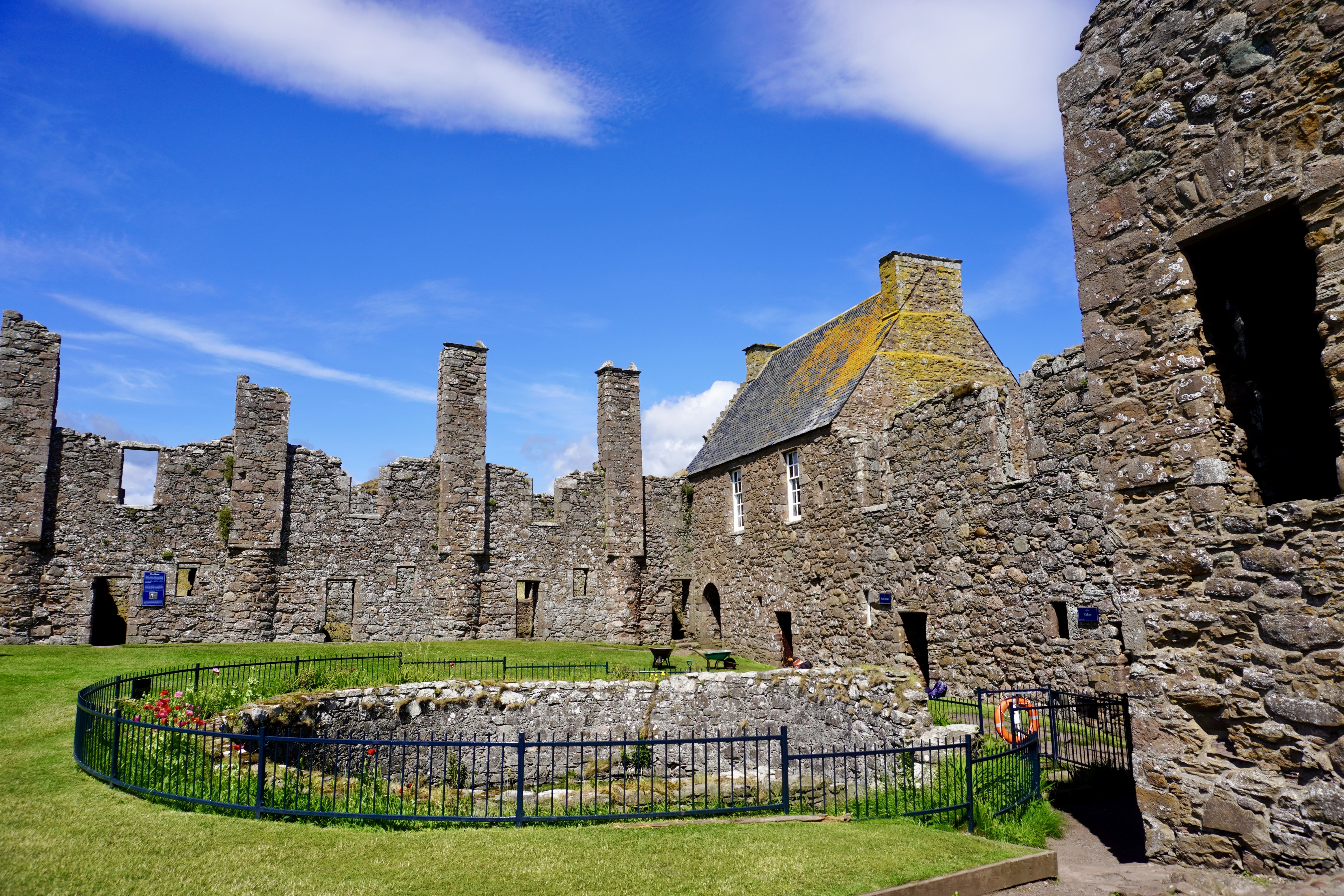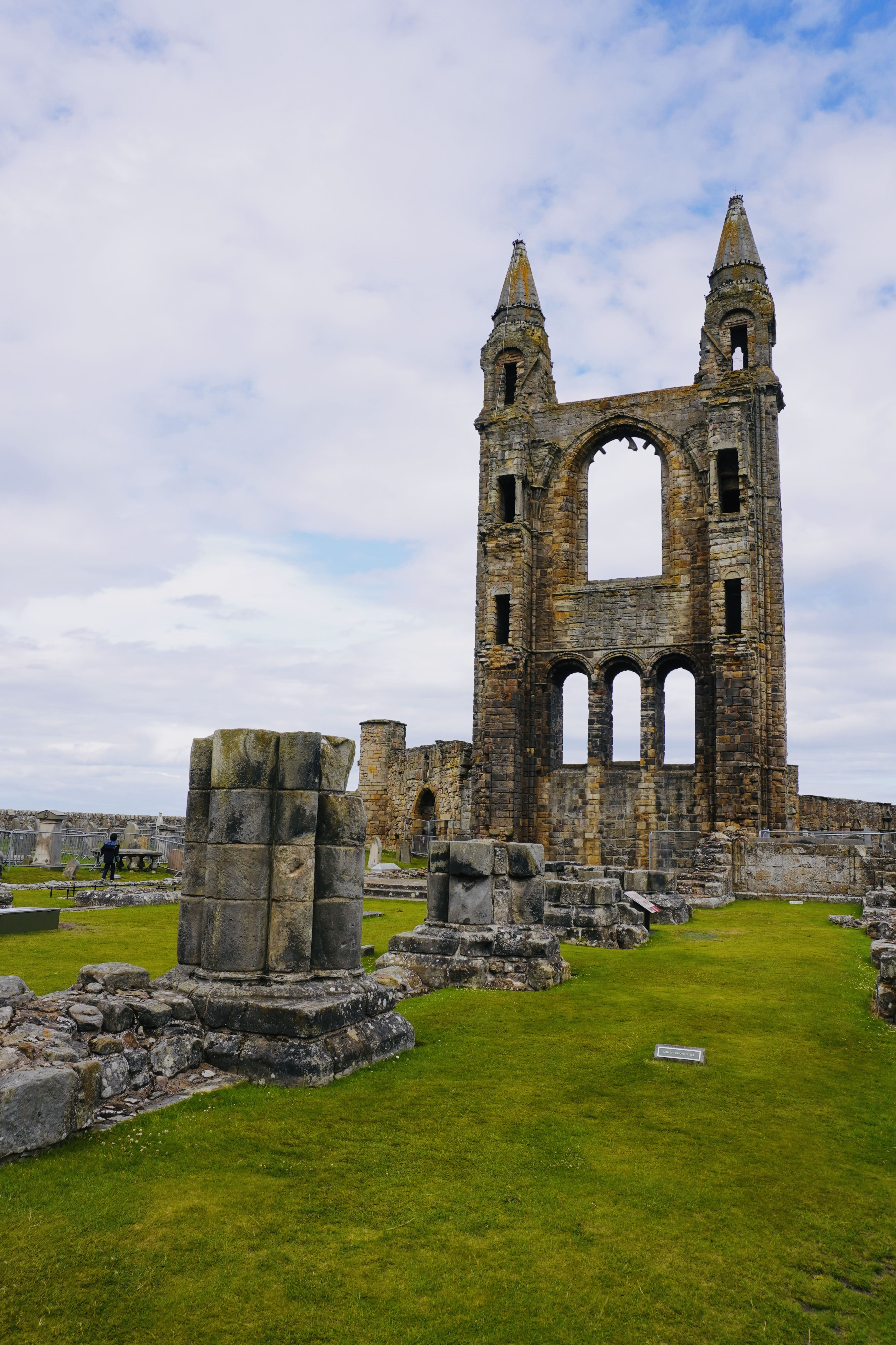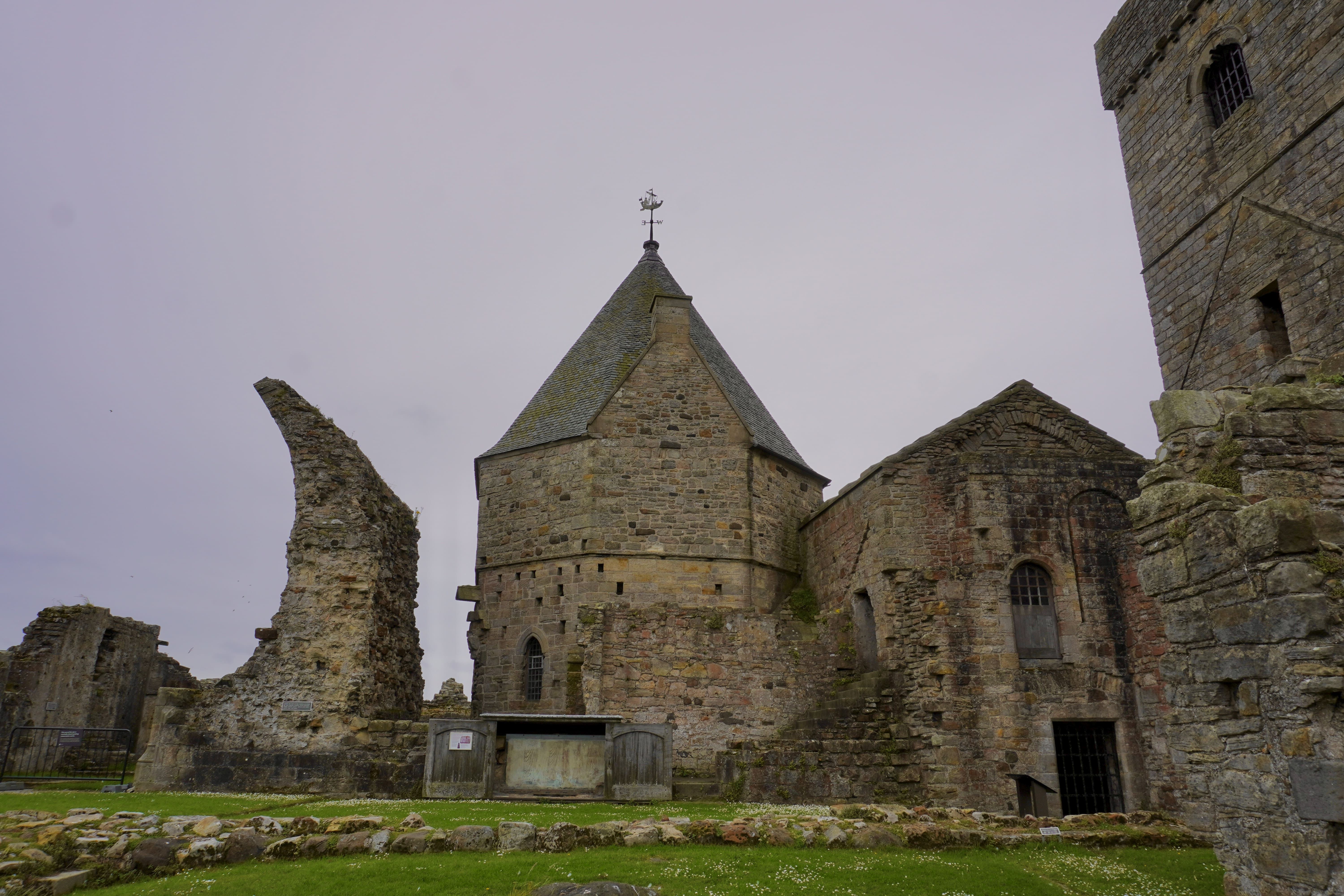 Les ruines de l’ancienne cathédrale dominent le paysage. Construite au XIIe siècle, elle fut autrefois la plus grande cathédrale d’Écosse, un centre religieux majeur pendant des siècles. Après la Réforme protestante, elle a peu à peu été abandonnée, jusqu’à tomber en ruine. Aujourd’hui, il ne reste que des pans de murs et des colonnes qui se dressent face à la mer, mais l’ensemble est impressionnant, presque mystique.