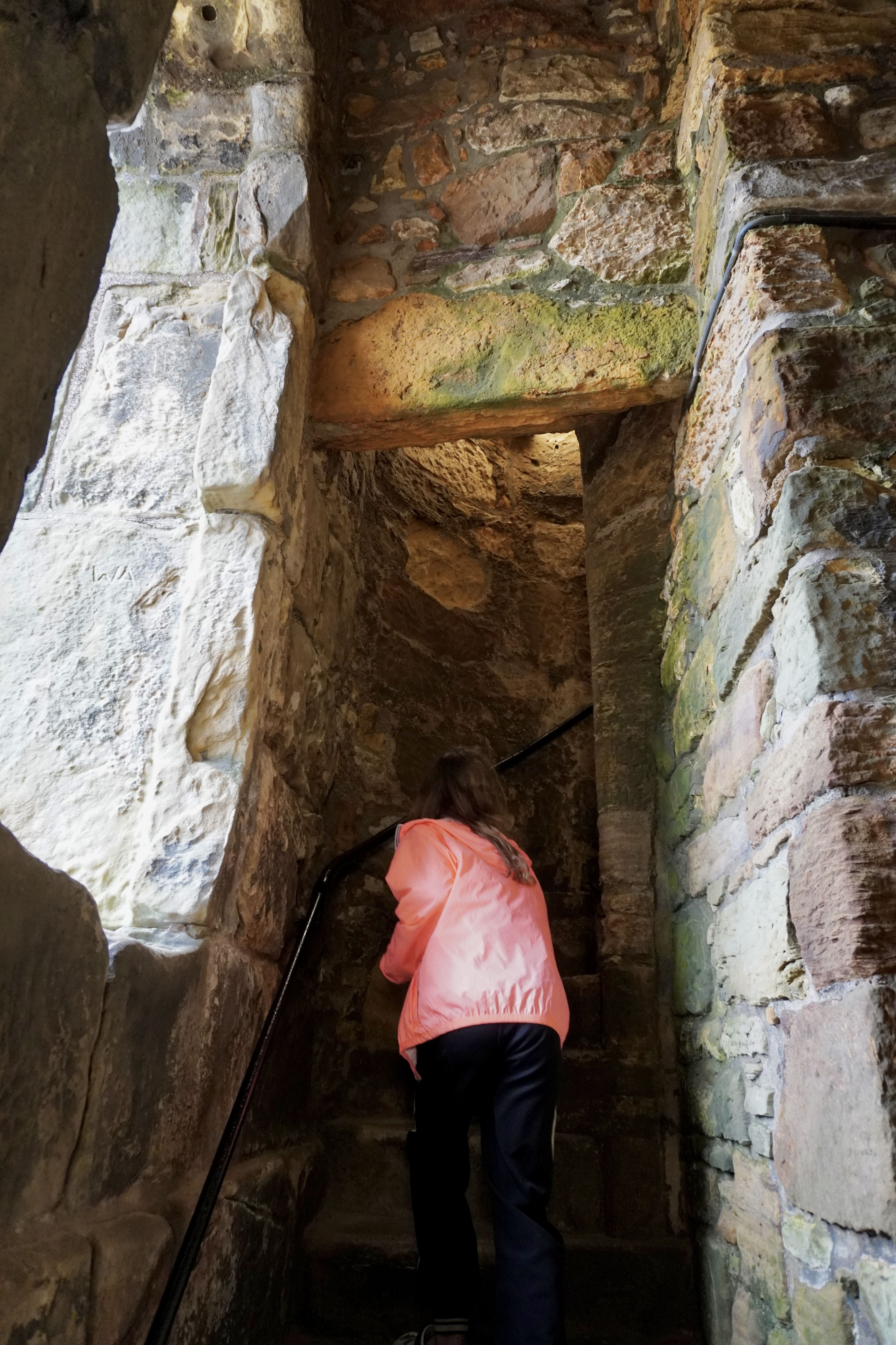 Juste à côté, on est montés en haut de la tour médiévale de St Rule, qui date du XIe siècle. La montée est un peu raide, mais la vue en vaut la peine : on surplombe toute la baie de St Andrews, avec ses falaises, ses toits en pierre et l’horizon qui s’étire sur la mer du Nord.