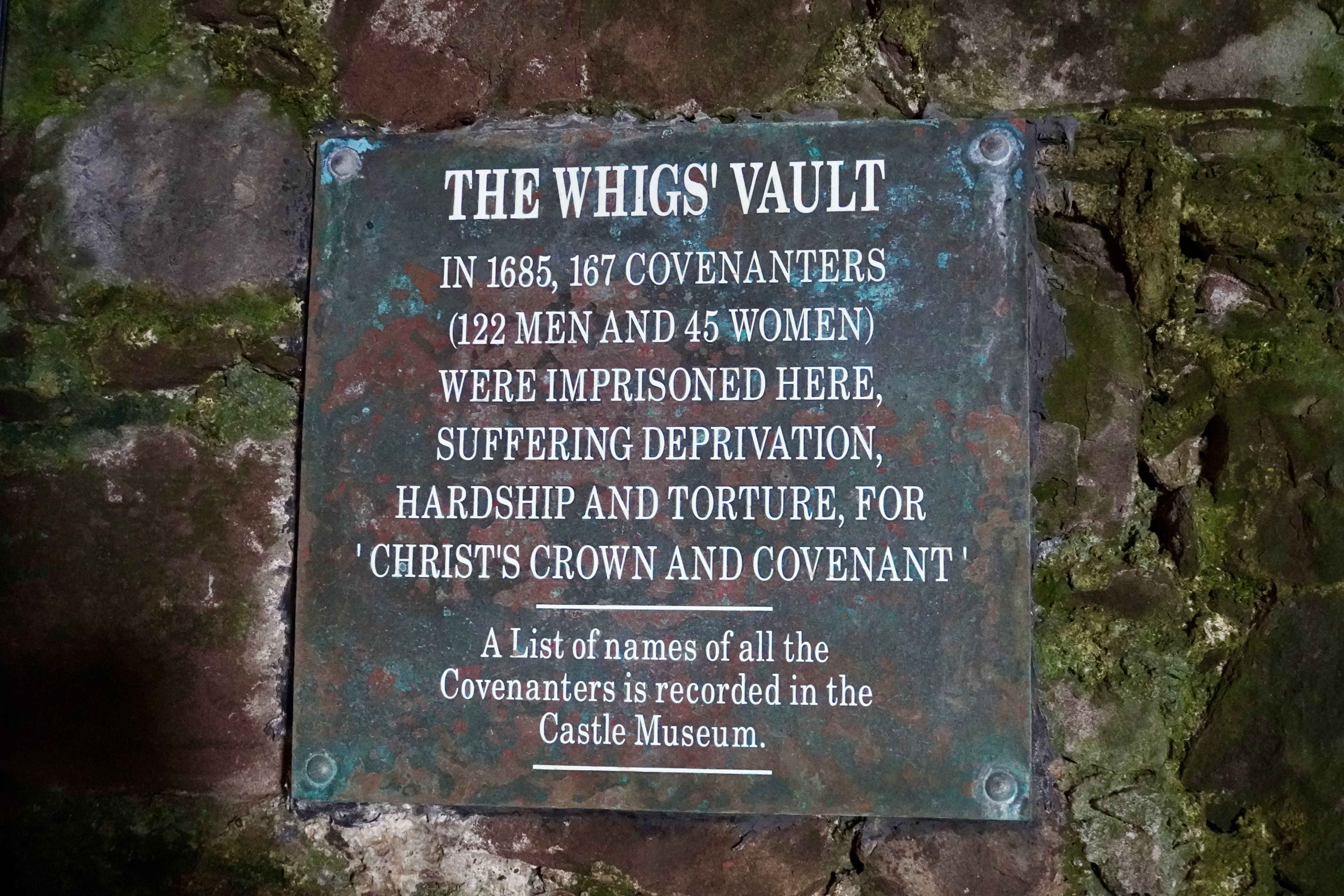Une autre page sombre de son histoire concerne The Whigs’ Vault, une cave où plus d’une centaine de Covenanters — des protestants opposés à l’autorité religieuse imposée par le roi — ont été enfermés dans des conditions très dures en 1685. Craignant une rébellion dans le sud de l’Écosse, les autorités ont transféré ces prisonniers depuis Édimbourg jusqu’à Dunnottar, dans des conditions très difficiles. Ils ont été enfermés dans une cave étroite et humide du château, aujourd’hui connue sous le nom de The Whigs’ Vault.