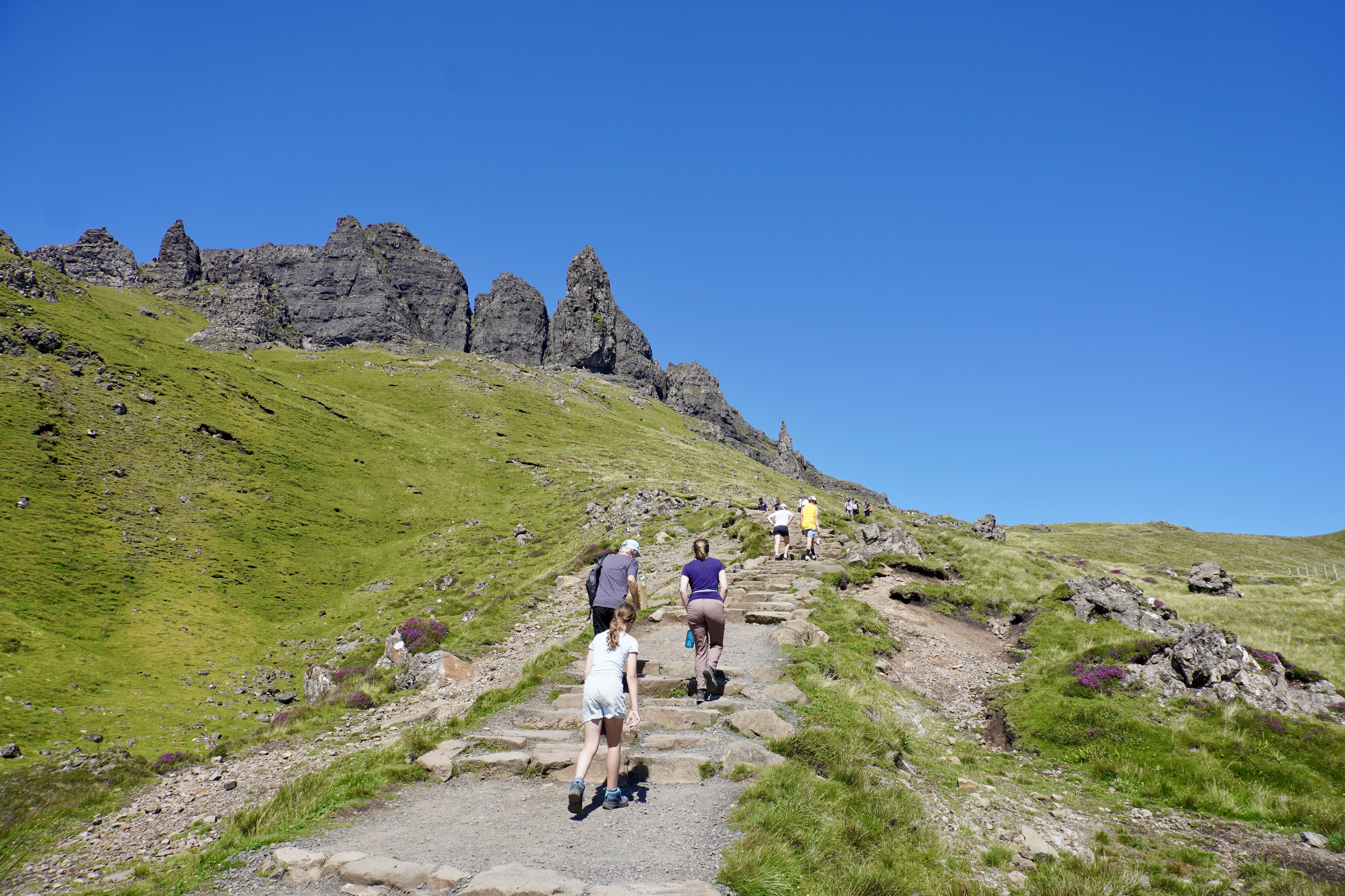 La première journée, direction la péninsule de Trotternish. On a commencé par la randonnée du Old Man of Storr, sans doute l’une des plus connues de l’île.