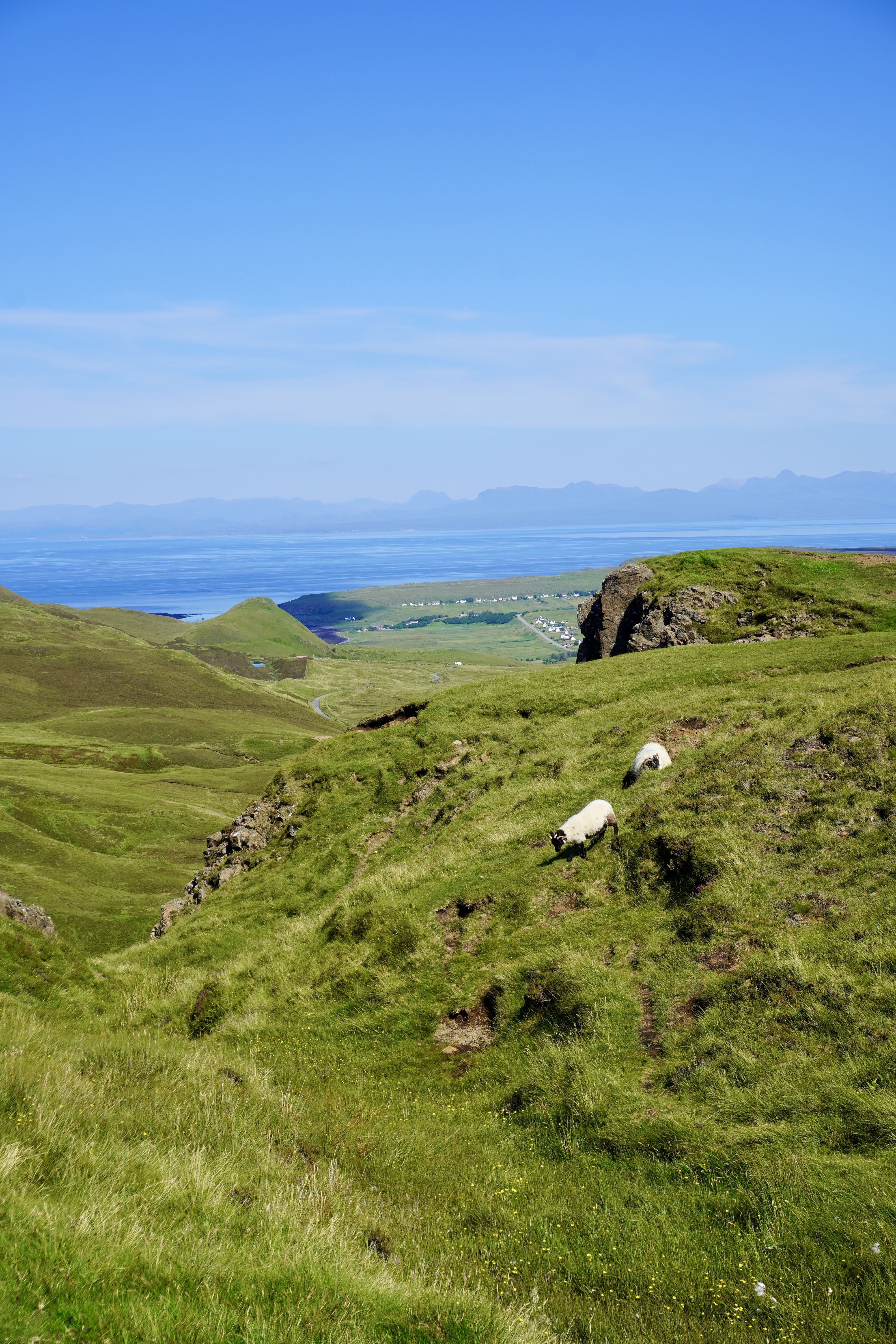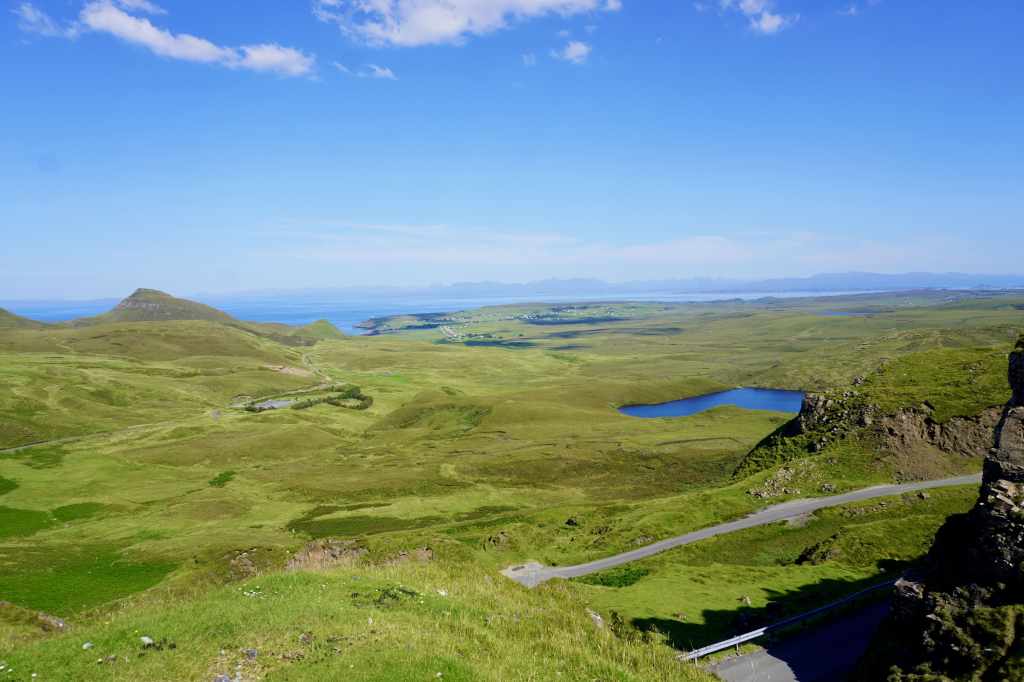 Après un bon repas au Hungry Gull — une petite adresse sympathique et chaleureuse — on a repris la route vers Quiraing, dans la baie de Staffin.
