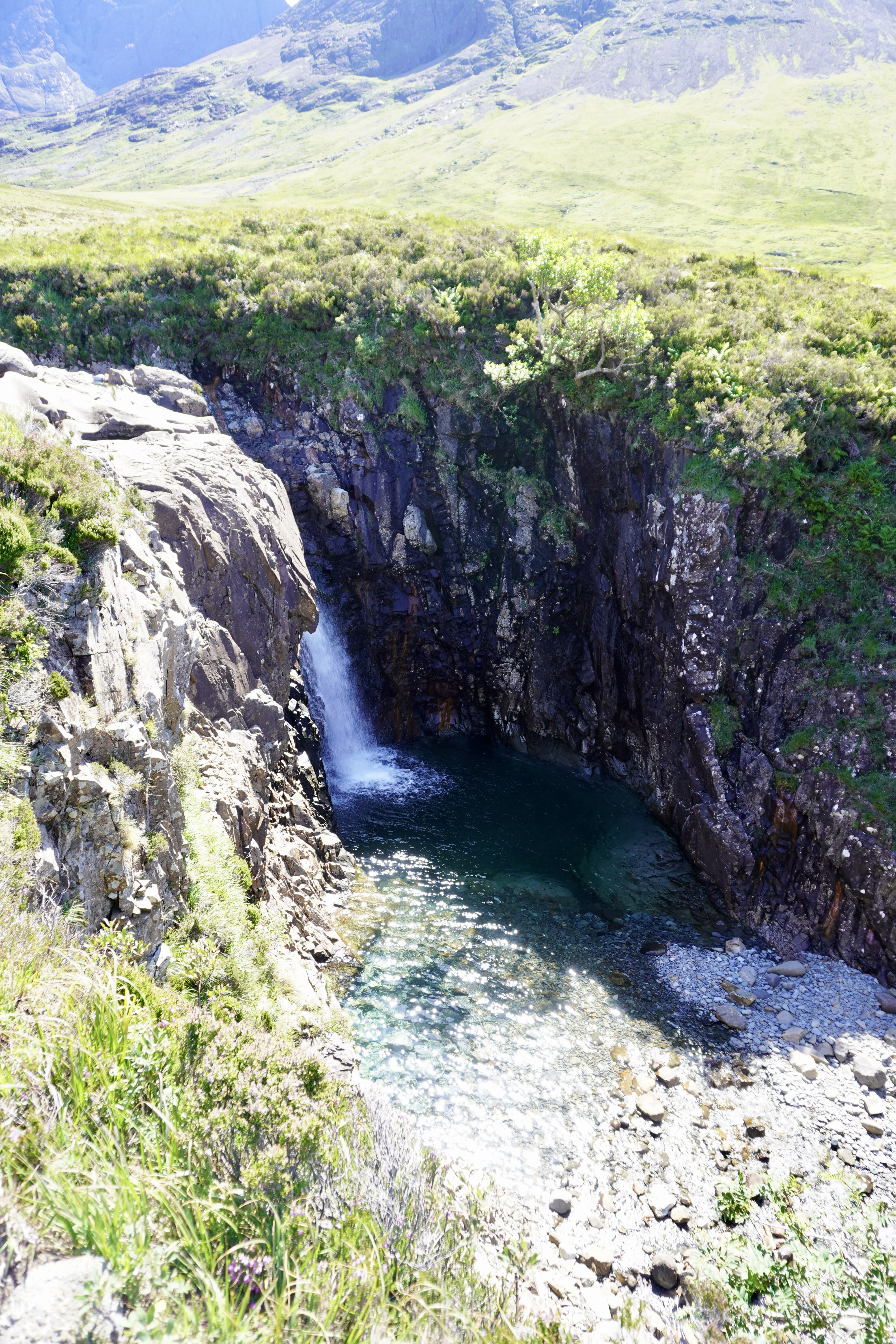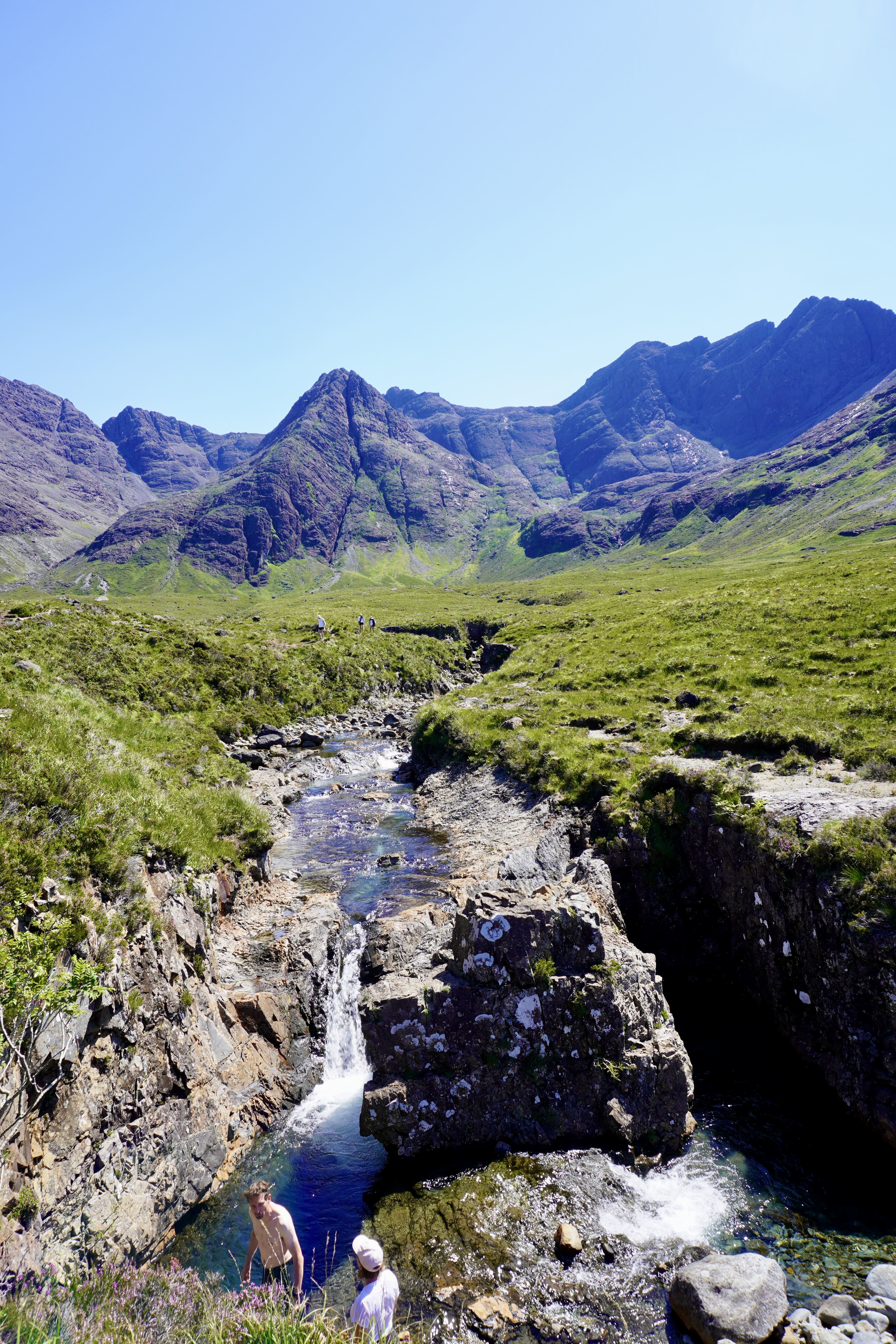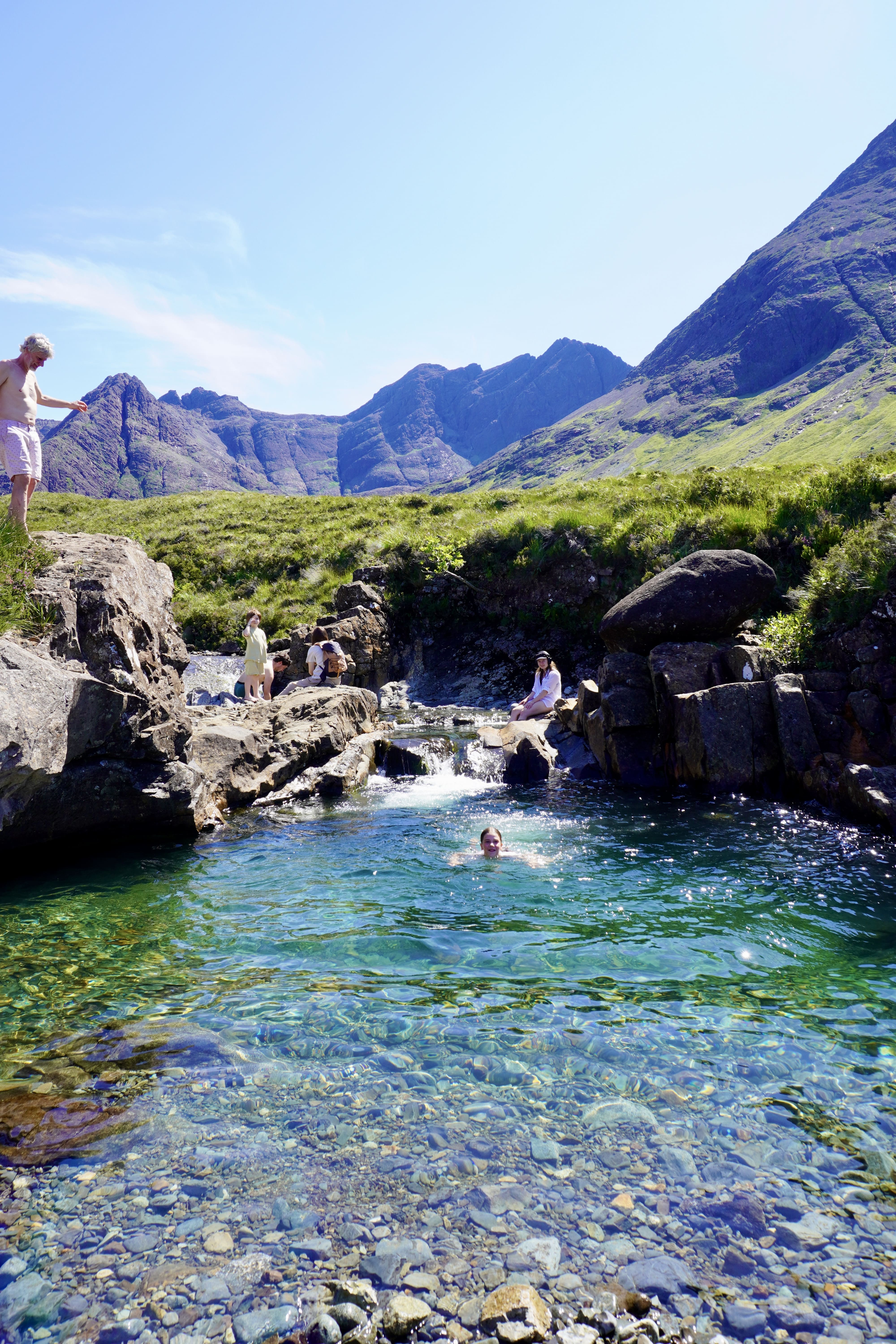 Le lendemain, on a consacré la journée aux Fairy Pools, une série de bassins d’eau limpide qui suivent le cours de la rivière Brittle, au pied des montagnes Cuillin.