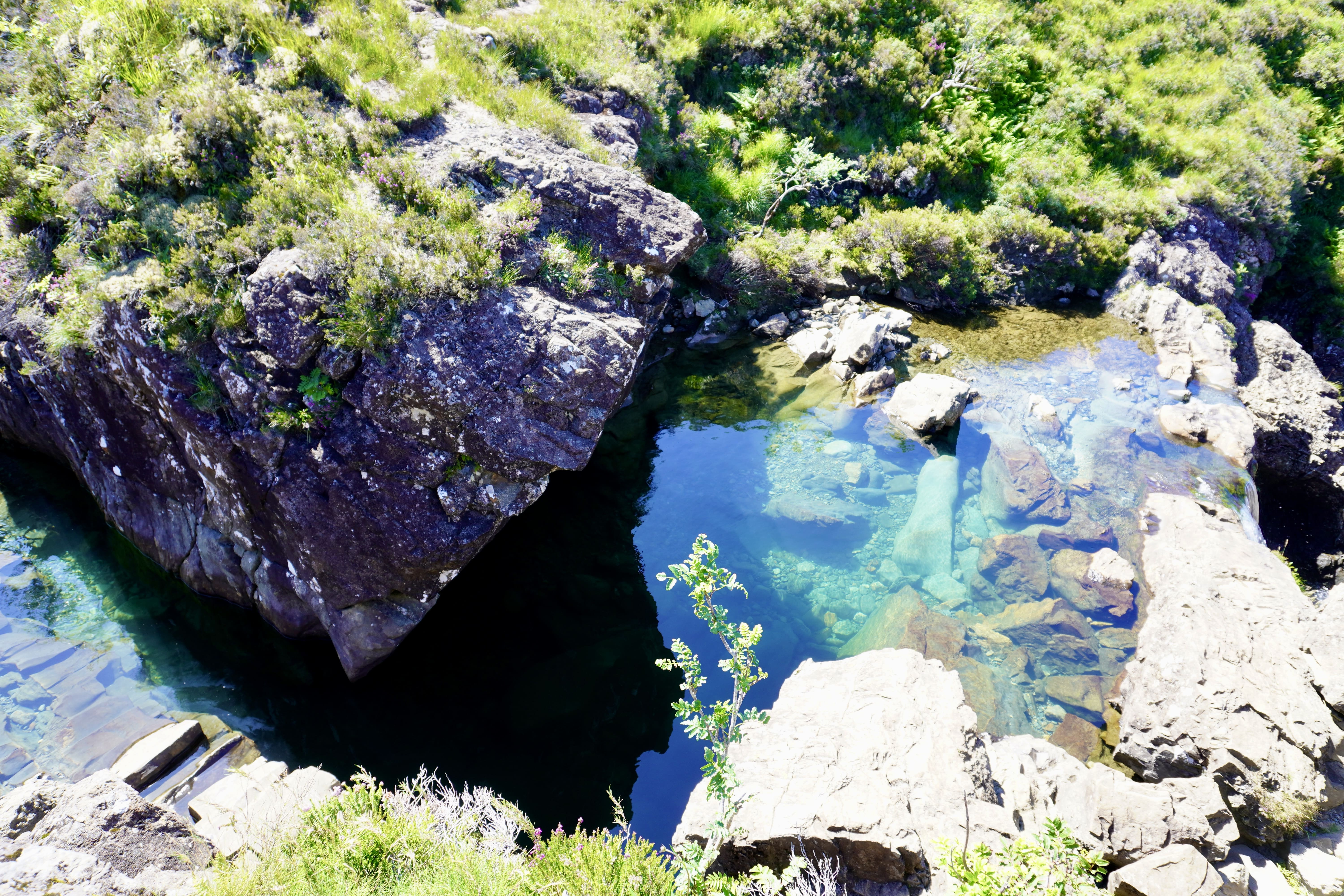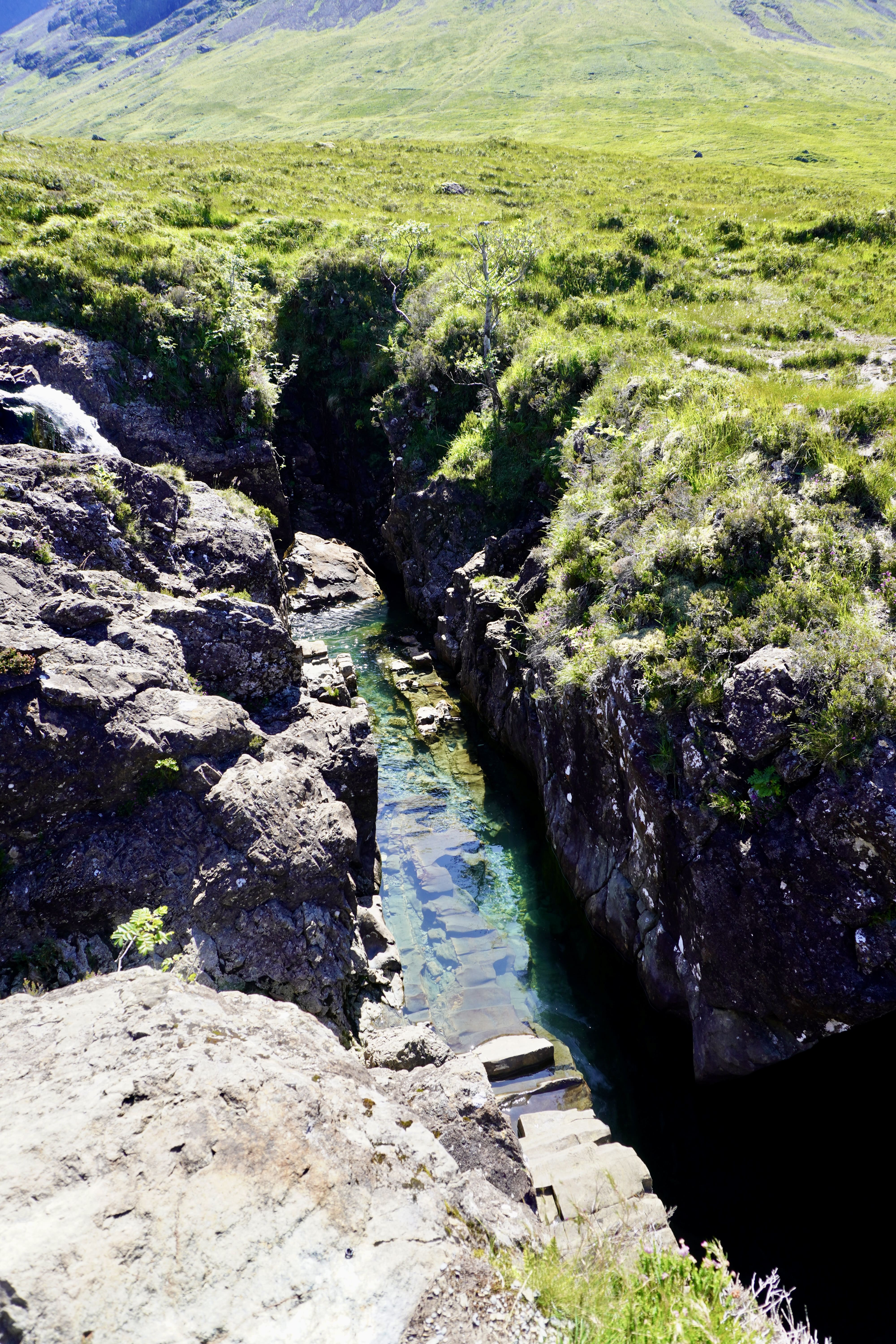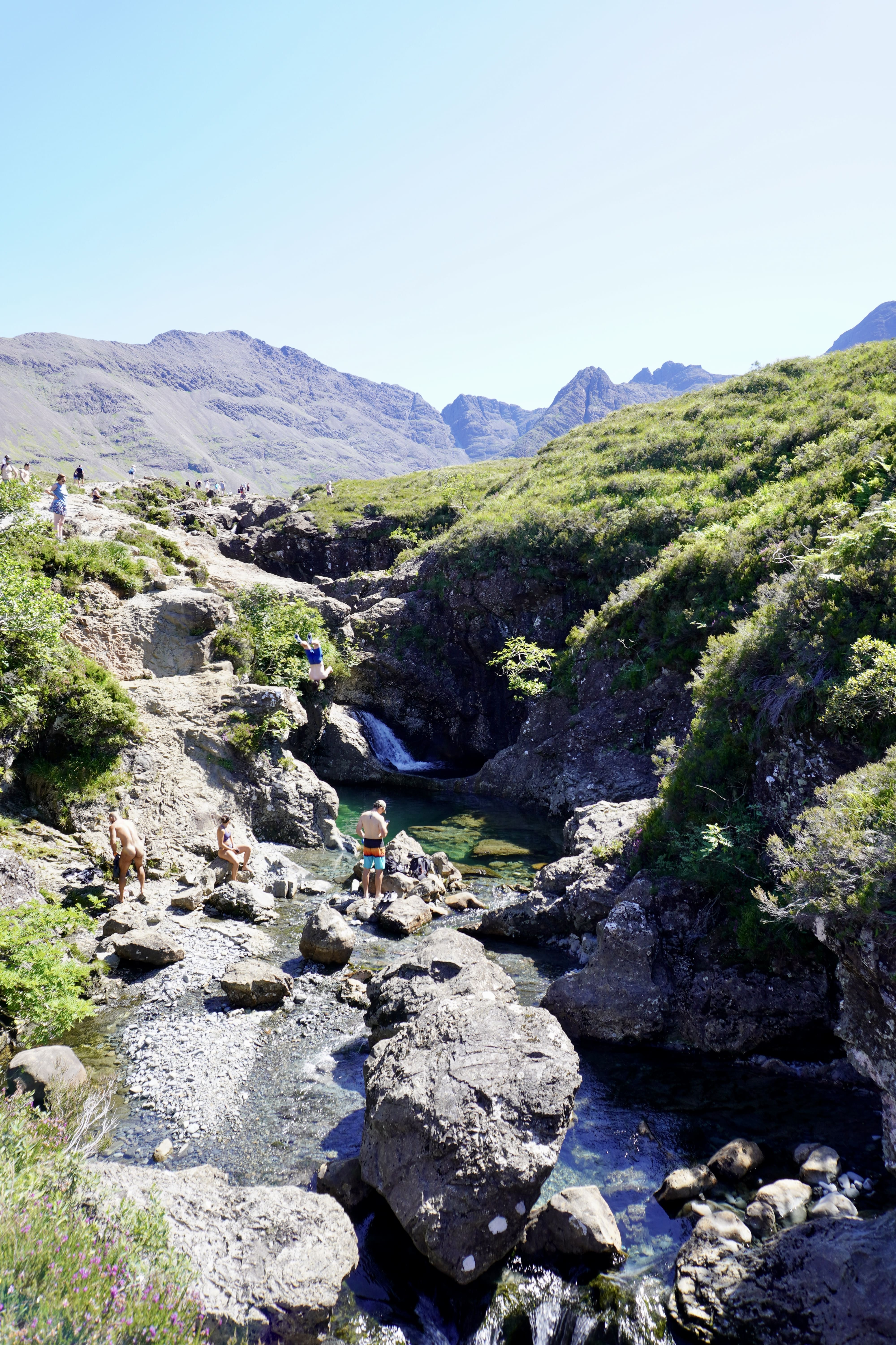 Le lendemain, on a consacré la journée aux Fairy Pools, une série de bassins d’eau limpide qui suivent le cours de la rivière Brittle, au pied des montagnes Cuillin.