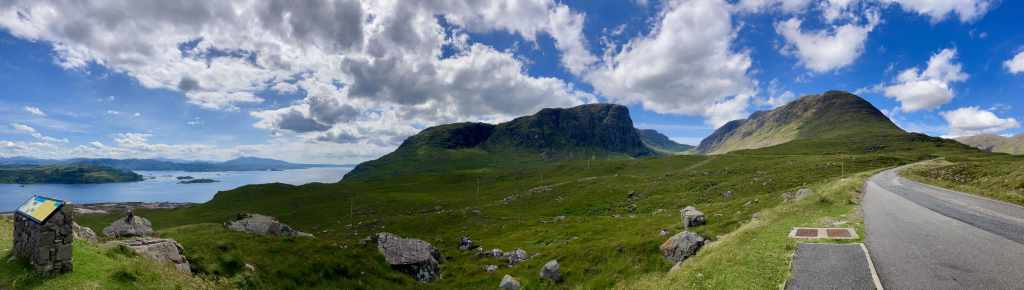 Elle grimpe abruptement au-dessus de profonds ravins, offrant des panoramas à couper le souffle sur les paysages sauvages de la péninsule d’Applecross. Chaque tournant fait battre le cœur un peu plus fort, avant que la route ne redescende en douceur vers le charmant village côtier d’Applecross.